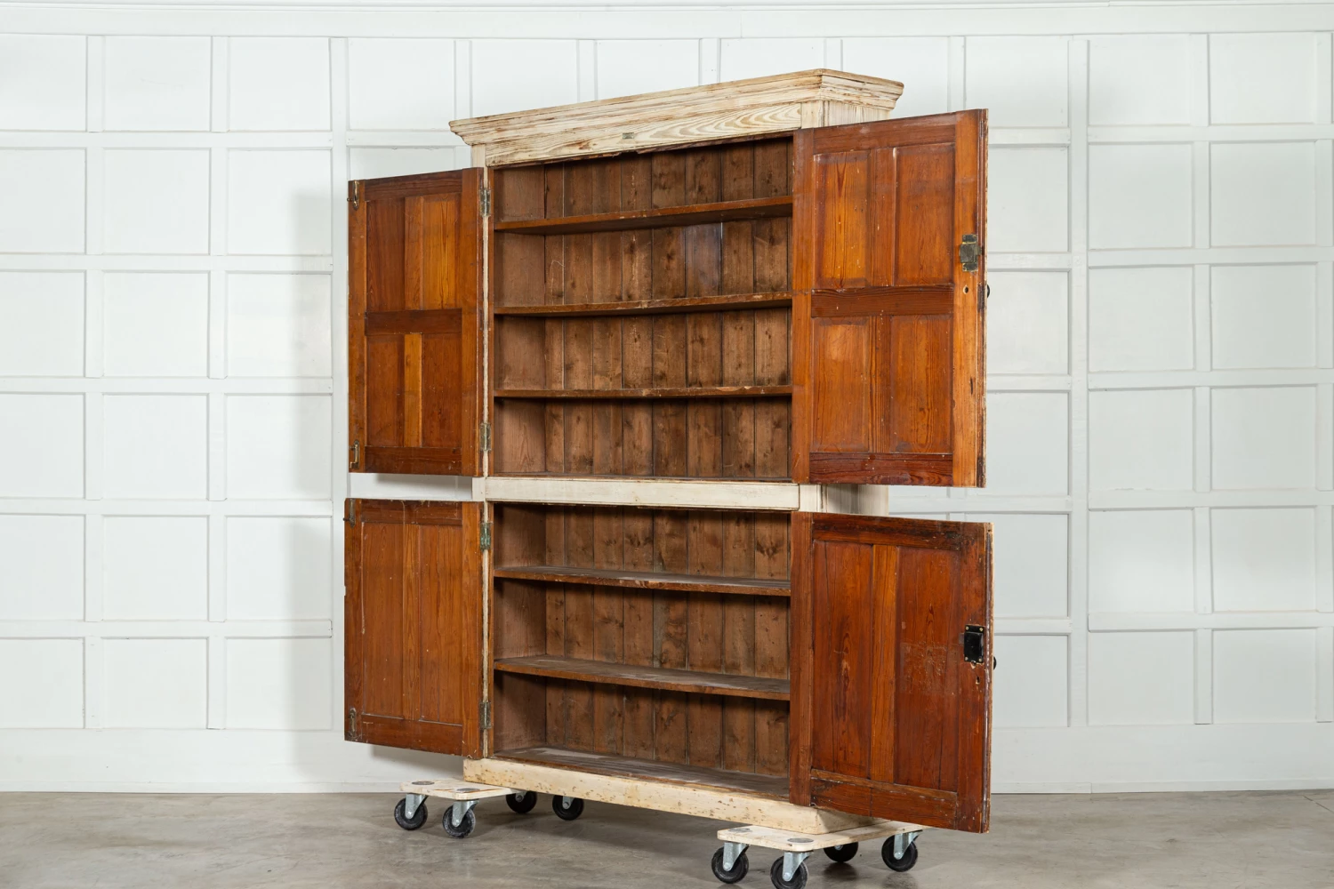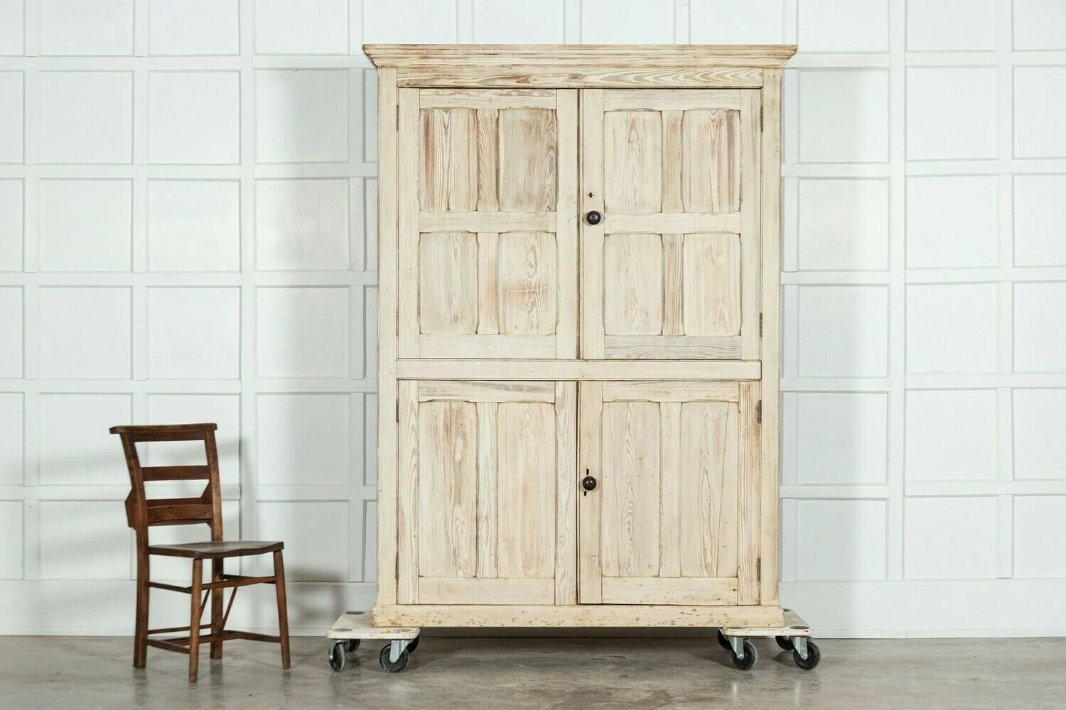 19thC English Bleached Pine Housekeepers Cupboard