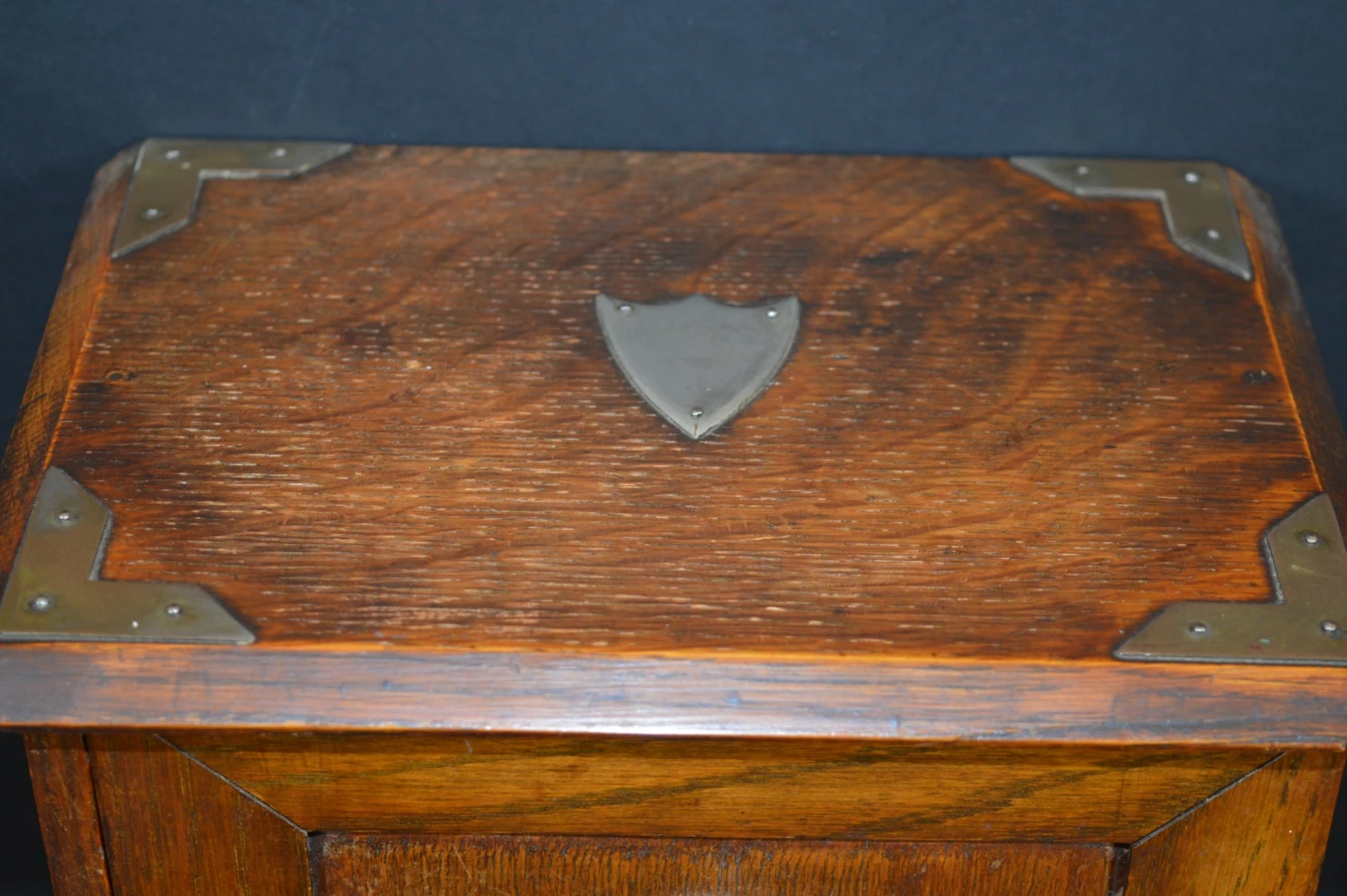 Attractive 19th century Anglo-Indian desktop smokers cabinet,c1880. The cabinet is hardwood (weighing 1.6kg) with silver plated escutcheon, decorative shield and