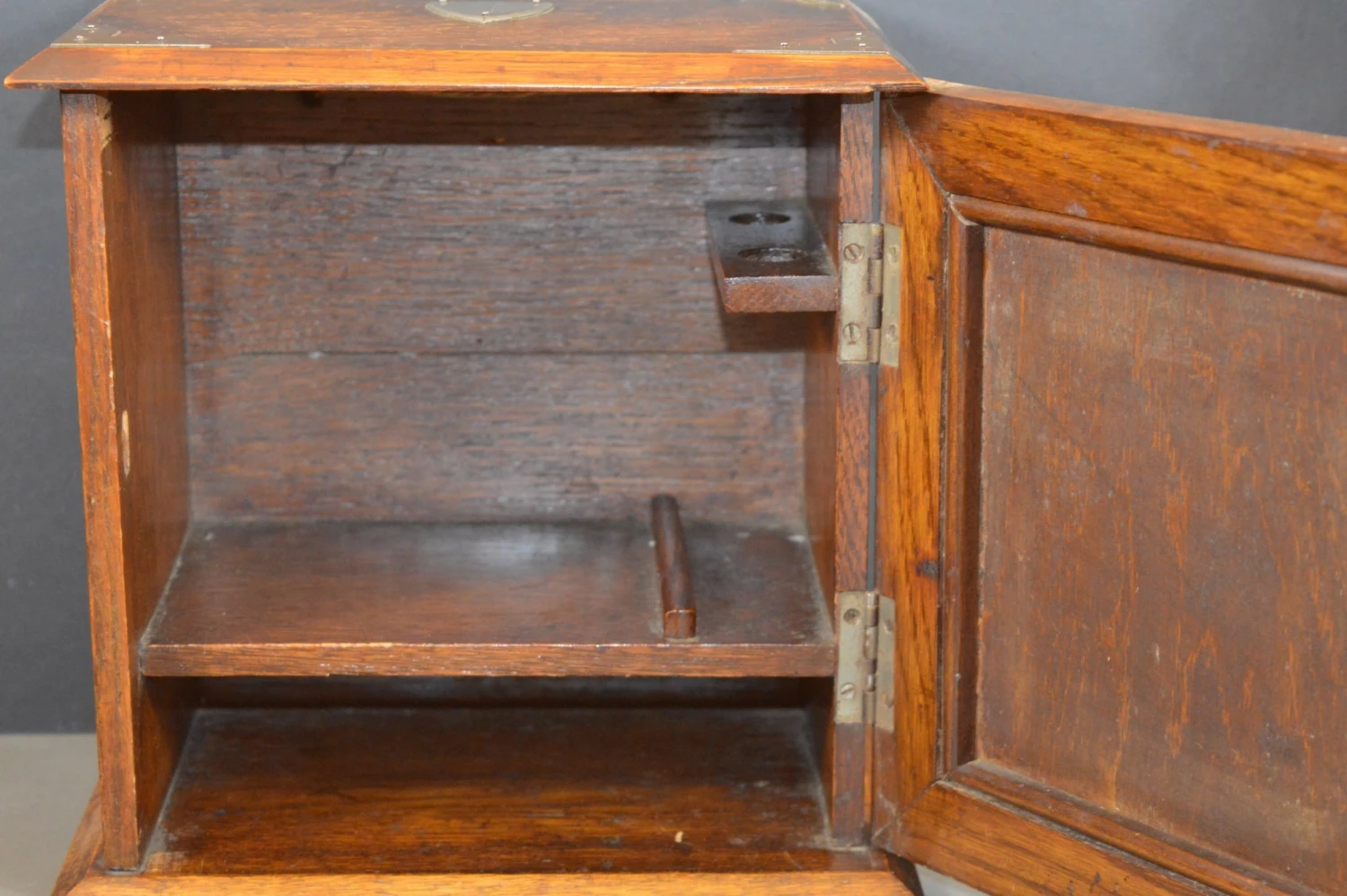 pipes. The wood has taken on great colour/patina and this is an attractive and functional box / small cupboard which will sit on a desk/table or hang on a wall.