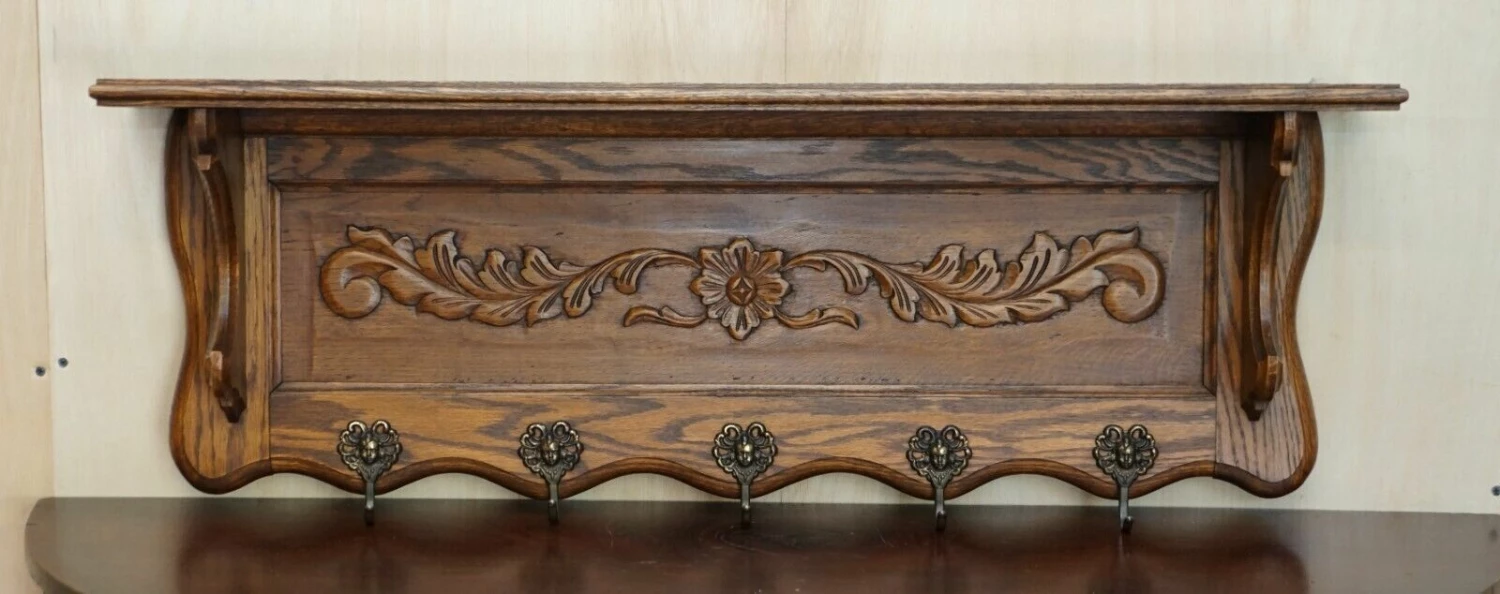 A very good looking well made and decorative coat wall rack, I have seen these used in hallways, bathrooms, study’s, attached to the sides of furniture and even in kitchens to hang utensils from, it is a very well made utilitarian piece