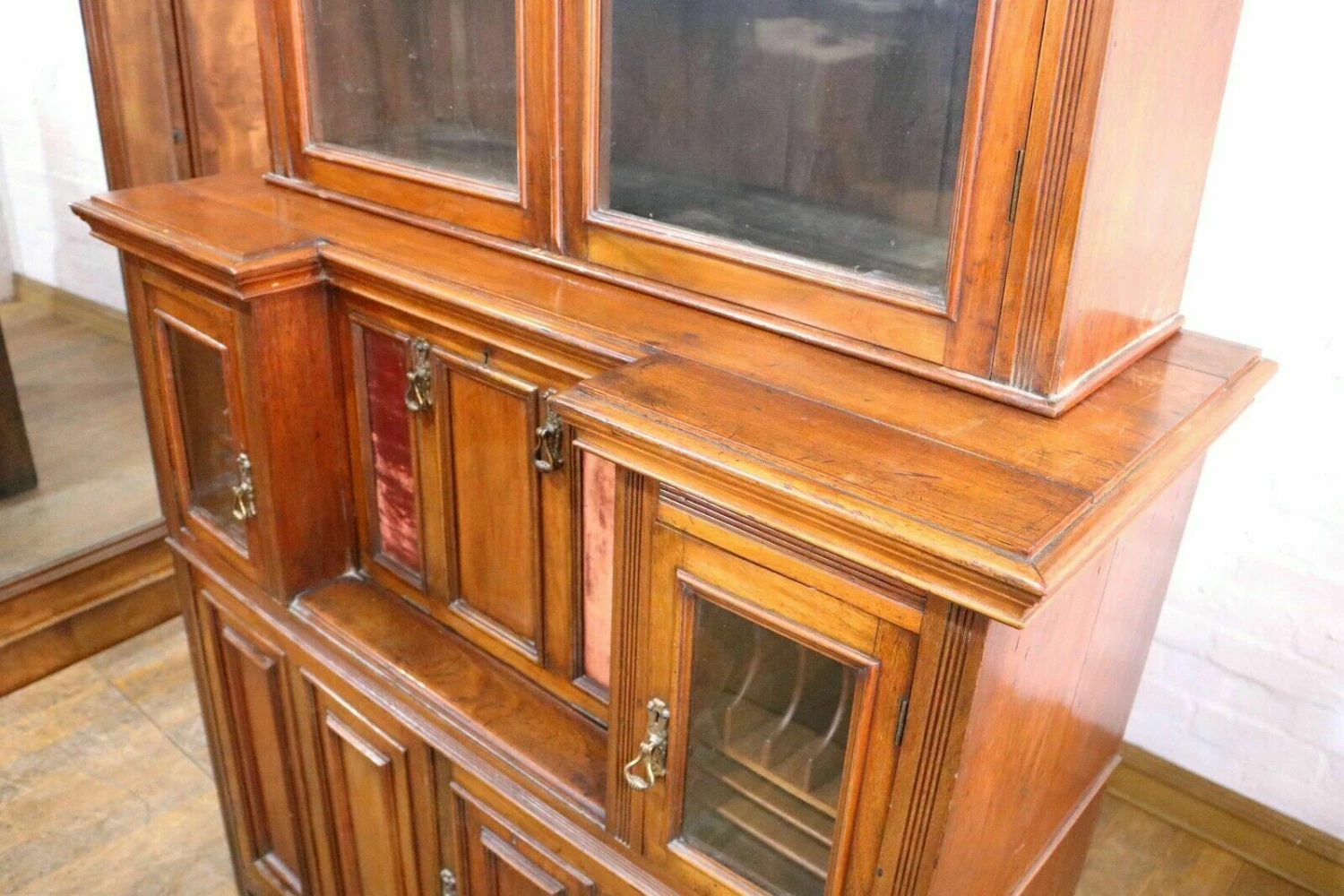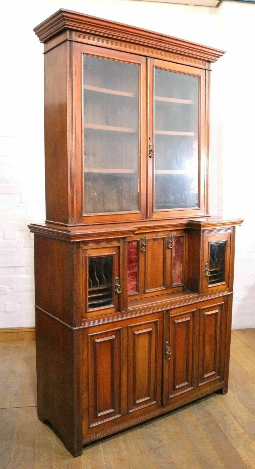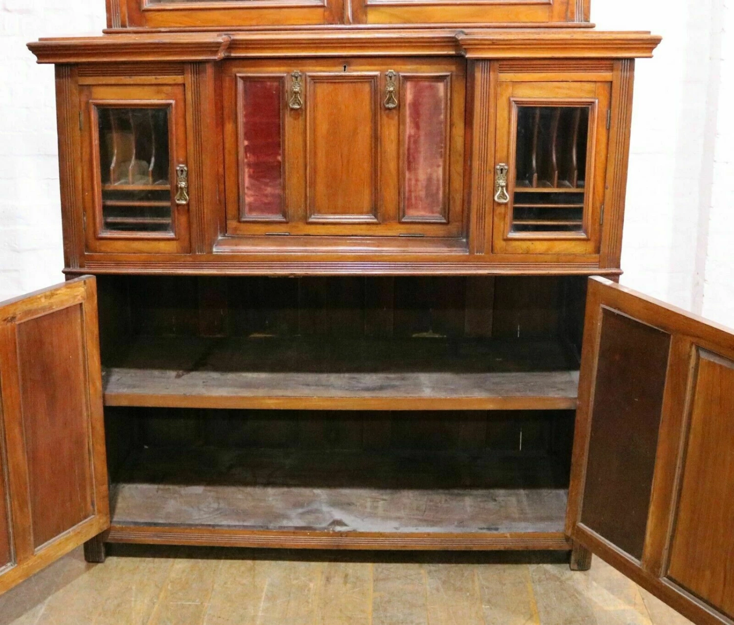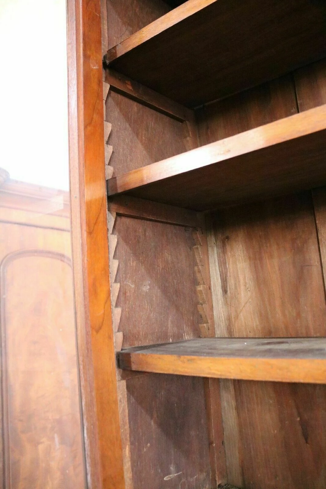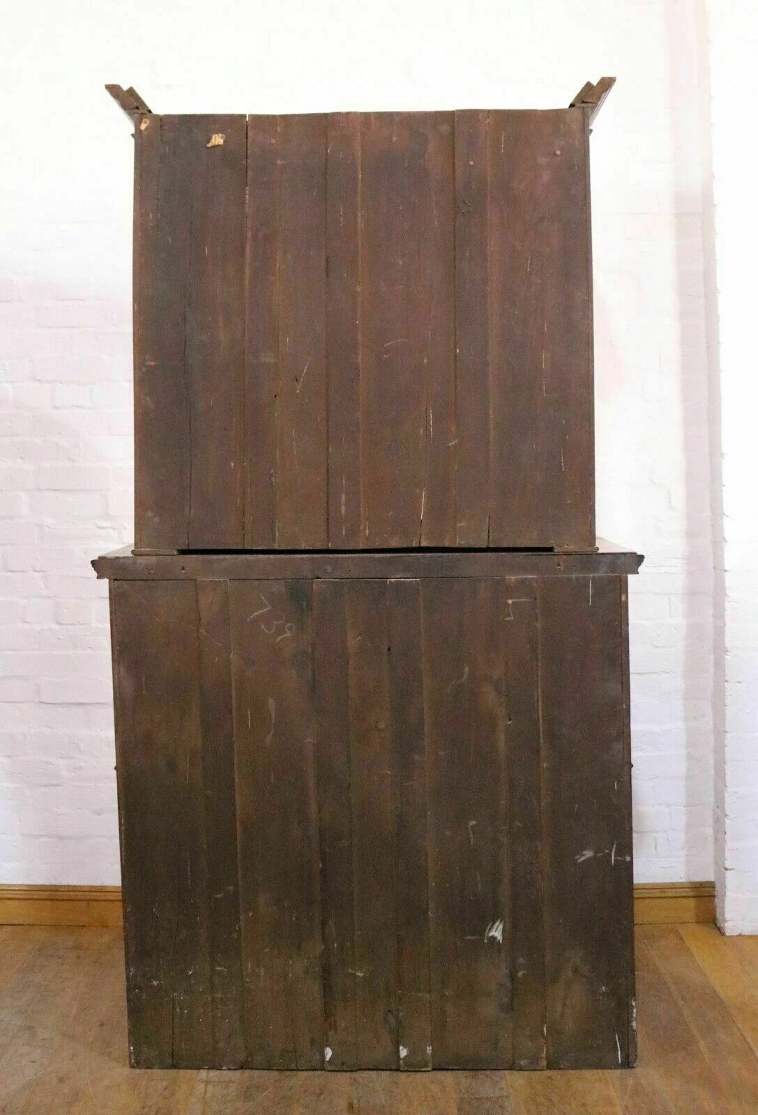 Doors open to reveal adjustable height shelving to the top, a shelved cupboard space below and cupboards either side of the bureau.
