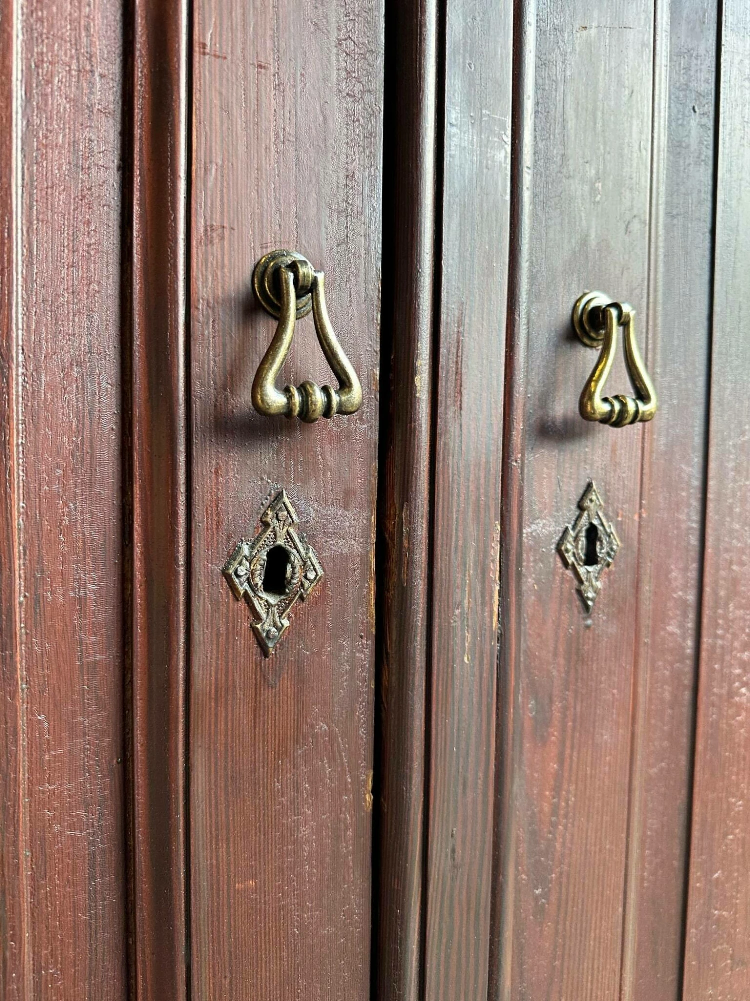 The panelled doors open beautifully to feature adjustable shelves and the original hardware remains in tact.