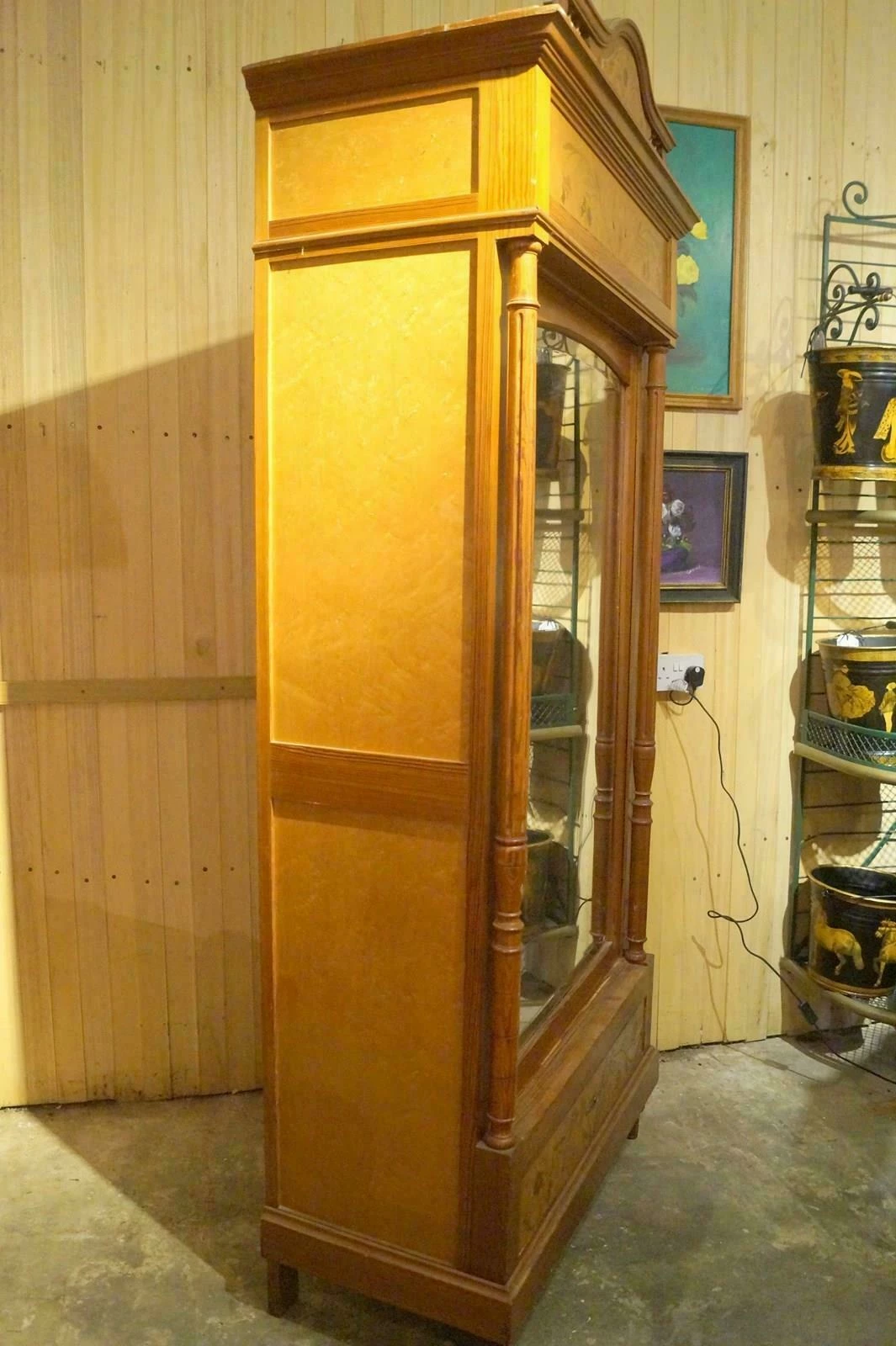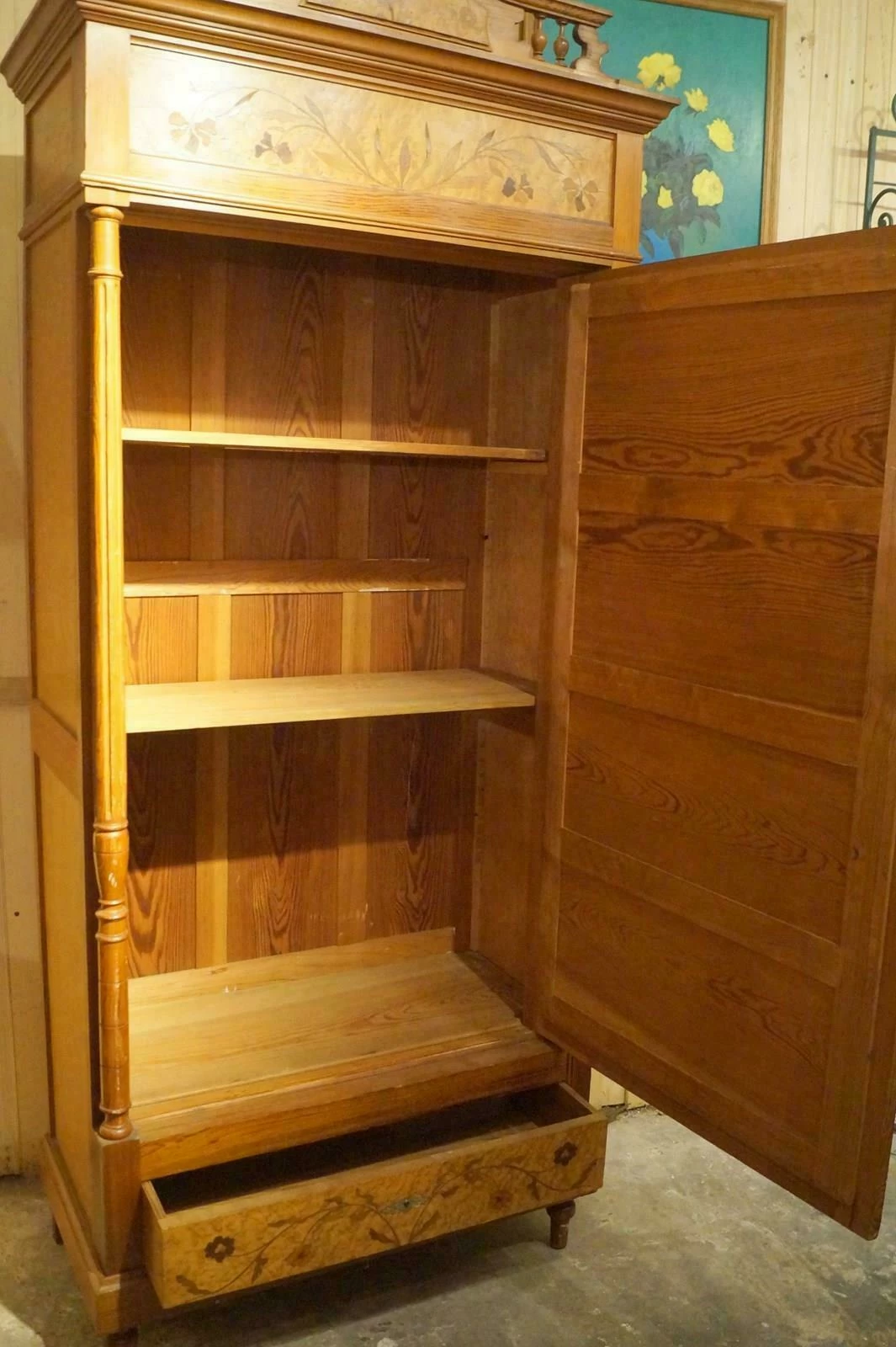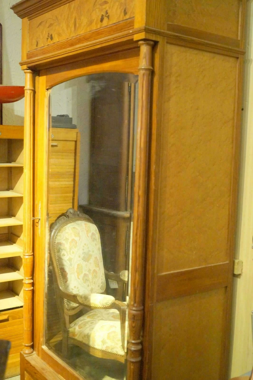 A single French armoire with shelving inside.