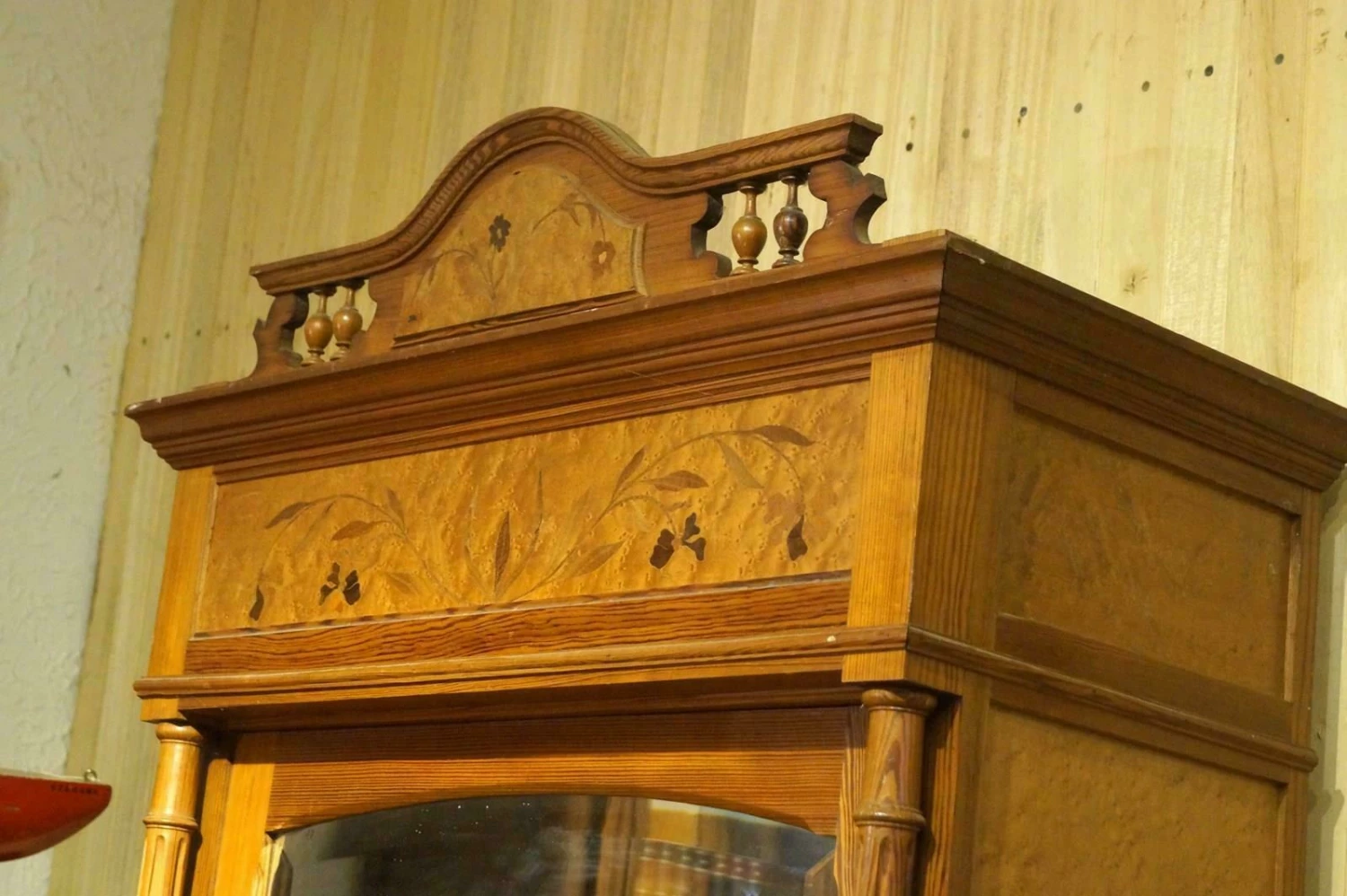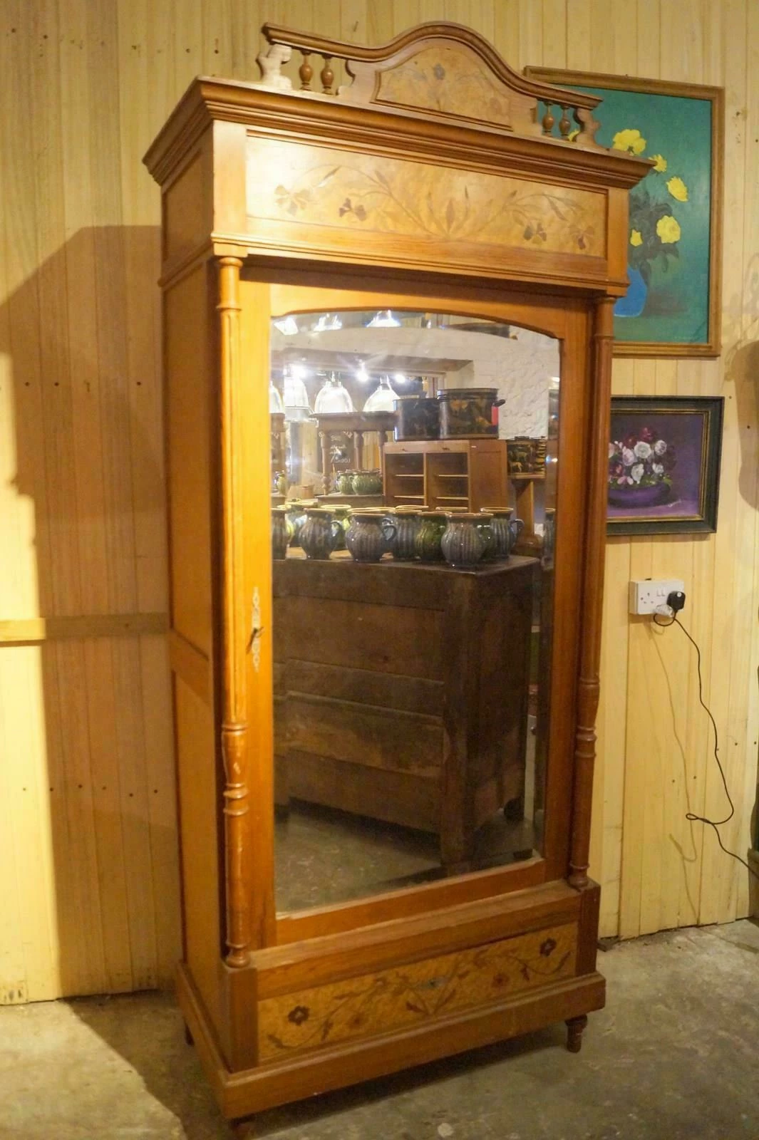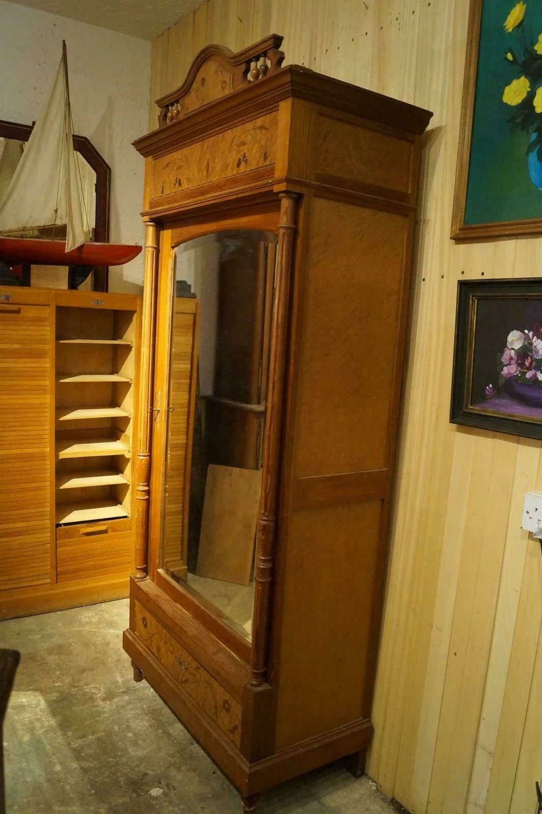 A single French armoire with shelving inside.