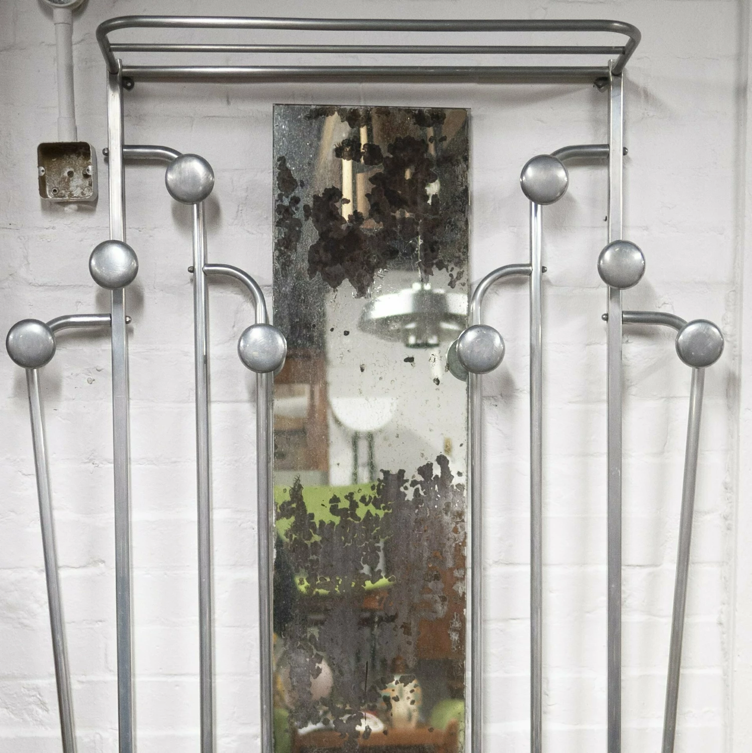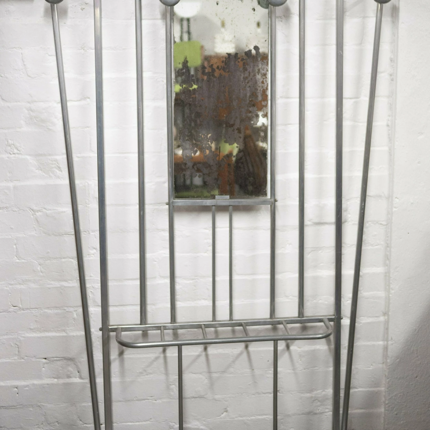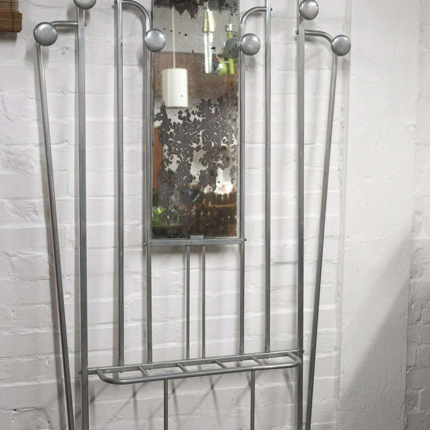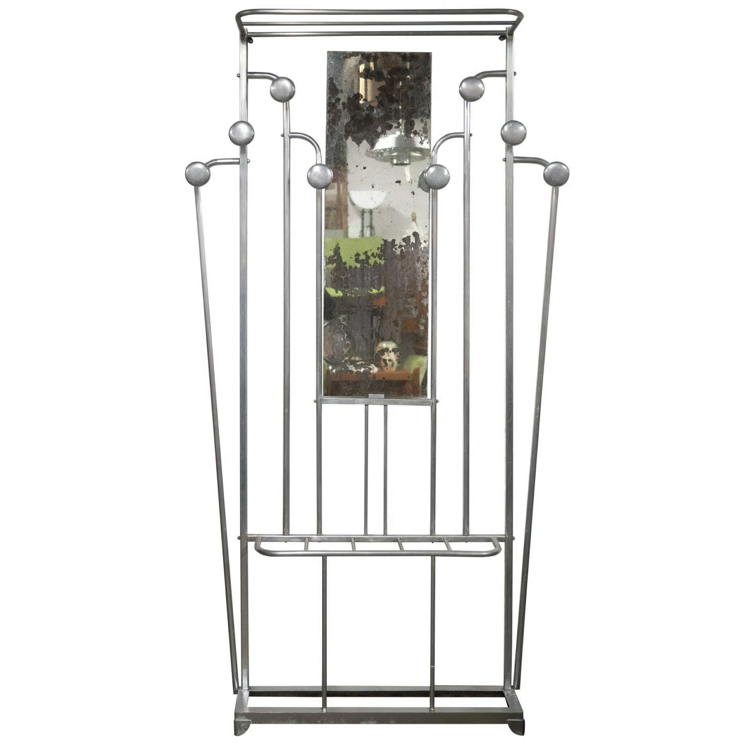 A French Art Deco Clothes stand featuring circular knobs and an umbrella holder.
