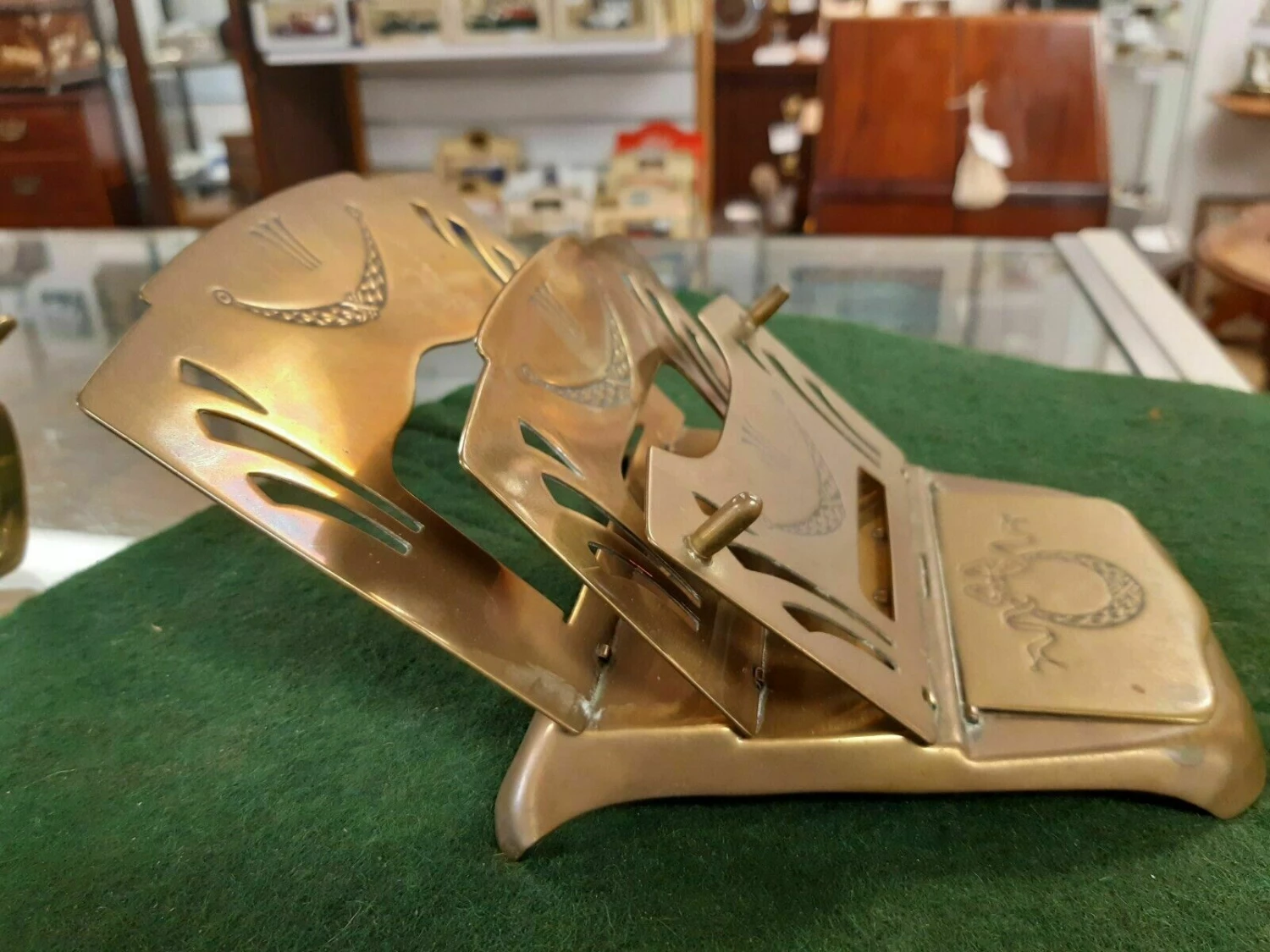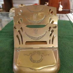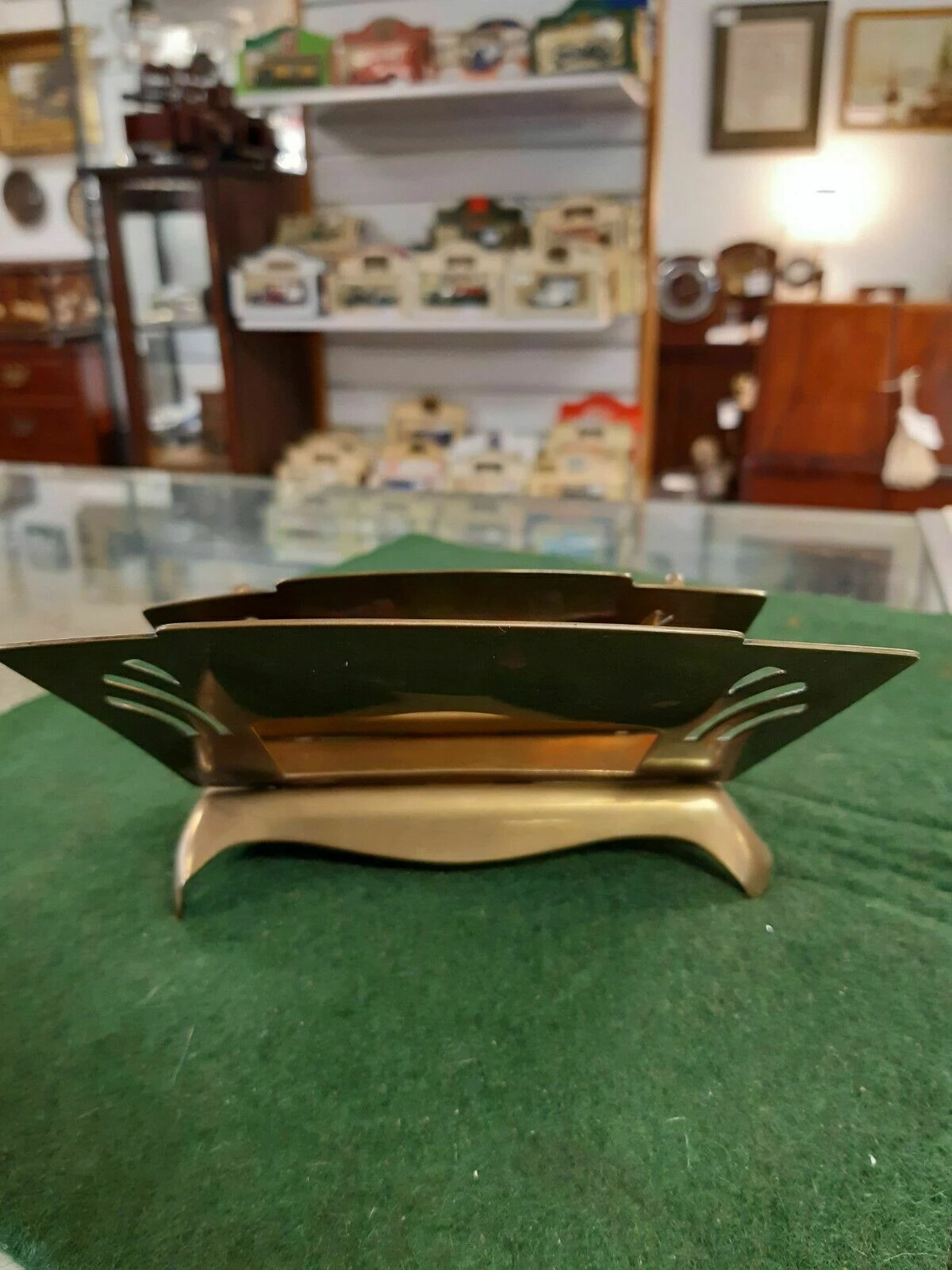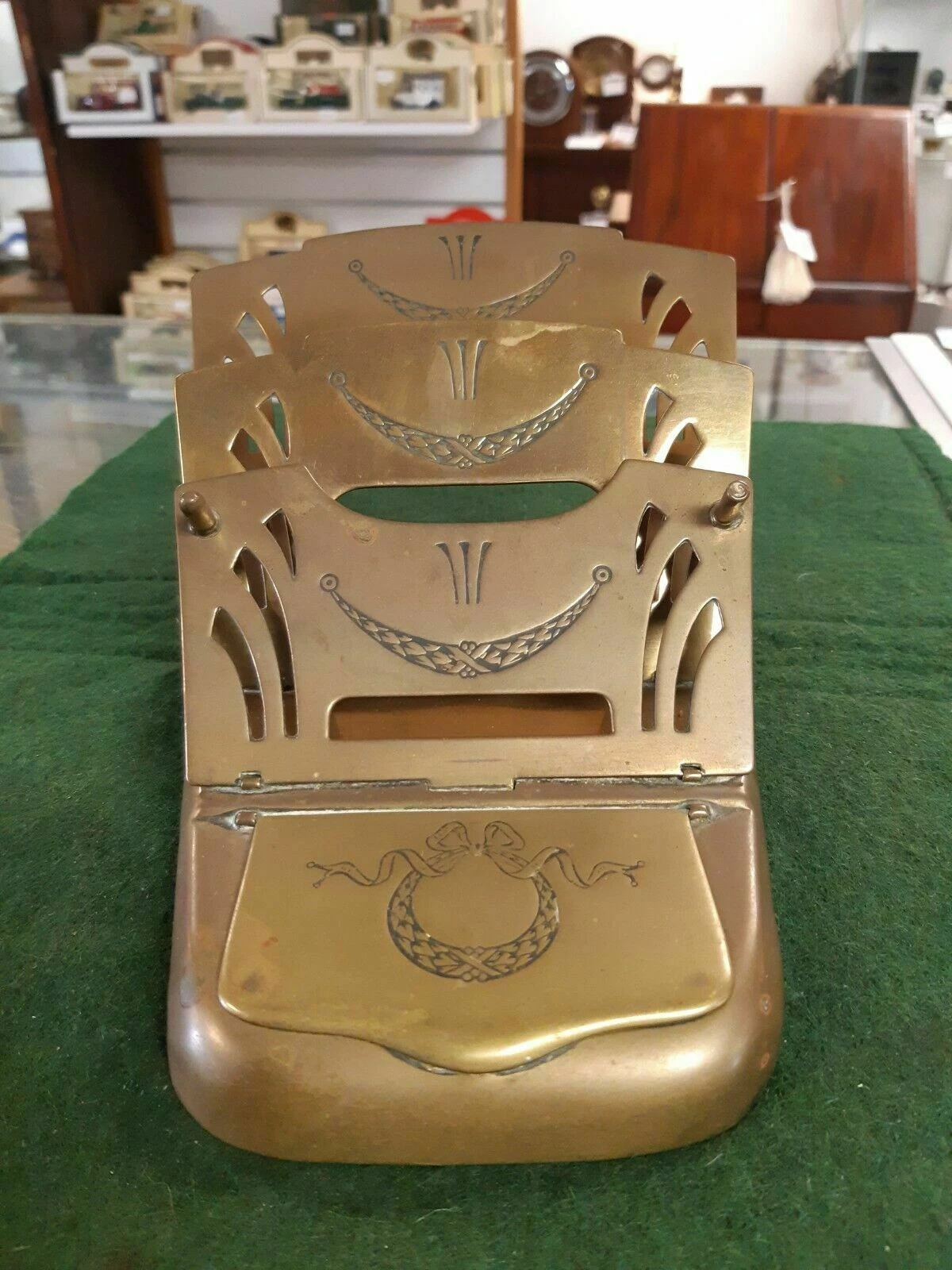 Unknown Antique Letter Rack Art Deco Belgian 20’s Wooden Brass Copper Desk Top Organiser