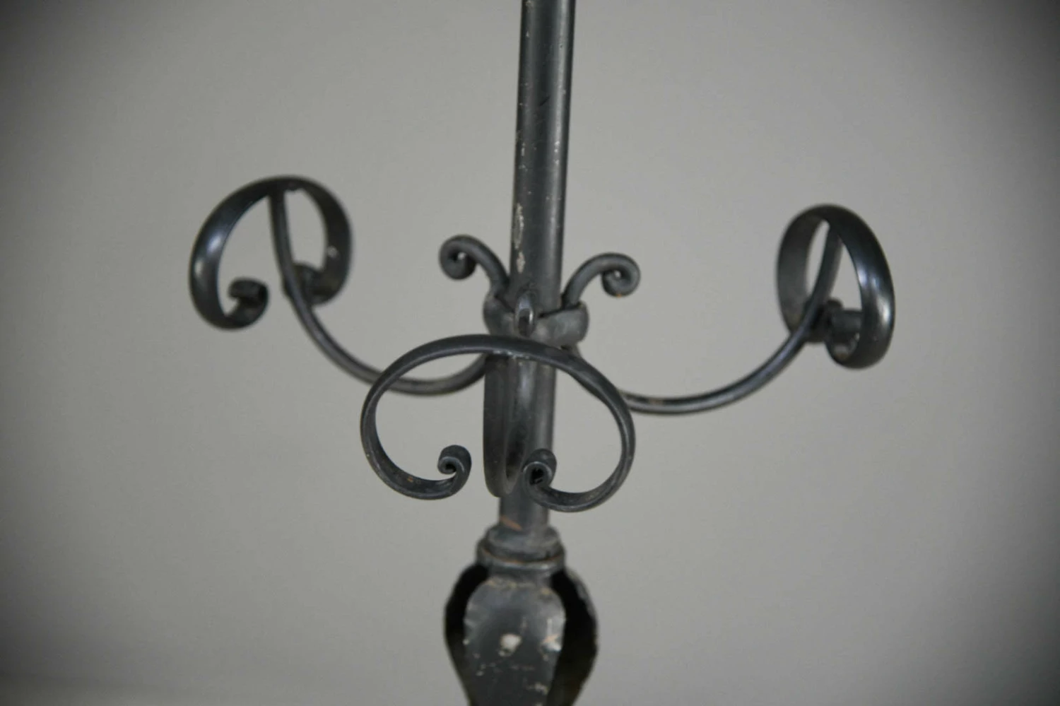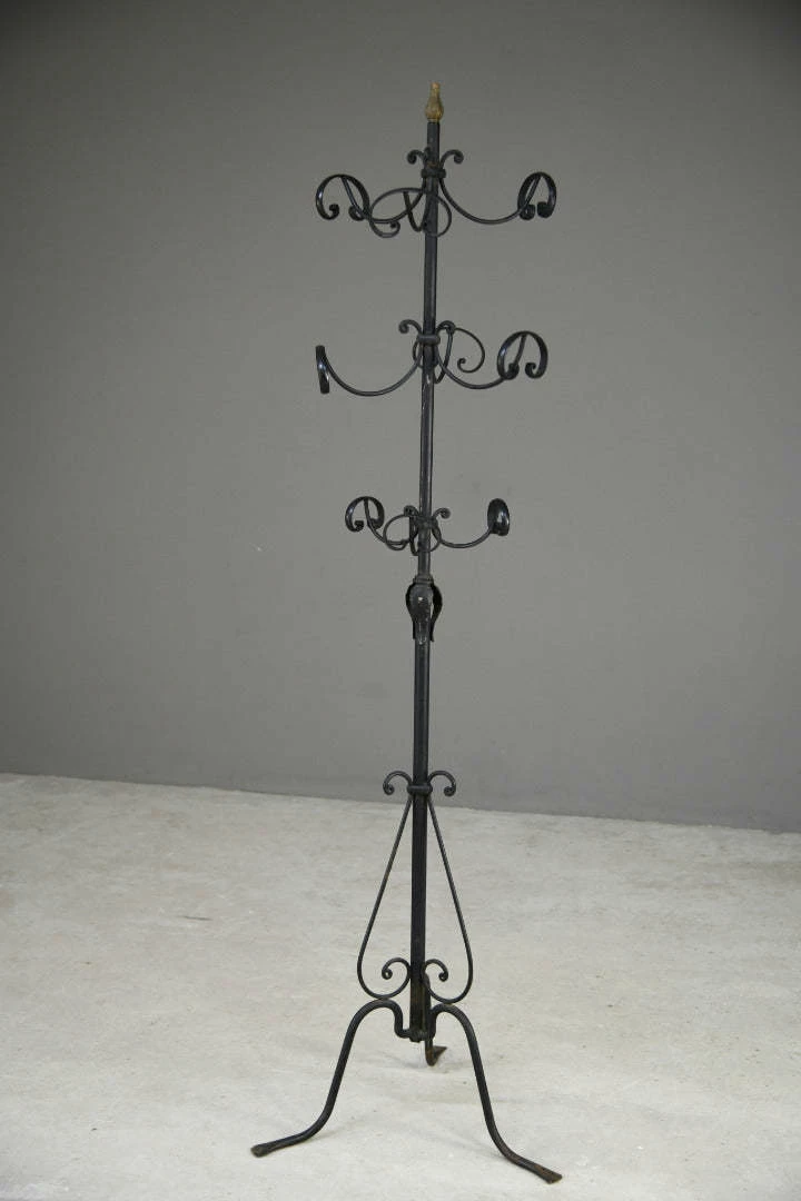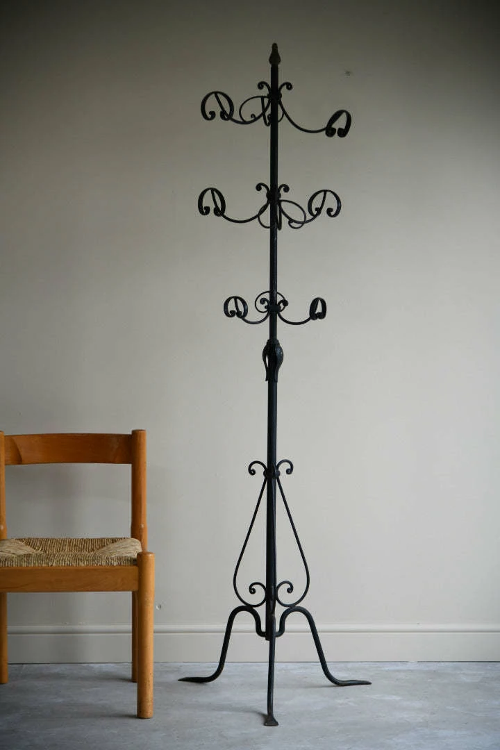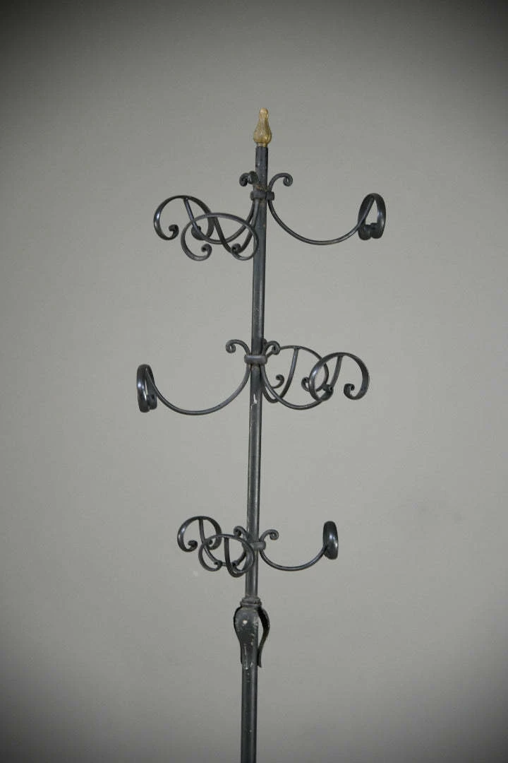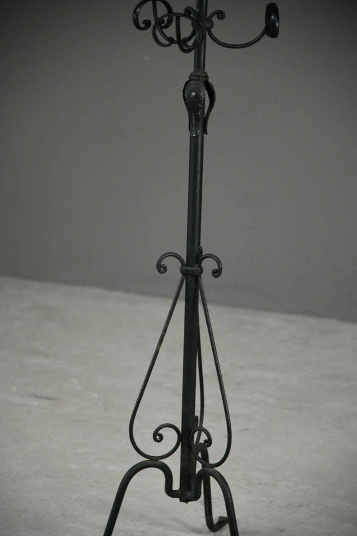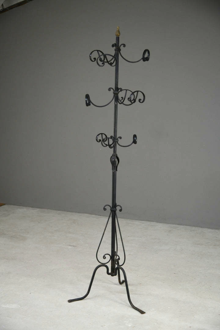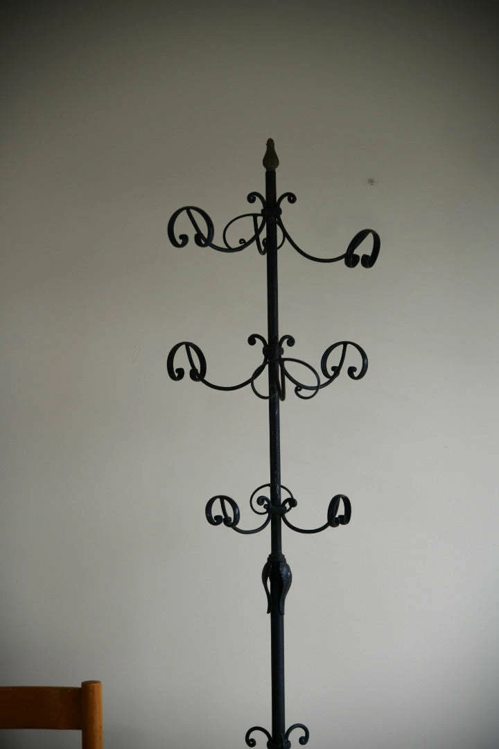 Black coat stand. Late 20th Century black steel freestanding coat stand on three splayed legs