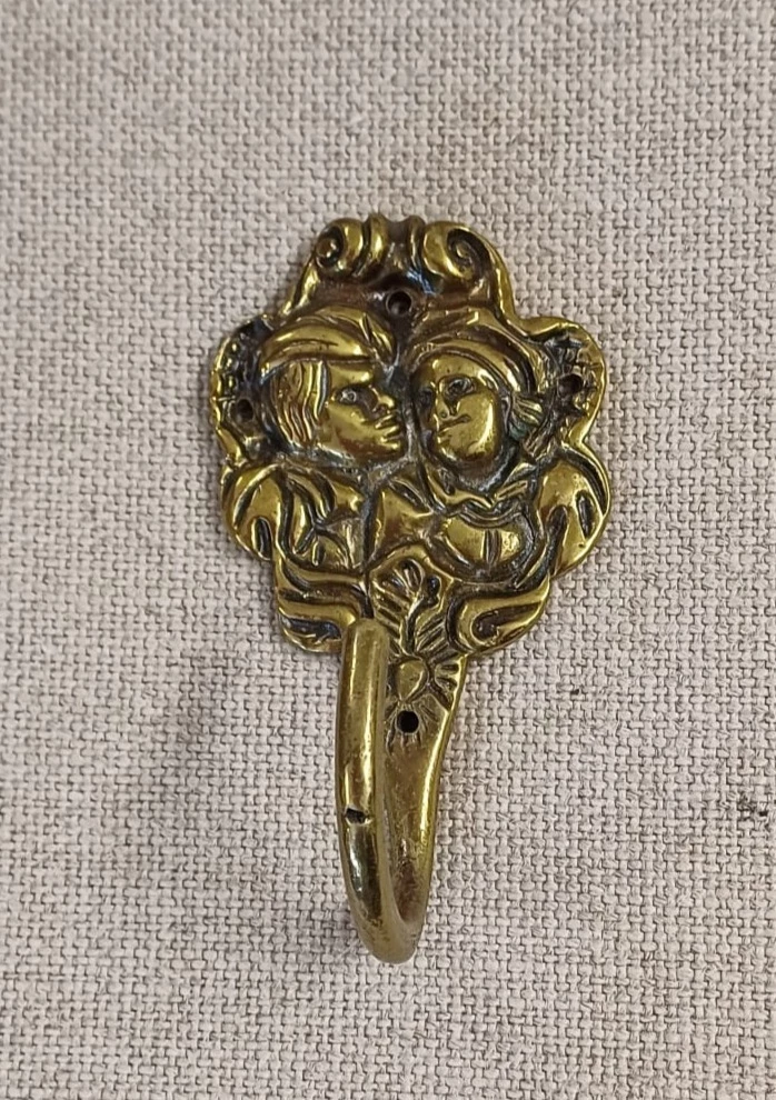 Brass Coat Hook with Medieval Characters in Conversation.