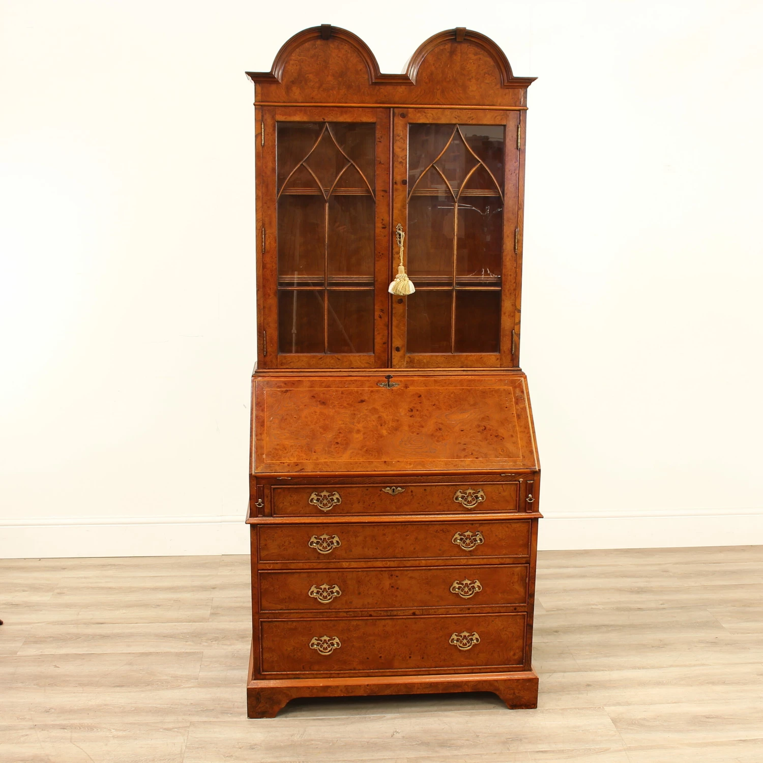 A stunning 20th Century Burr Walnut Bureau Bookcase.