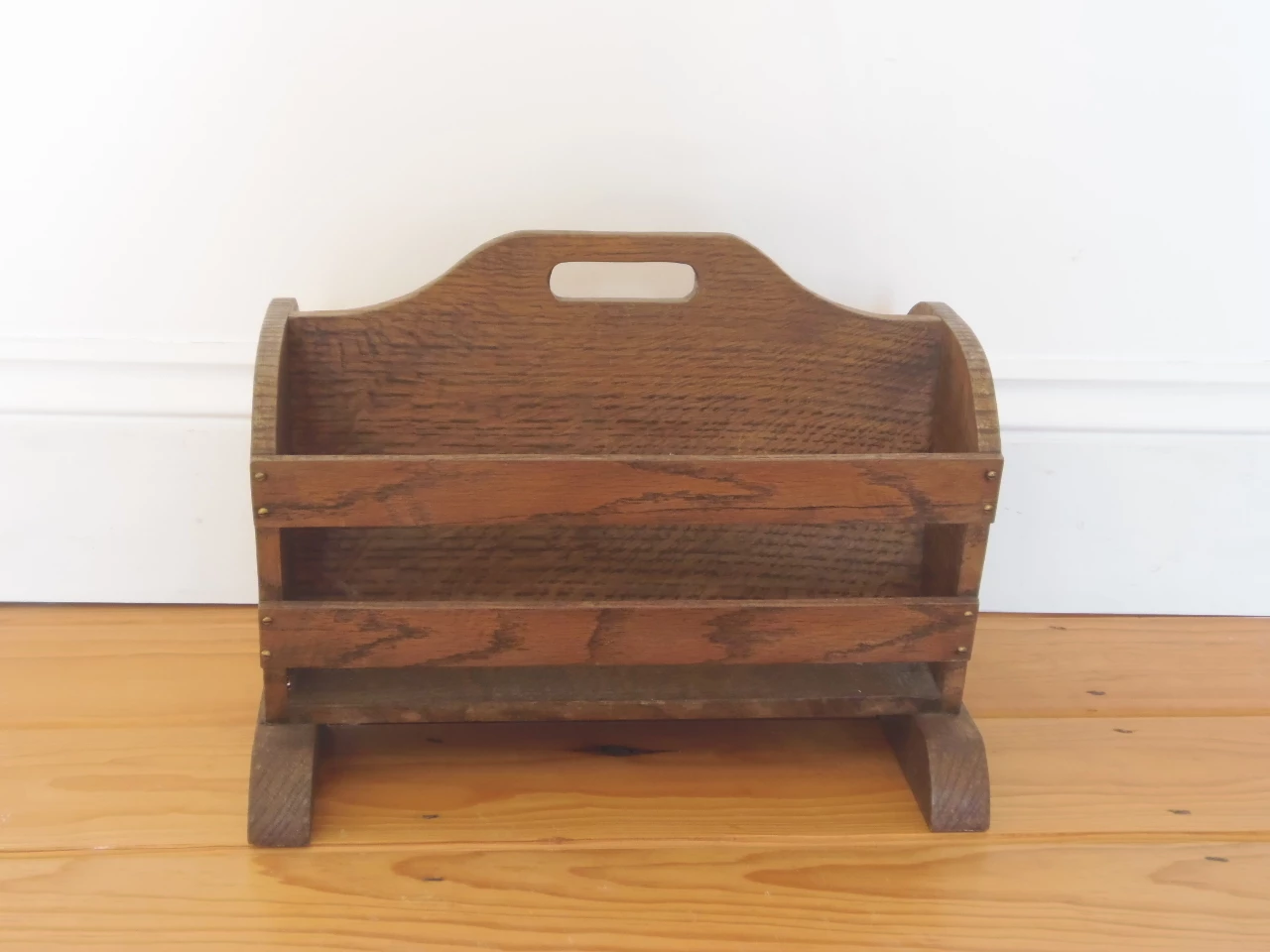 This is a small stylish oak magazine rack. Pure Cotswold school.
