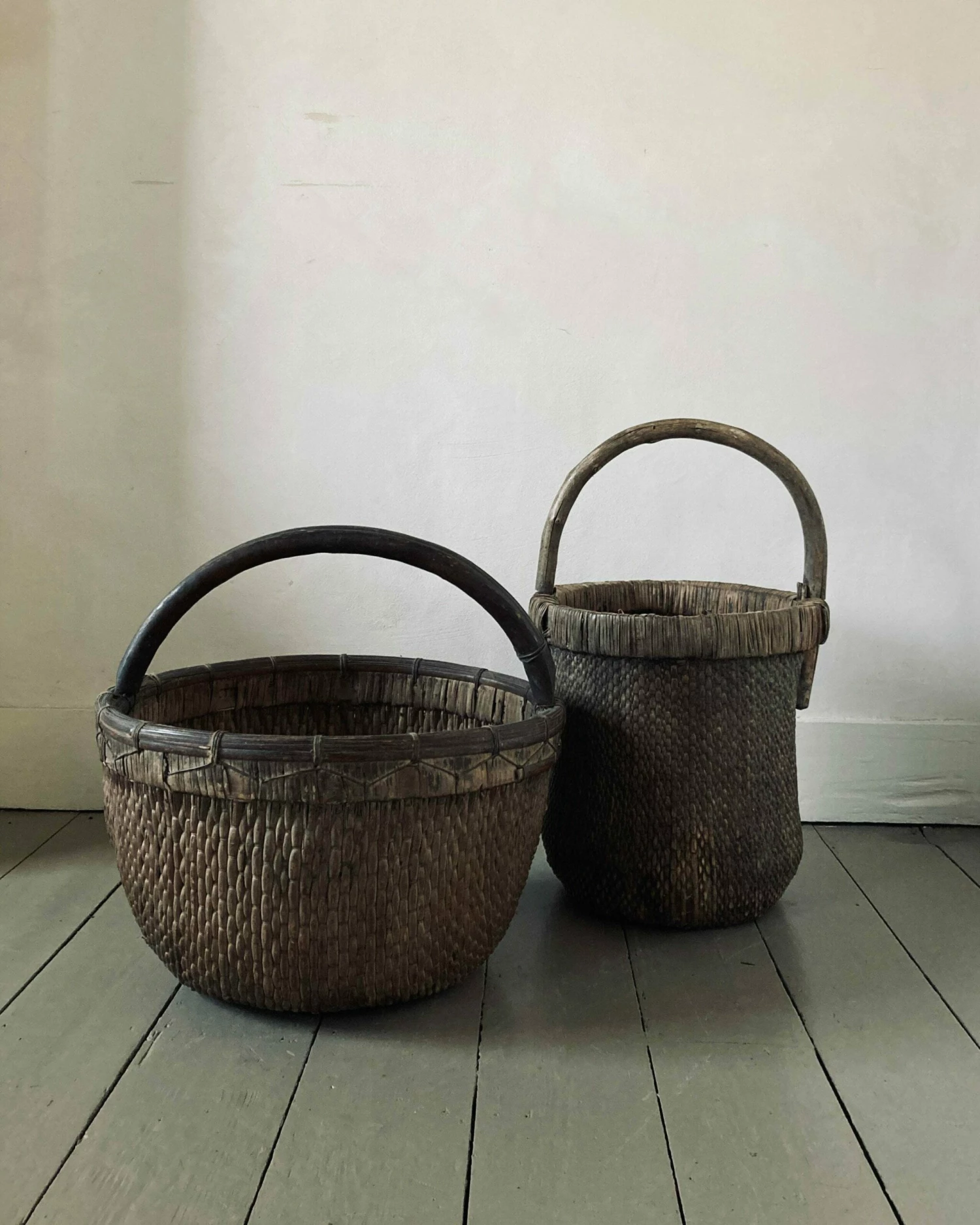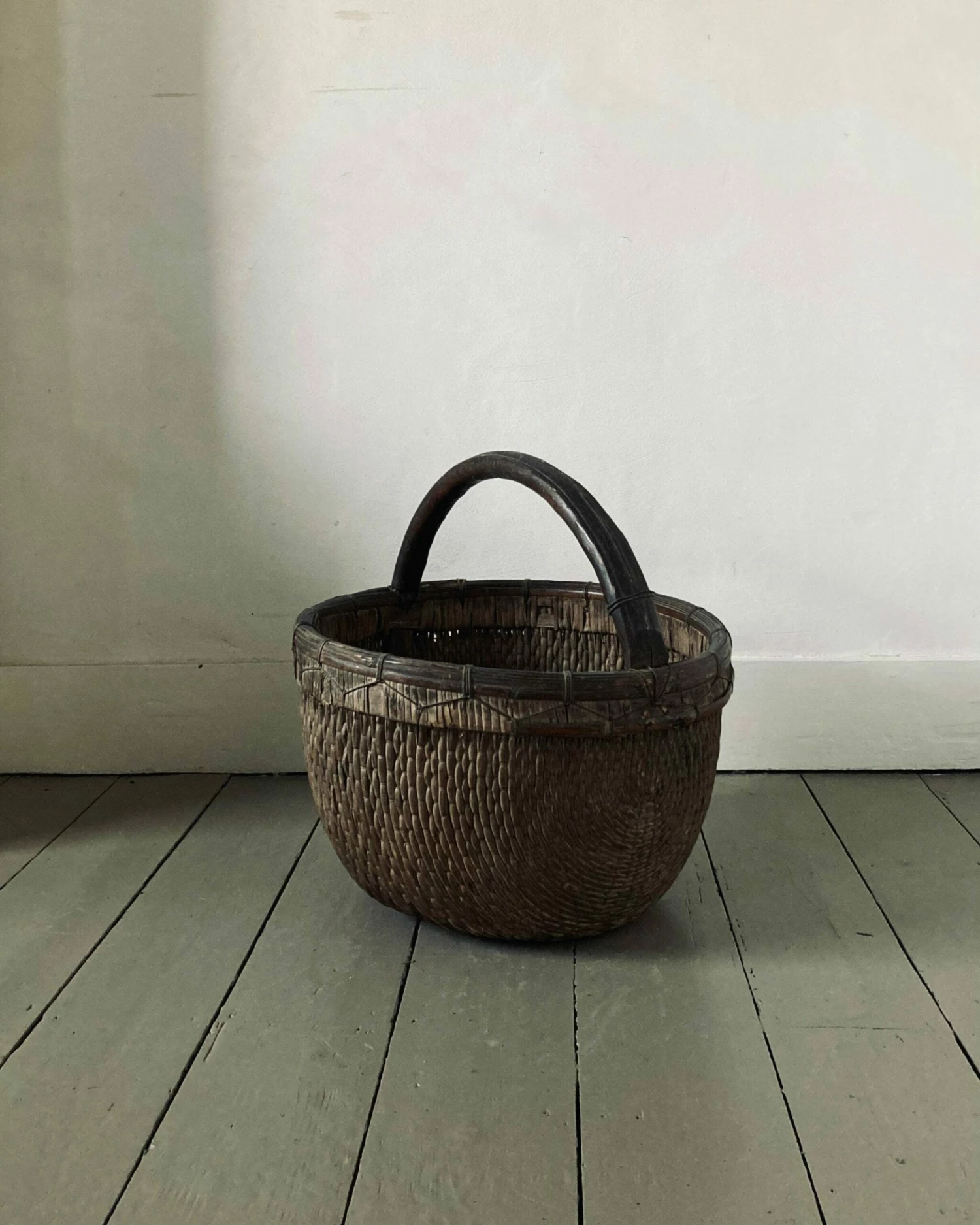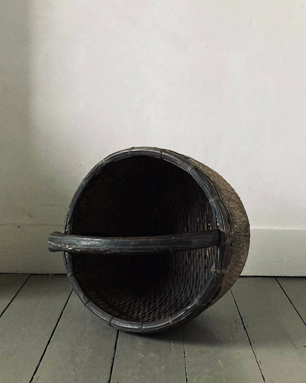 Would make an ideal fireside basket or decorative addition to a Wabi Sabi, rustic or contemporary interior. Beautifully imperfect object with signs of use appropriate to its age and history.