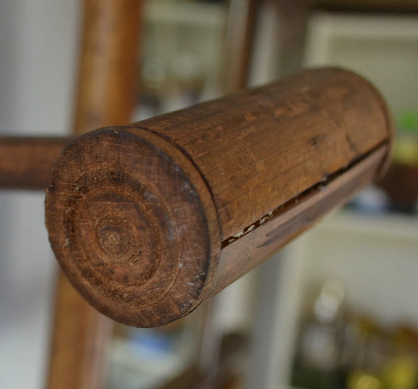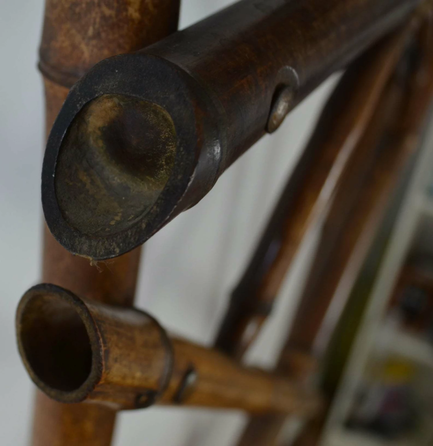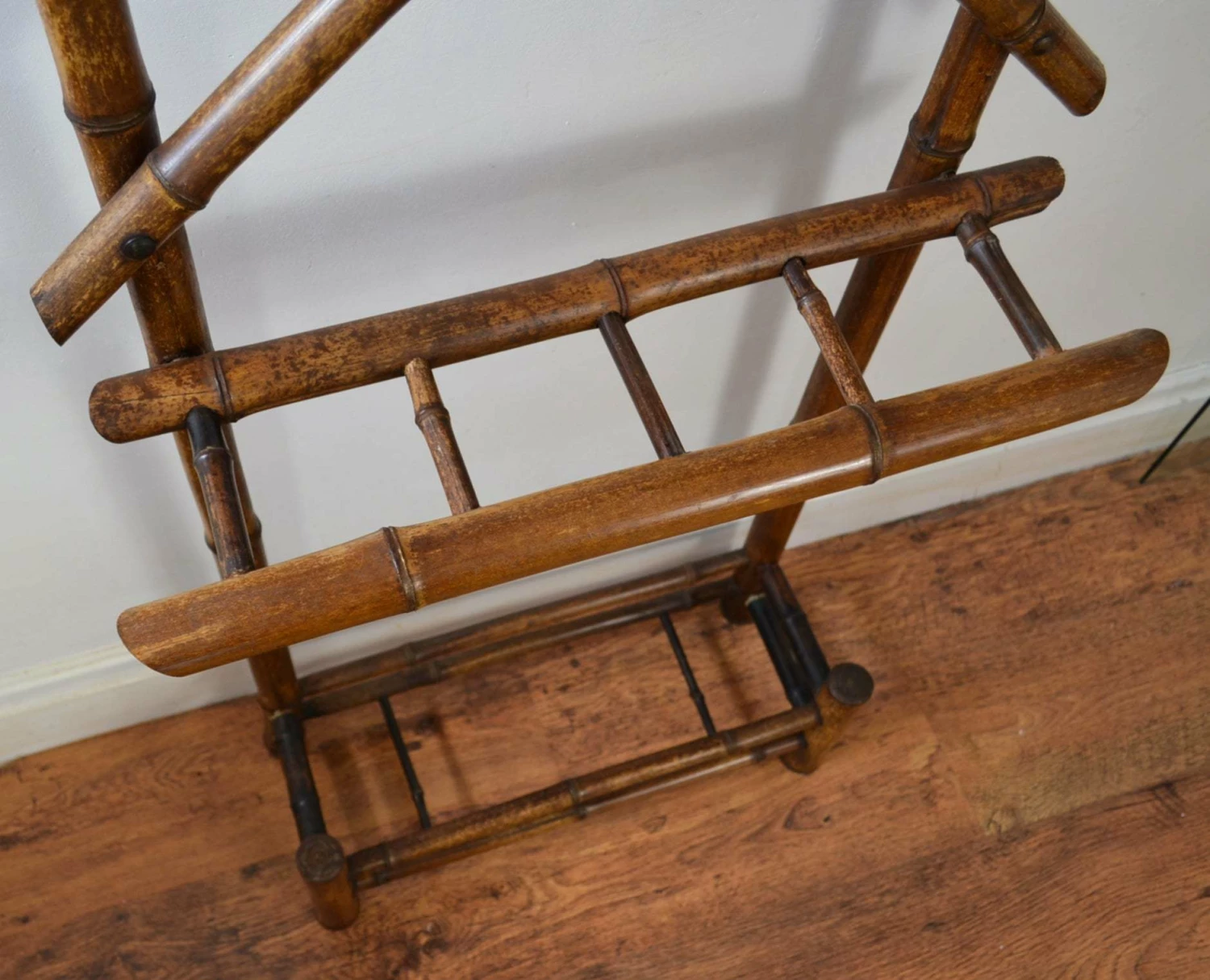 In good antique condition with natural cracking to some poles and one end piece missing. For safety these bamboo units like wardrobes should be secured to a wall before use as they are tall and light enough to be pulled over.