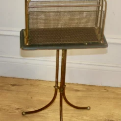 Decorative and quaint Edwardian magazine/letter rack, dating from circa 1910s. The stand is made from brass & copper with wooden ebonised base and wire mesh. Charming item that is highly practical and would make a stylish alternative for storage,