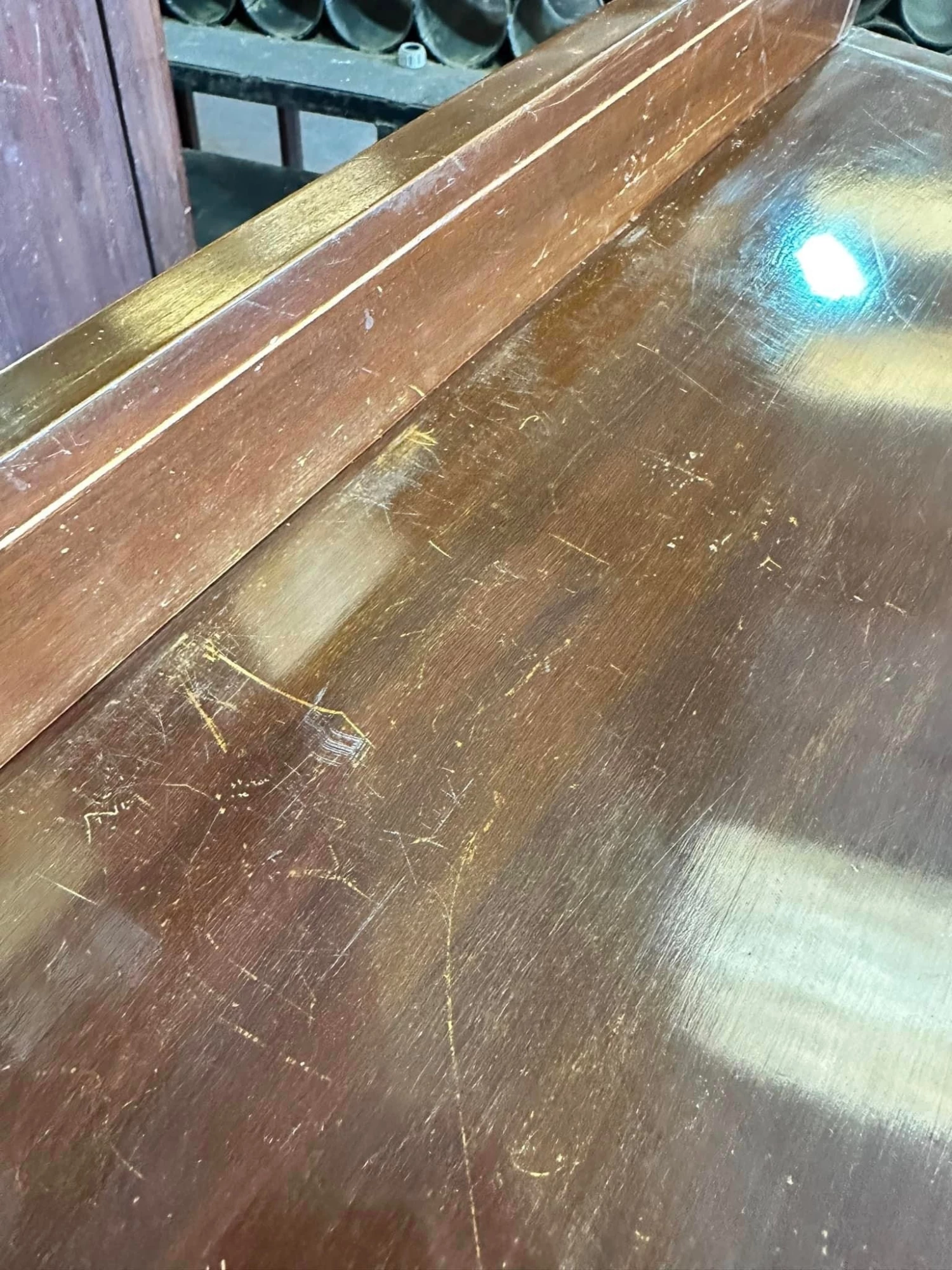 The piece could be re stained or alternatively could be painted! It will certainly last for many years to come!