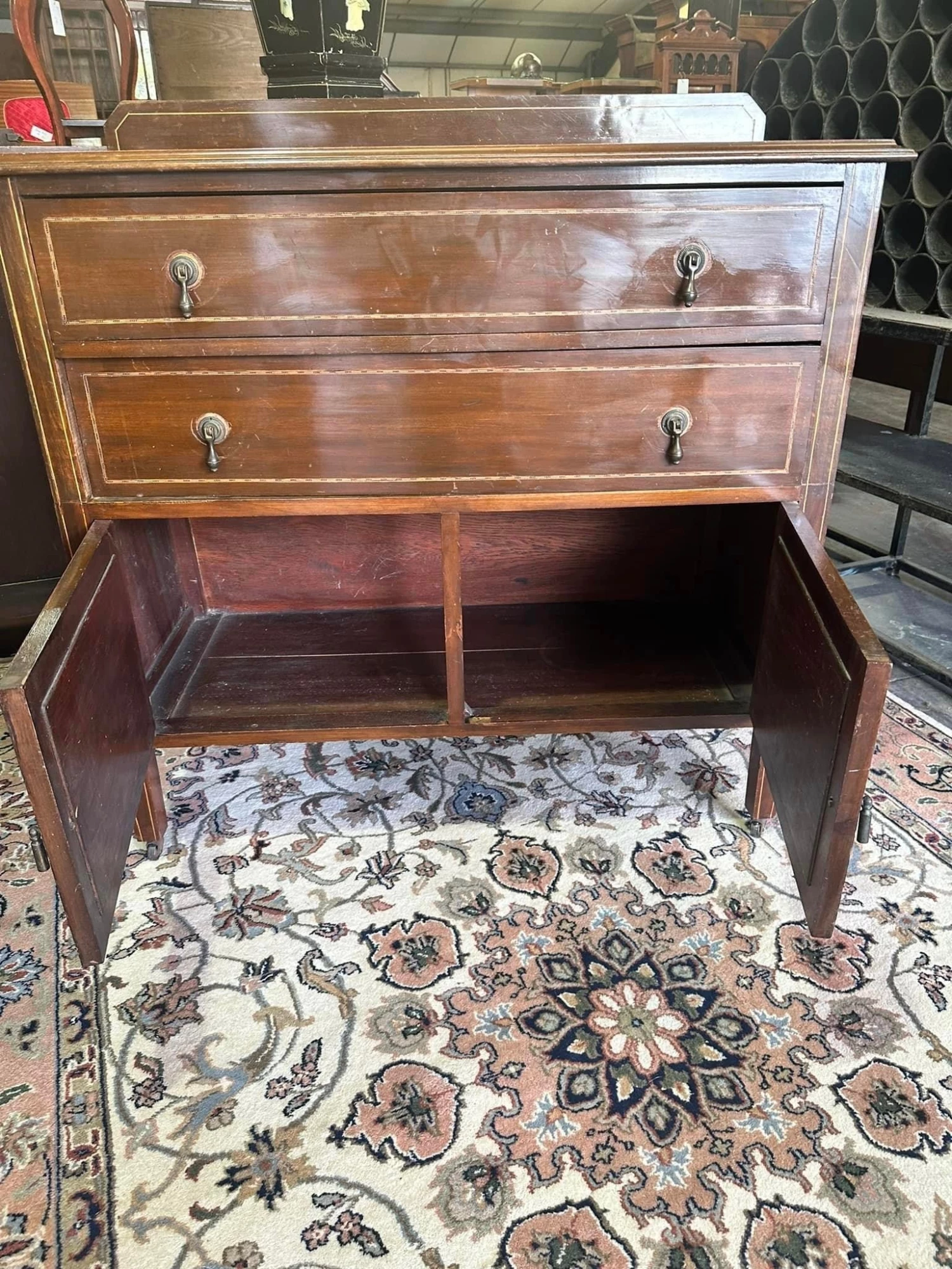 This is a solid and sturdy piece and although has some cosmetic scuffs and scratches (as seen in the photographs) still a fab piece of timeless furniture.