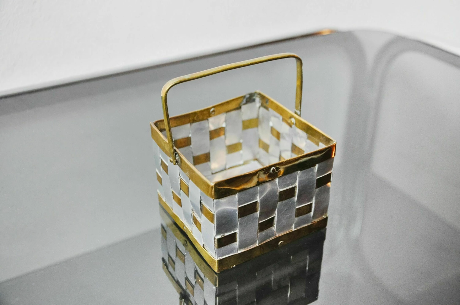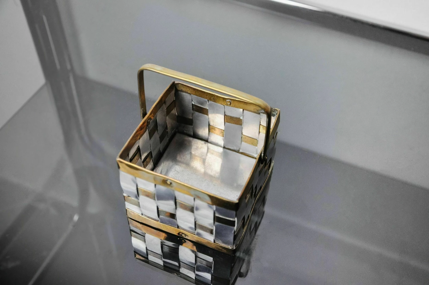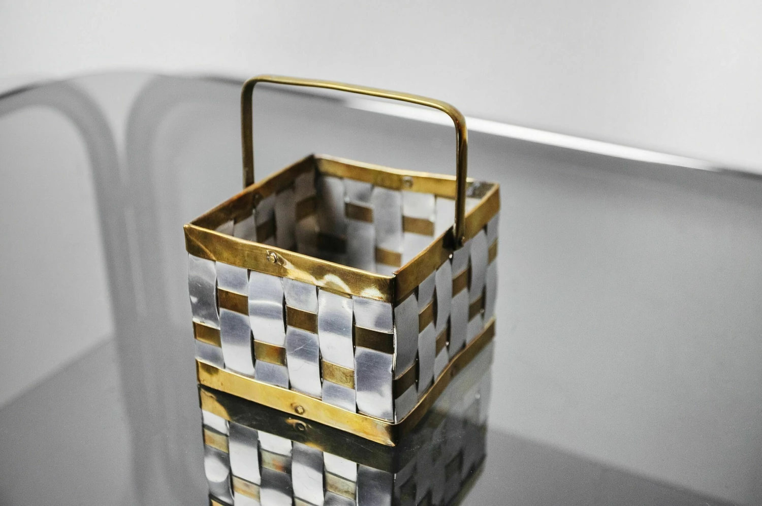 Small deposit hollywood regency key designated and produced by paul evans in the 1970s. Basket in aluminum and braided brass. Decorative object that will know a real design touch to your interior. Ref: 1001.