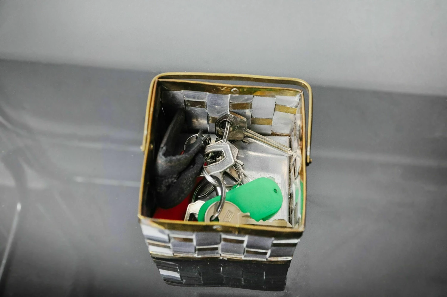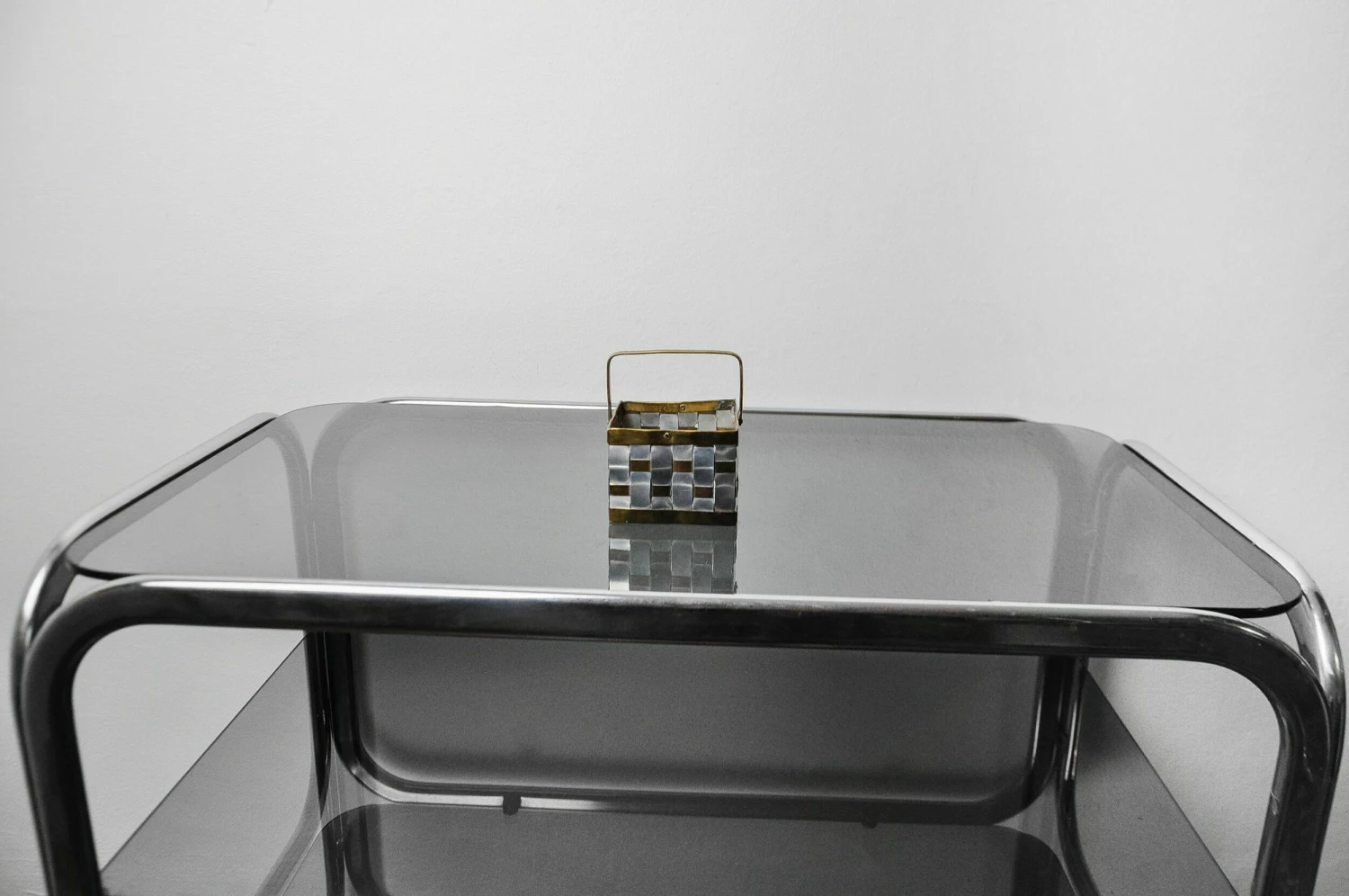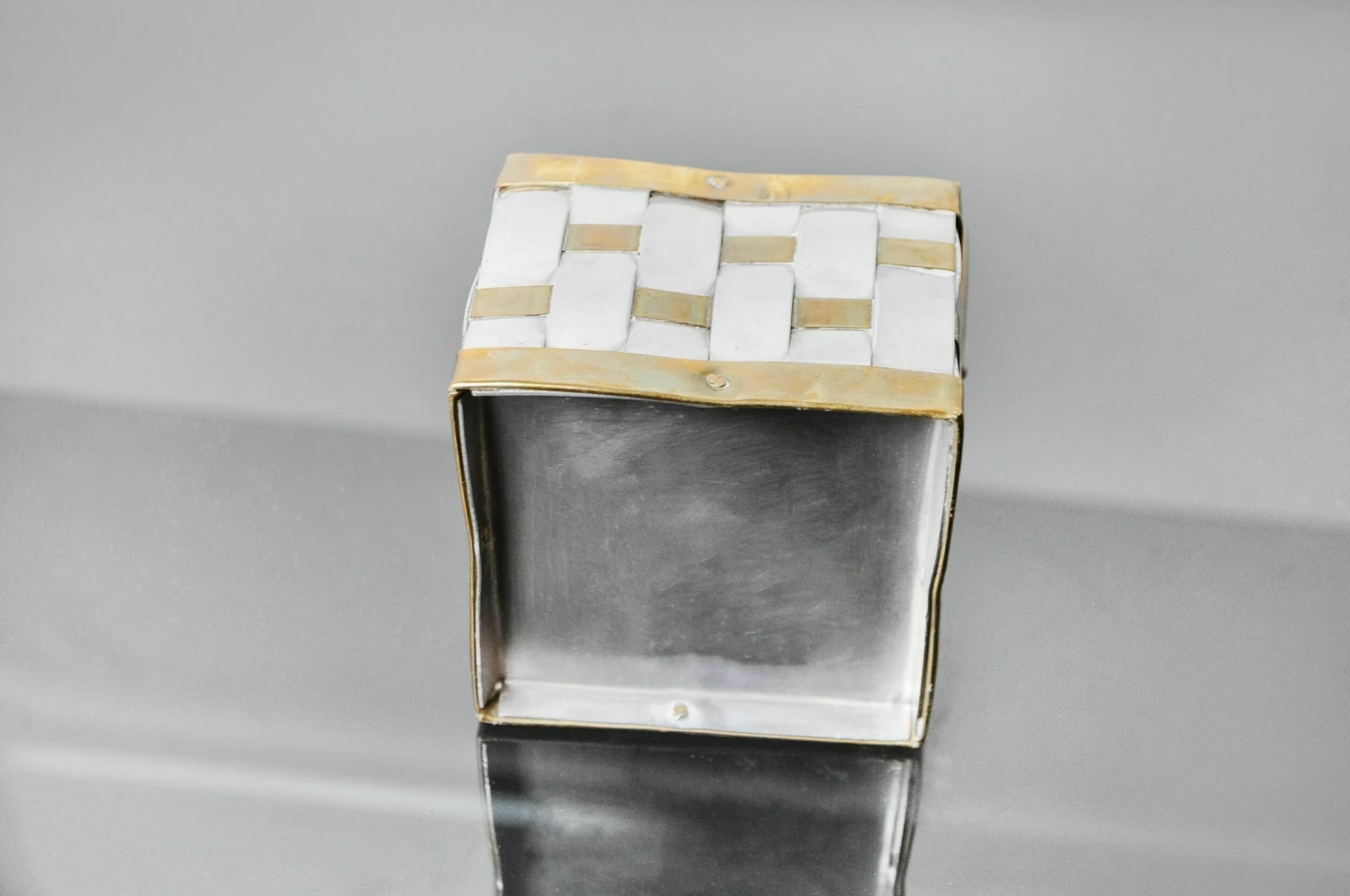 Small deposit hollywood regency key designated and produced by paul evans in the 1970s. Basket in aluminum and braided brass. Decorative object that will know a real design touch to your interior. Ref: 1001.