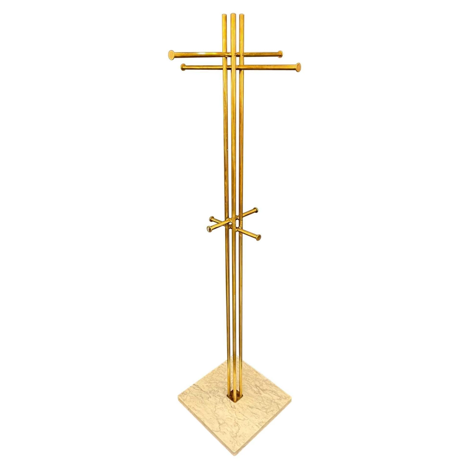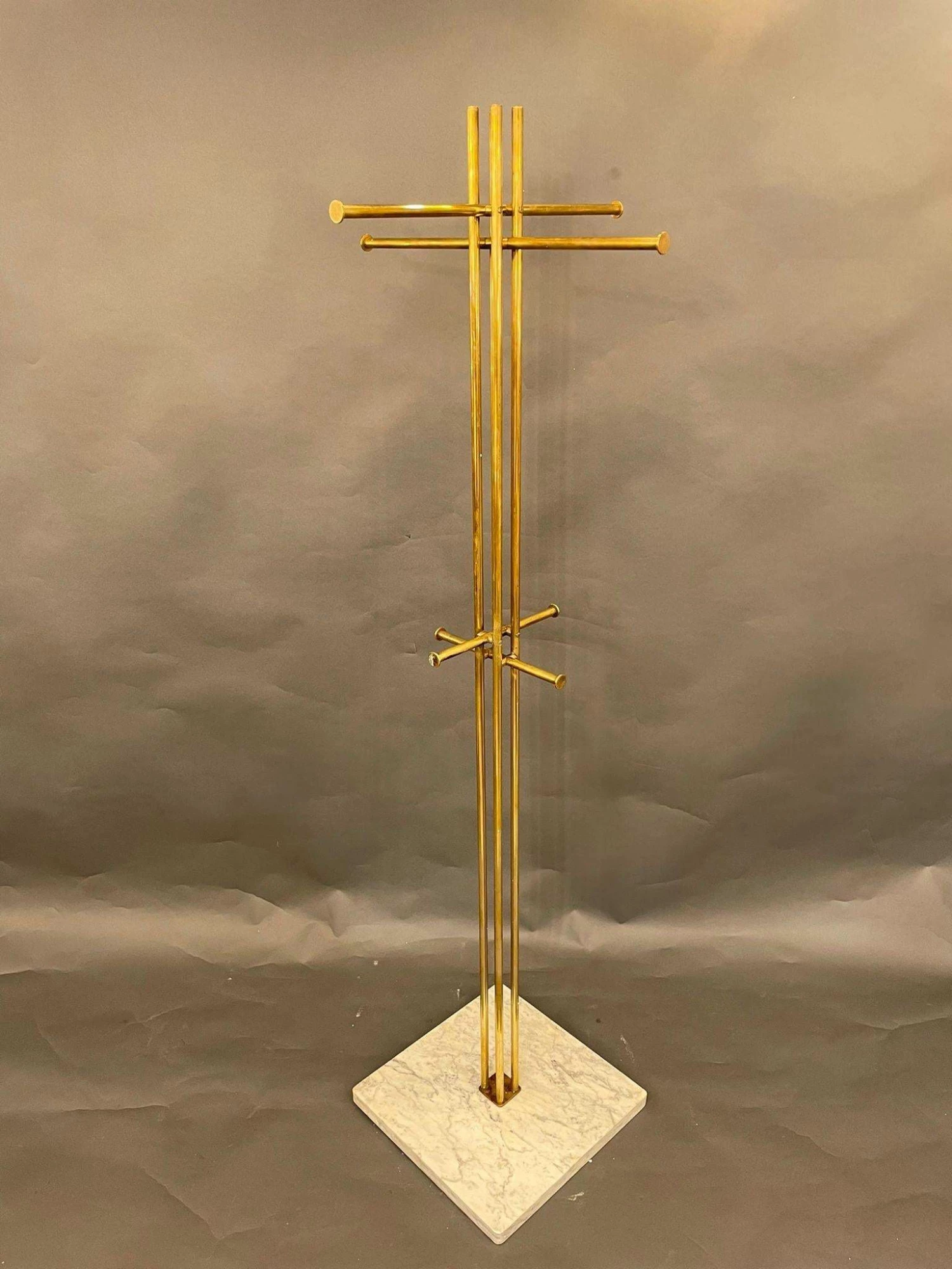 Italian coat rack in brass and base in carrara marble, circa 1960s.