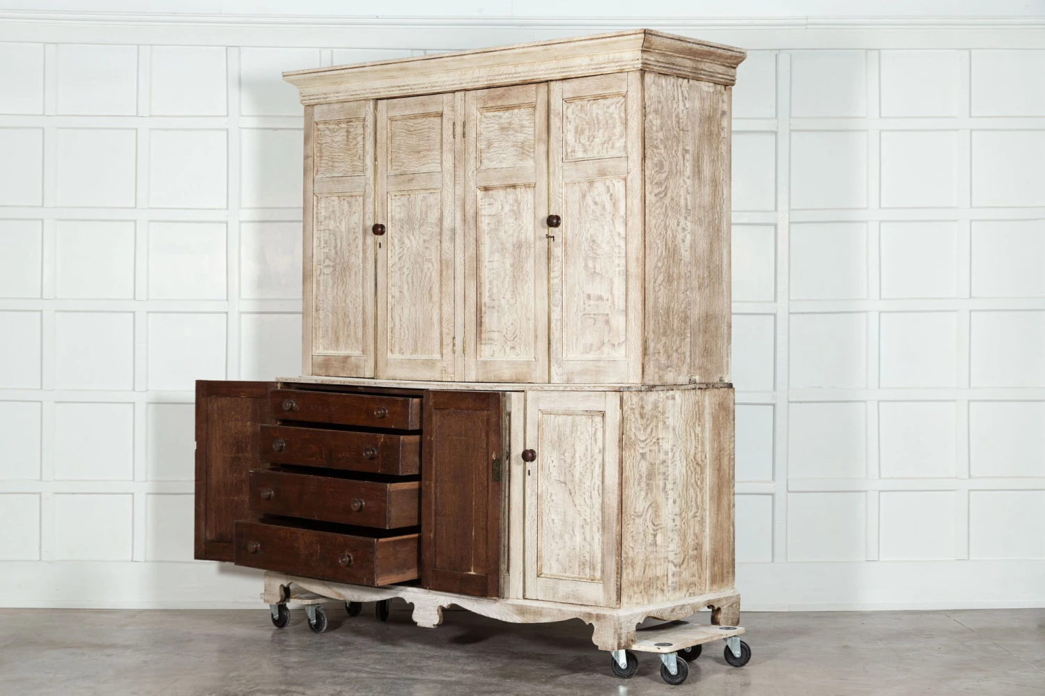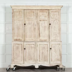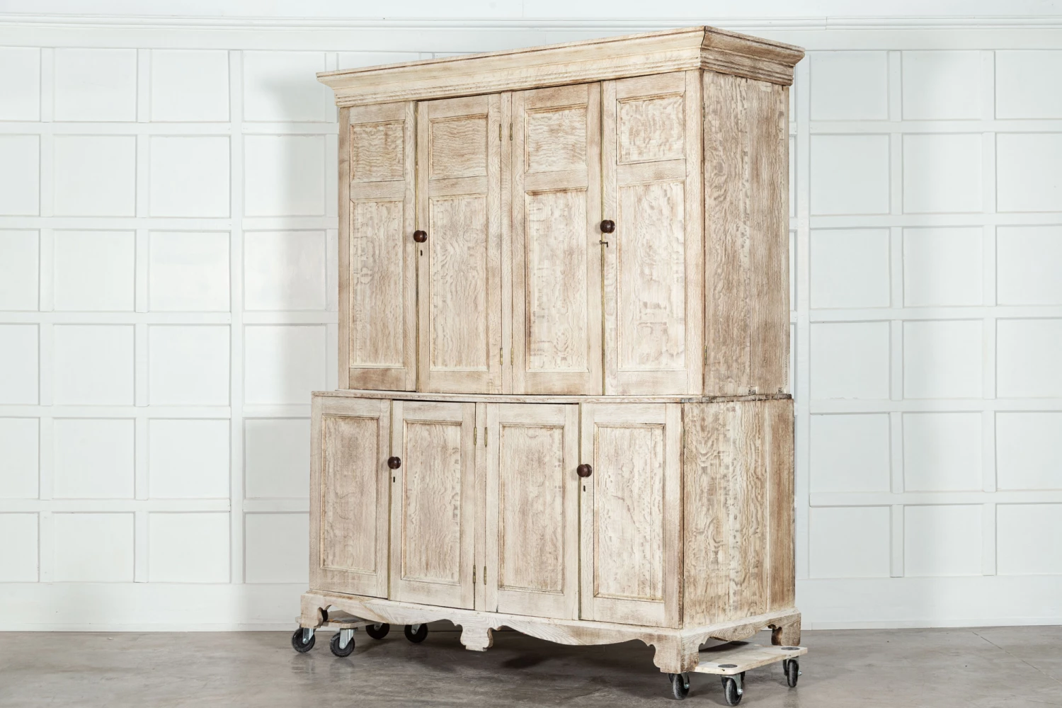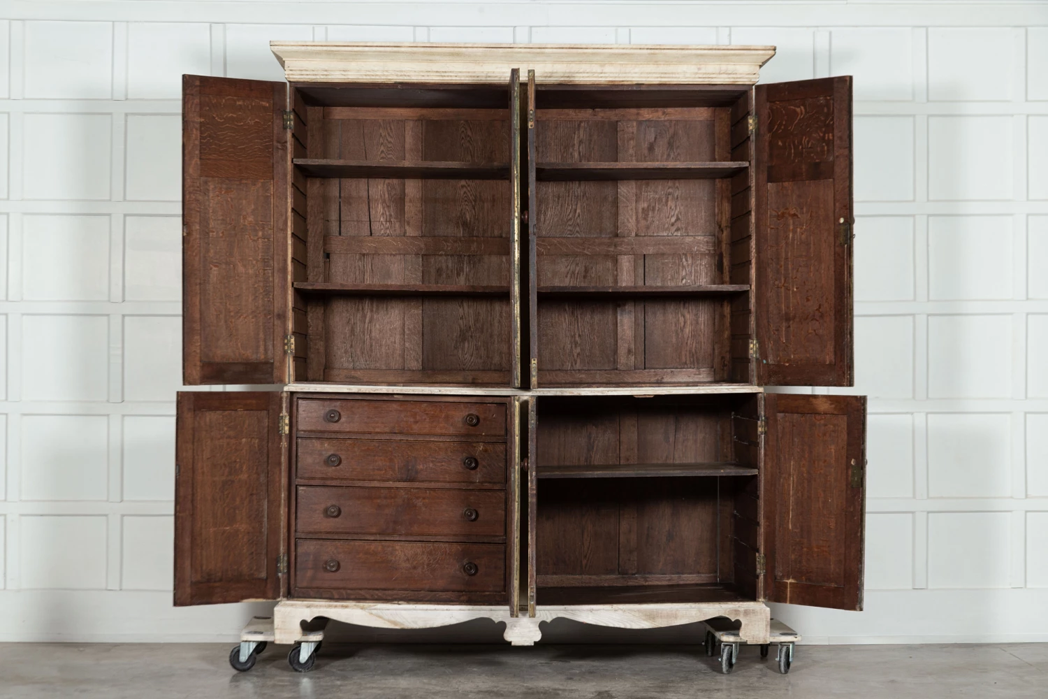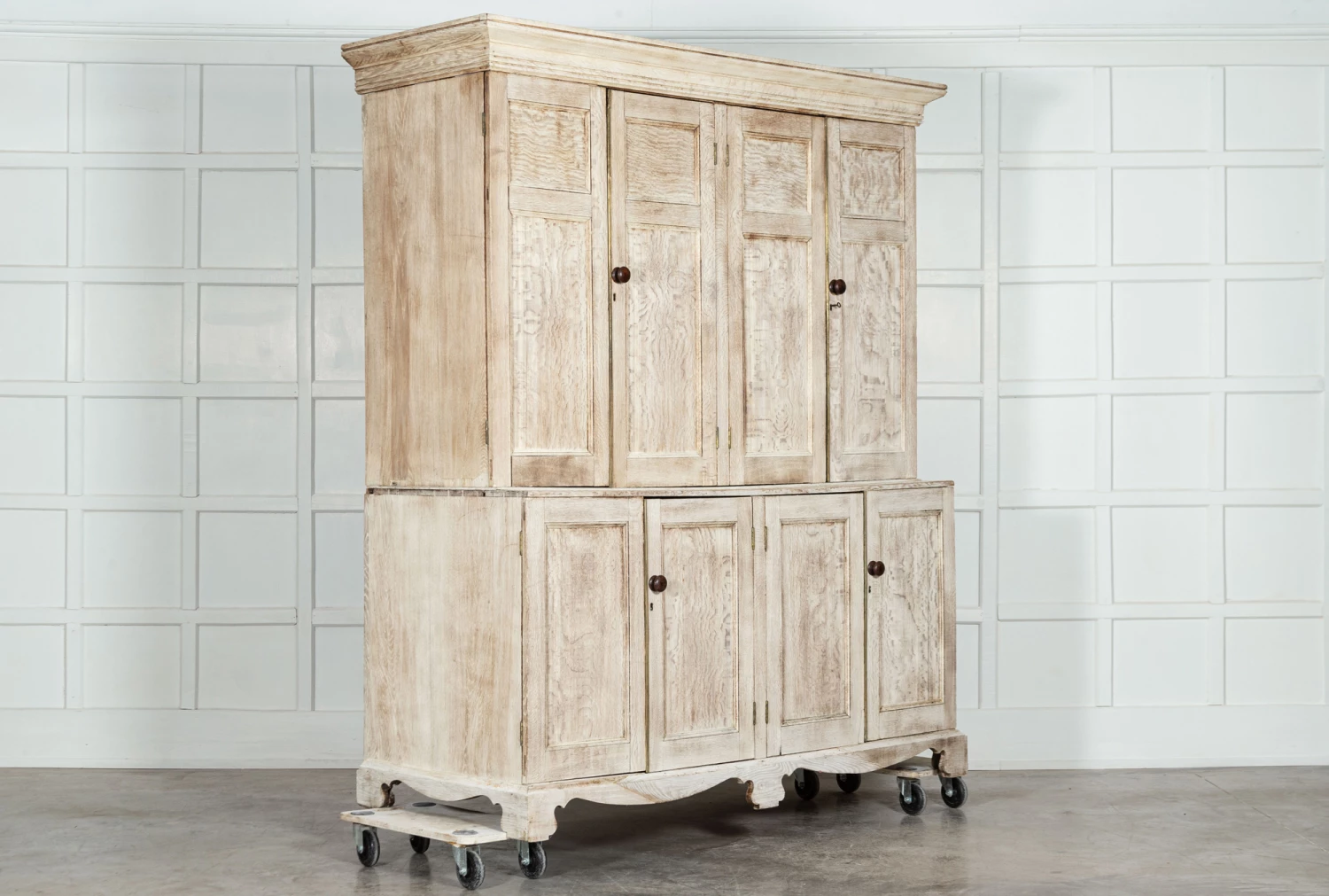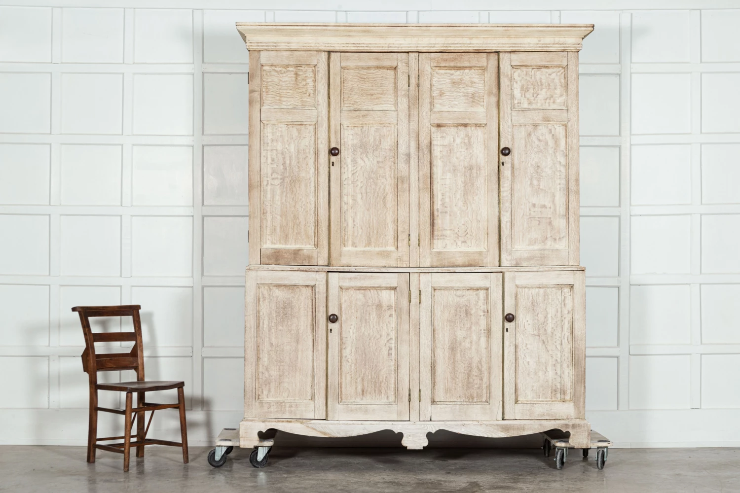 Large 19thC Bleached English Oak Housekeepers Cupboard