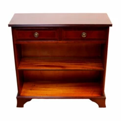 LOVELY RICH BROWN DWARF OPEN BOOKCASE WITH ADJUSTABLE SHELF & PAIR OF DRAWERS.