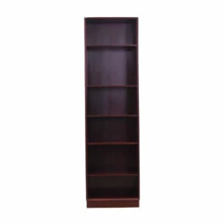 The structure is covered with mahogany veneer. The furniture is placed on a wooden plinth. The surface has been refreshed. Inside the space has been filled with five practical shelves with height adjustment. The bookcase is ideal for storing a collection of books or collectables.