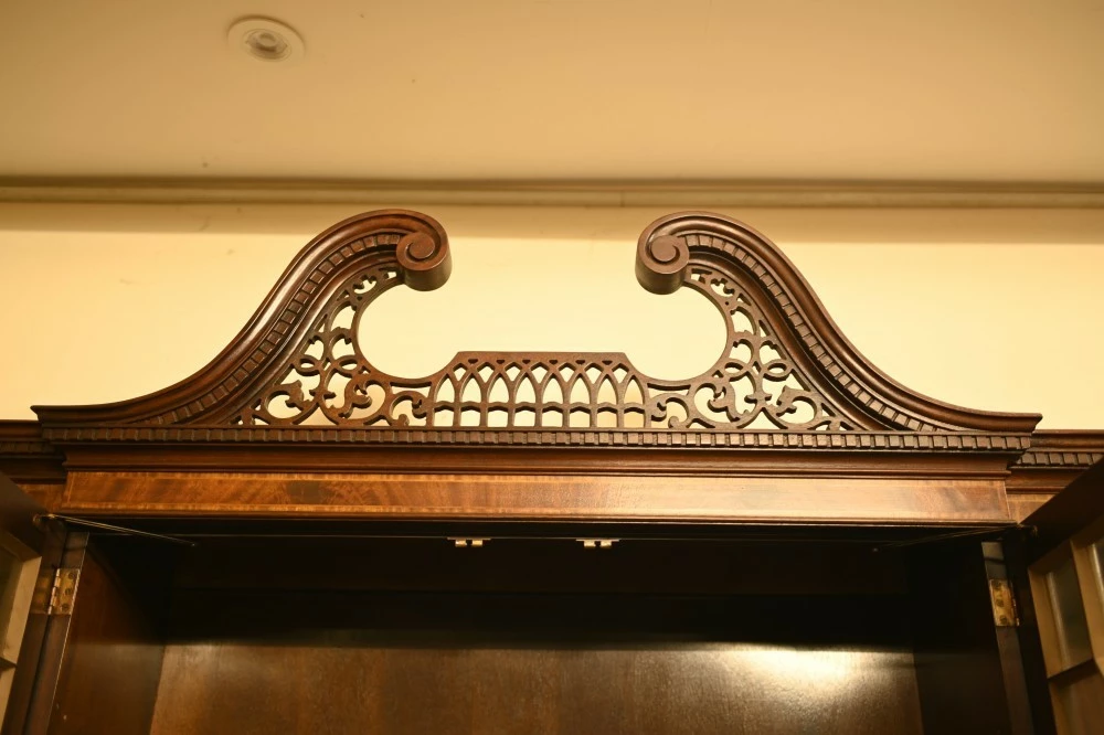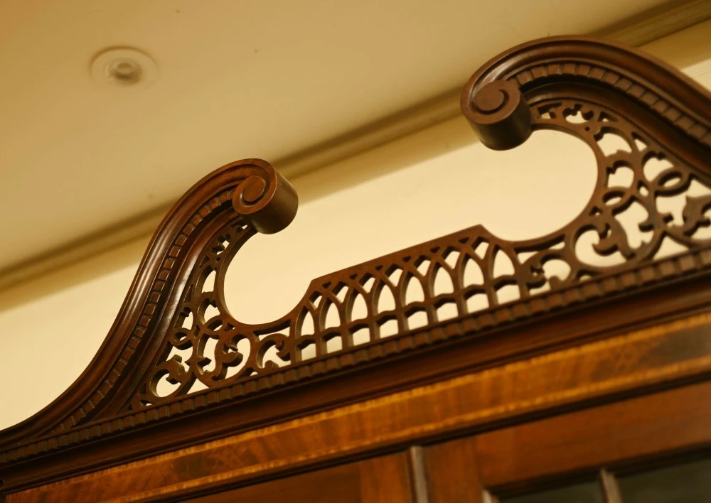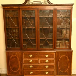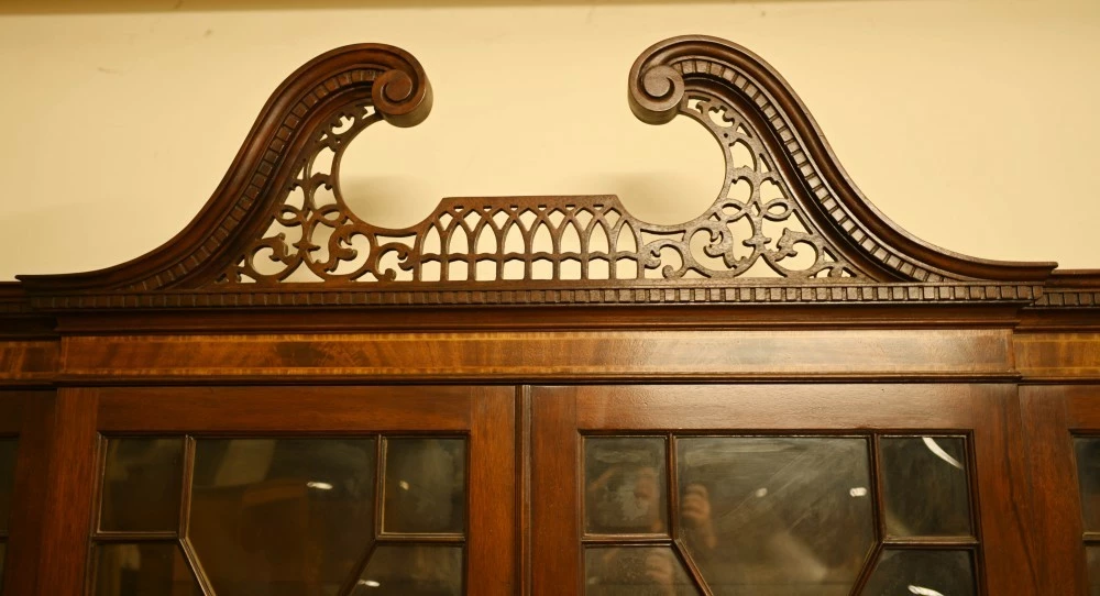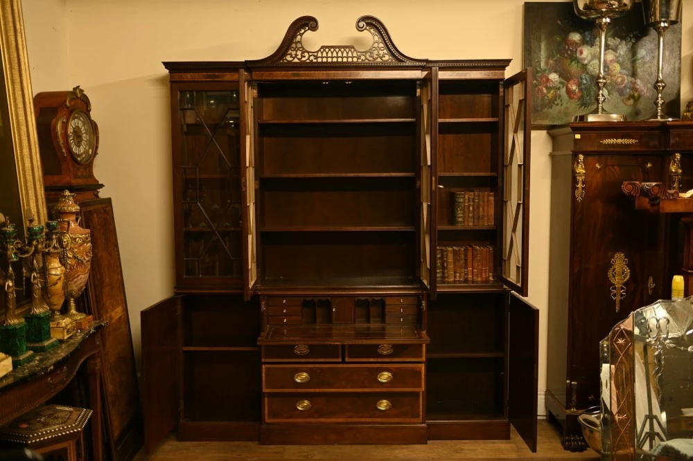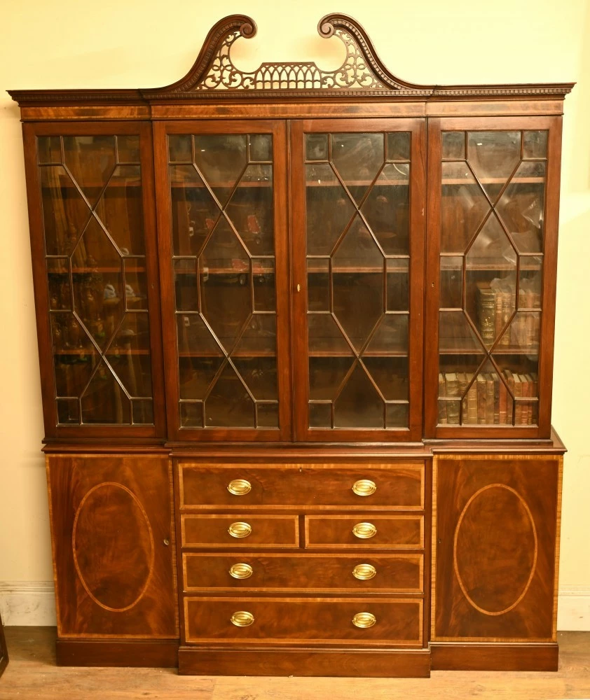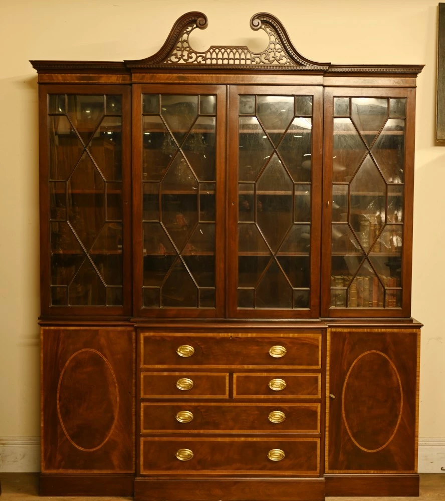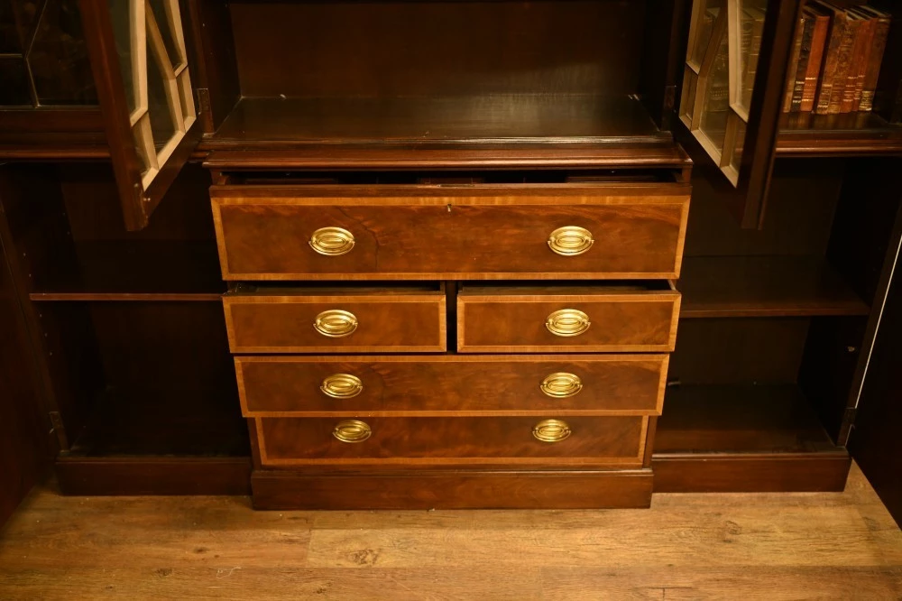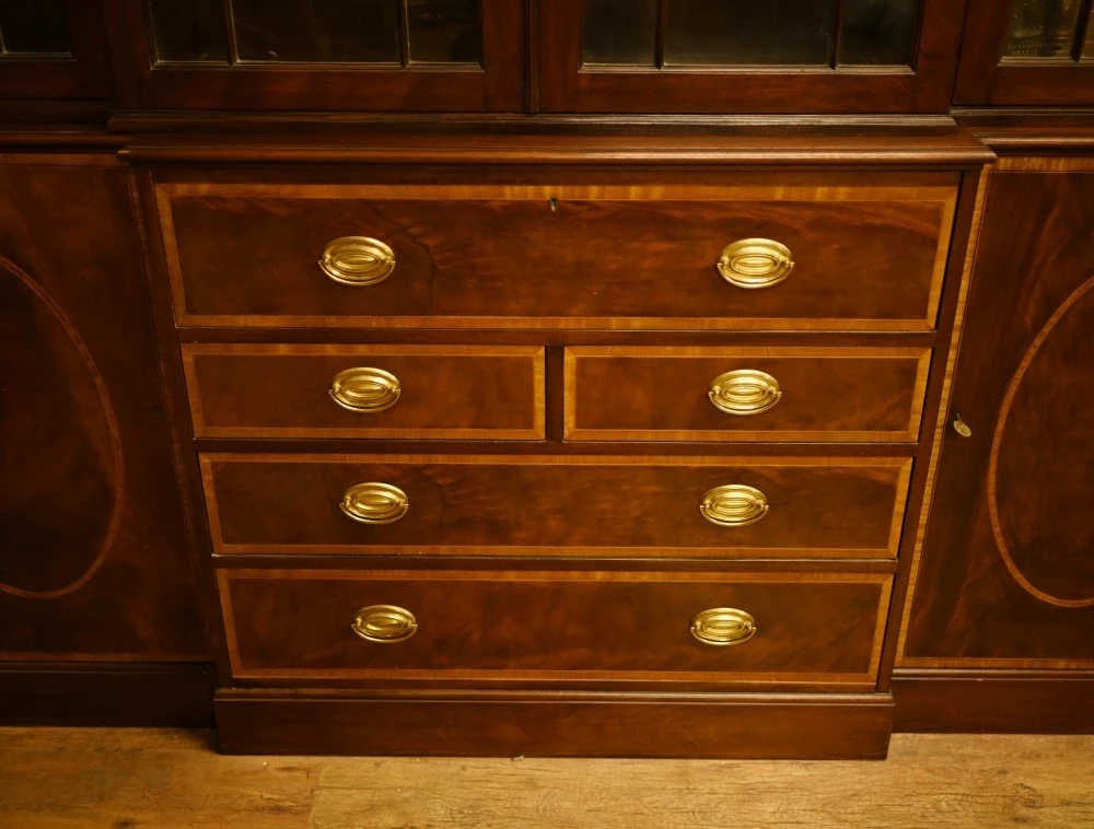 Elegant mahogany breakfront bookcase in the Sheraton manner