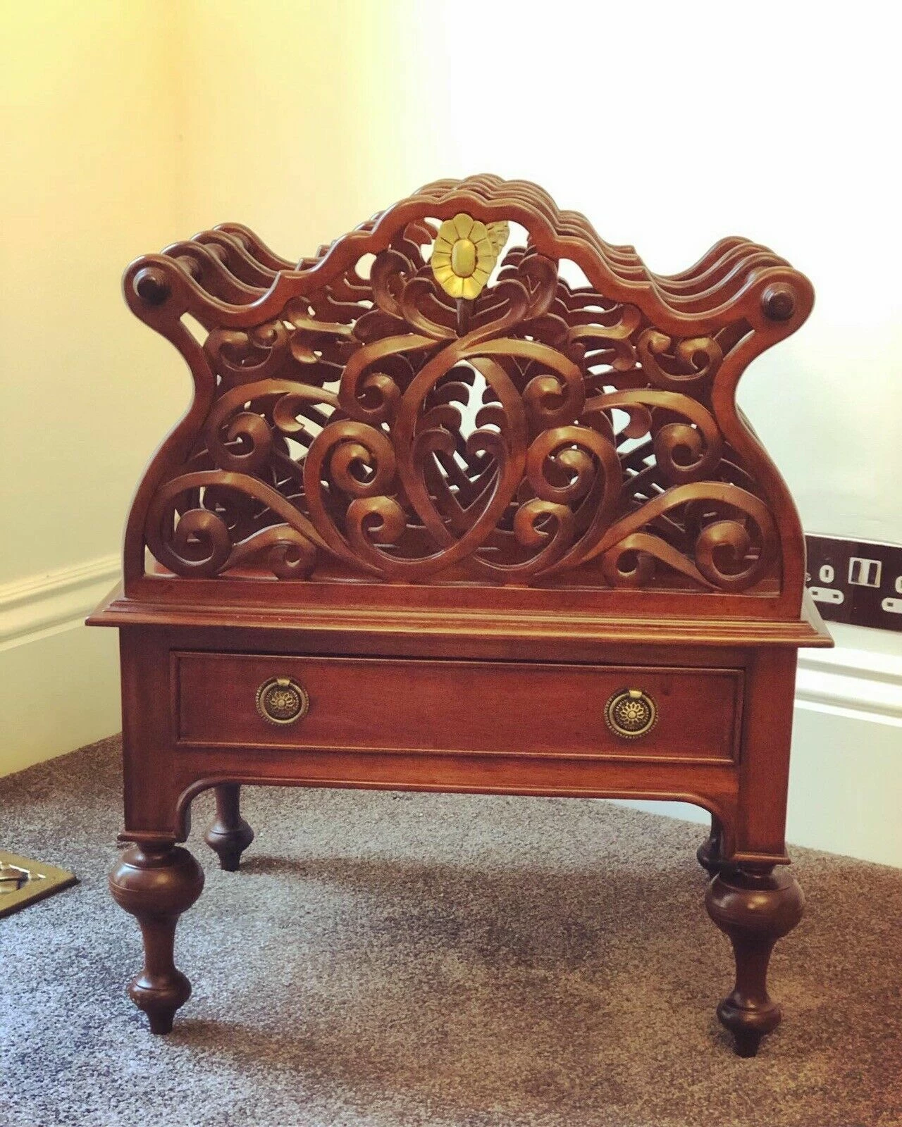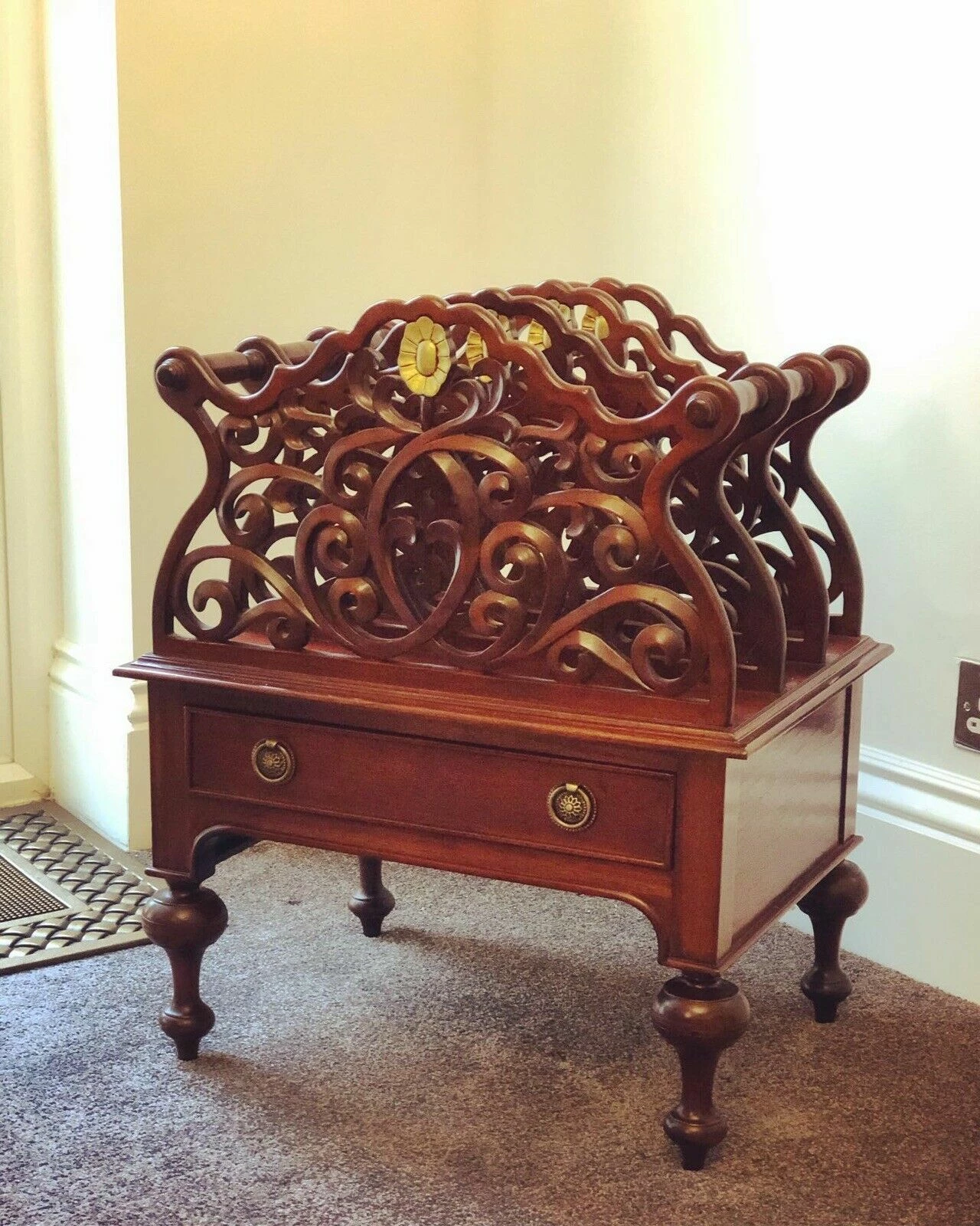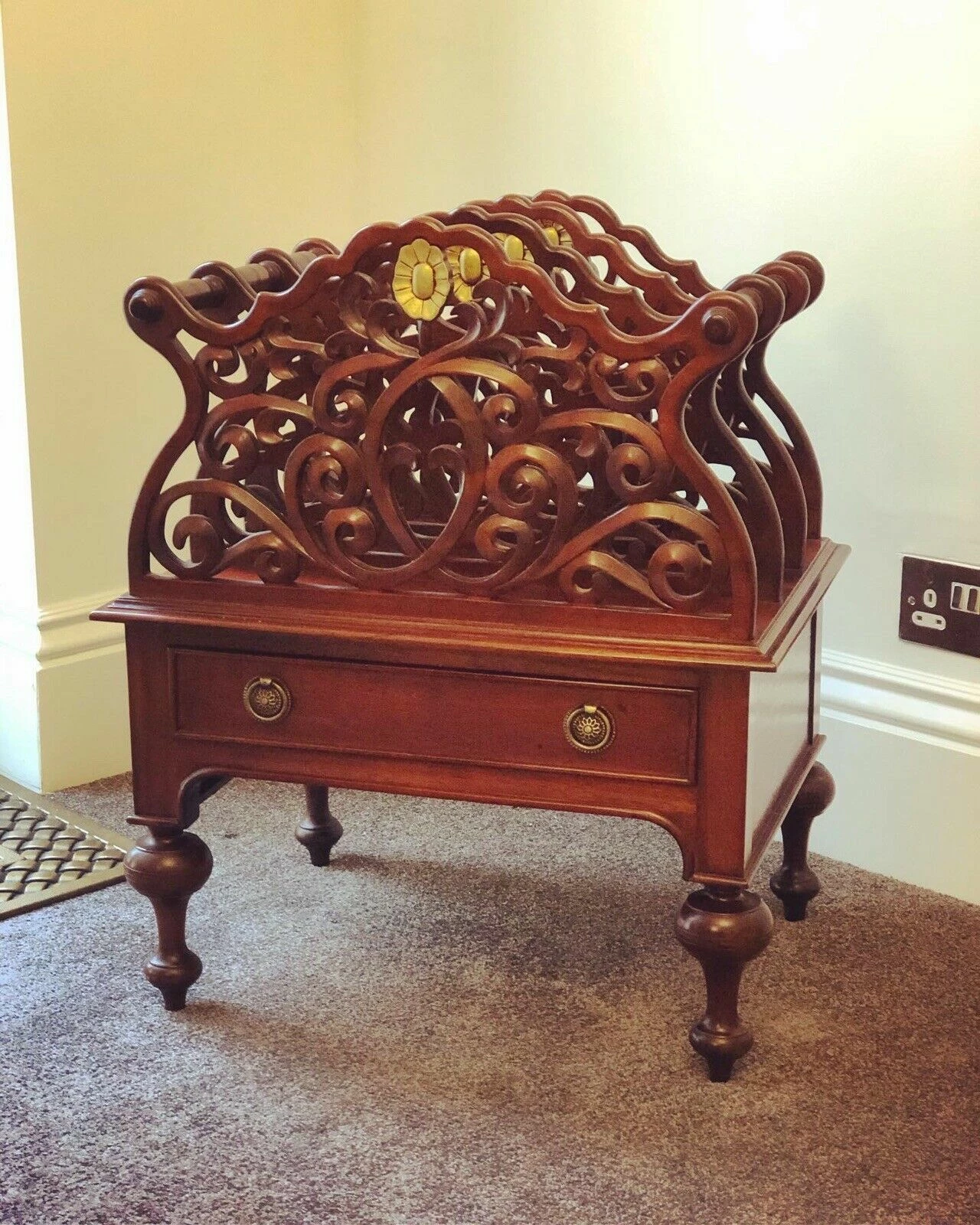 Fine looking Mahogany Canterbury Magazine Rack With Drawer