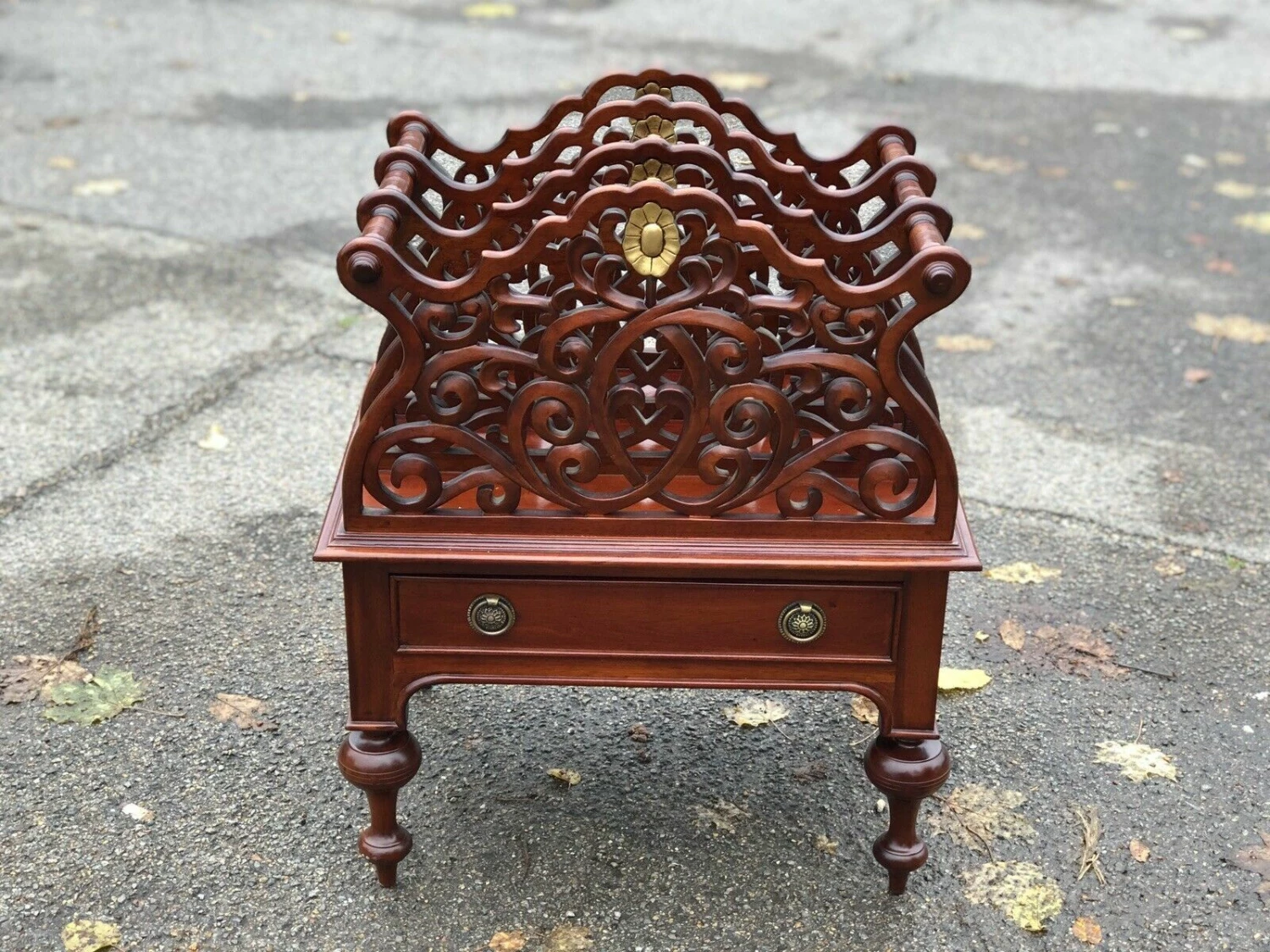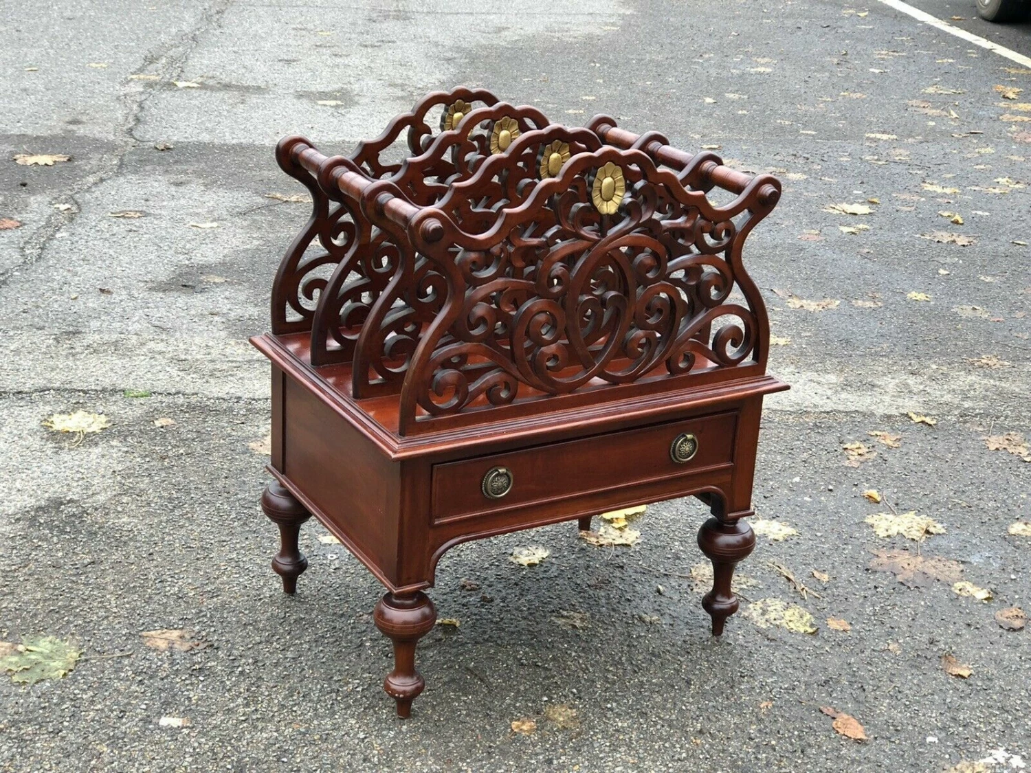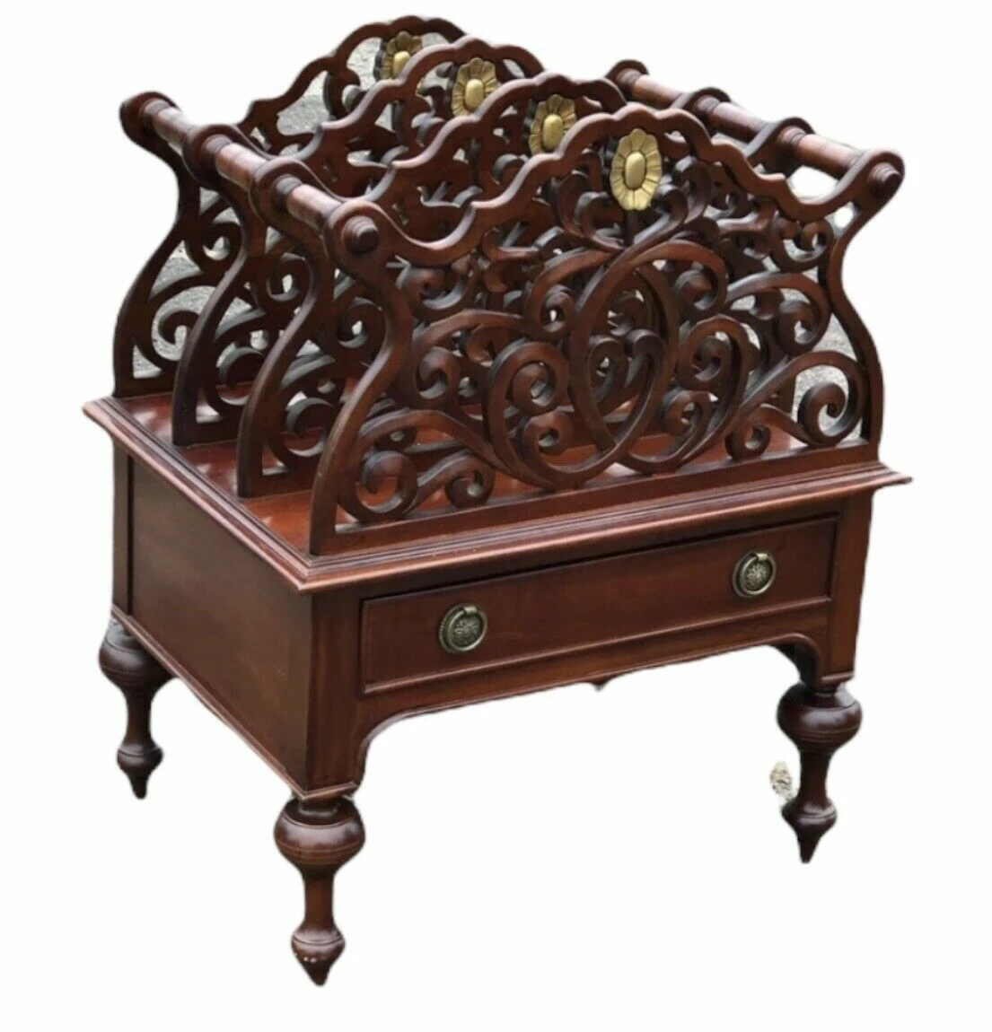 Fine looking Mahogany Canterbury Magazine Rack With Drawer