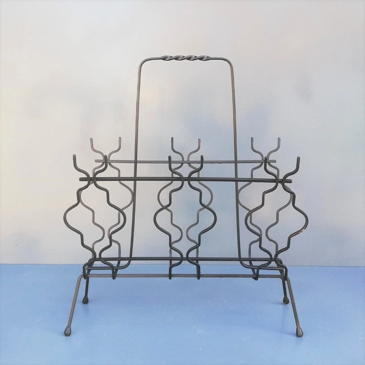 French modernist mid-century metal magazine rack.