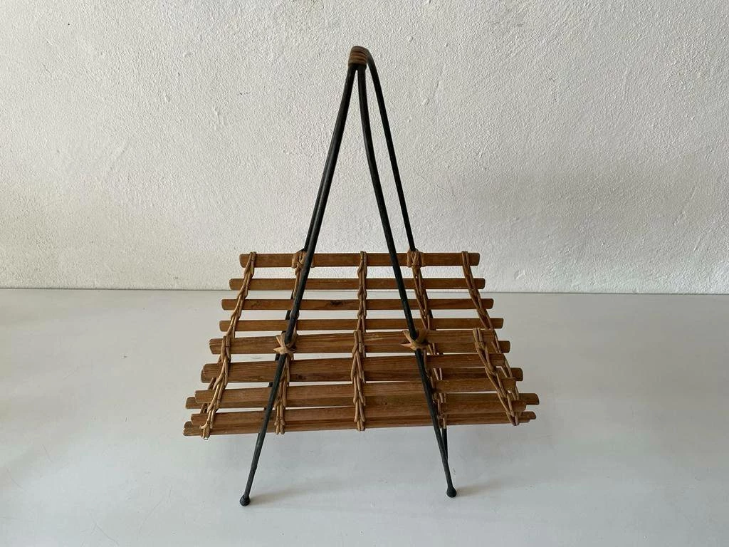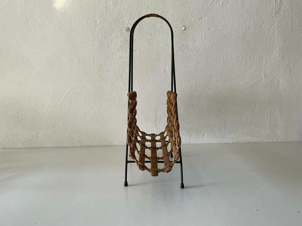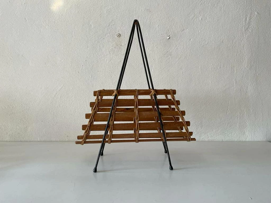 Mid-Century Modern Wicker and Wood Magazine Stand, 1960s