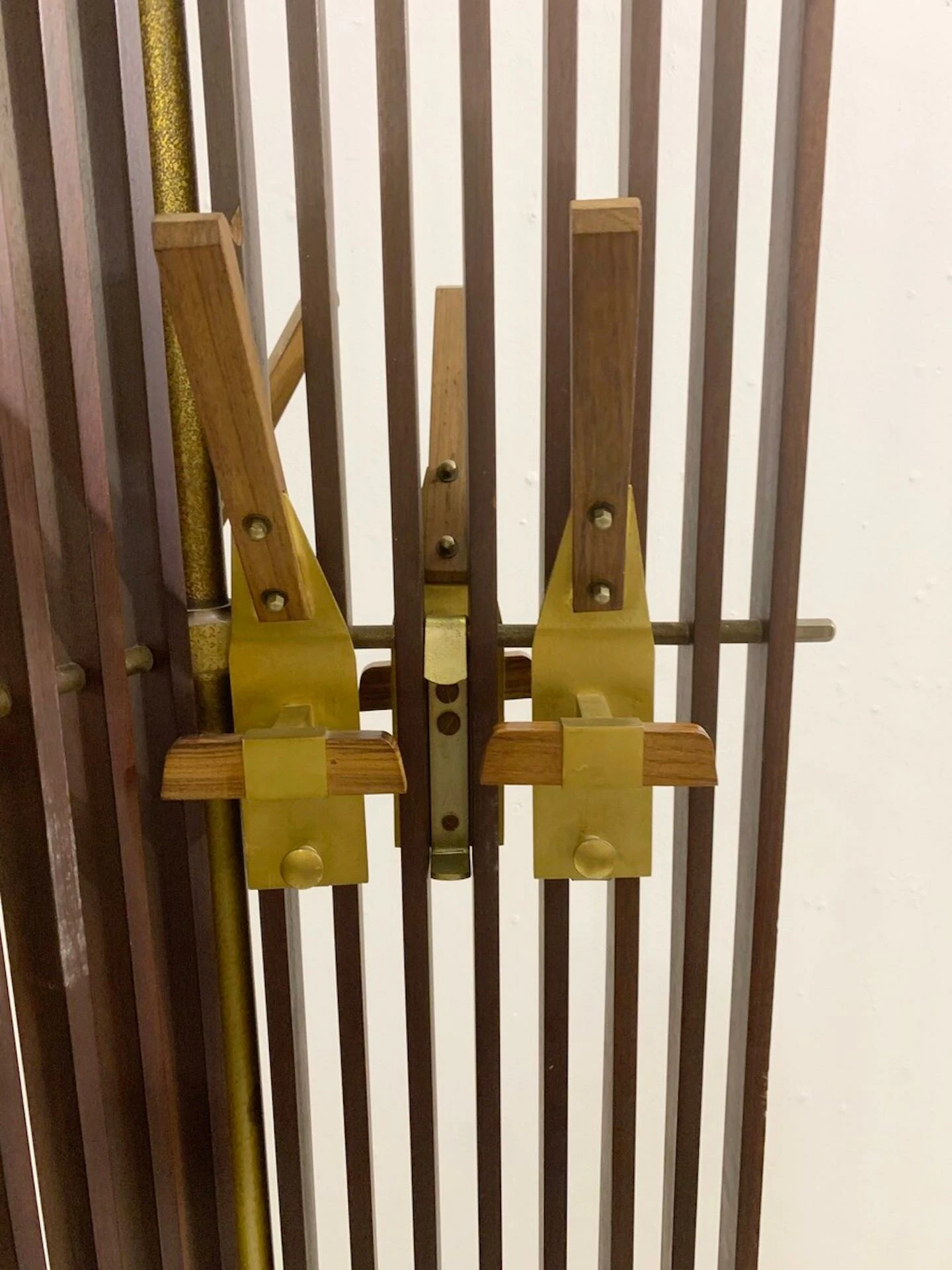 Mid-century wood and travertine feet swivel slatted modulable coat rack – Italy.