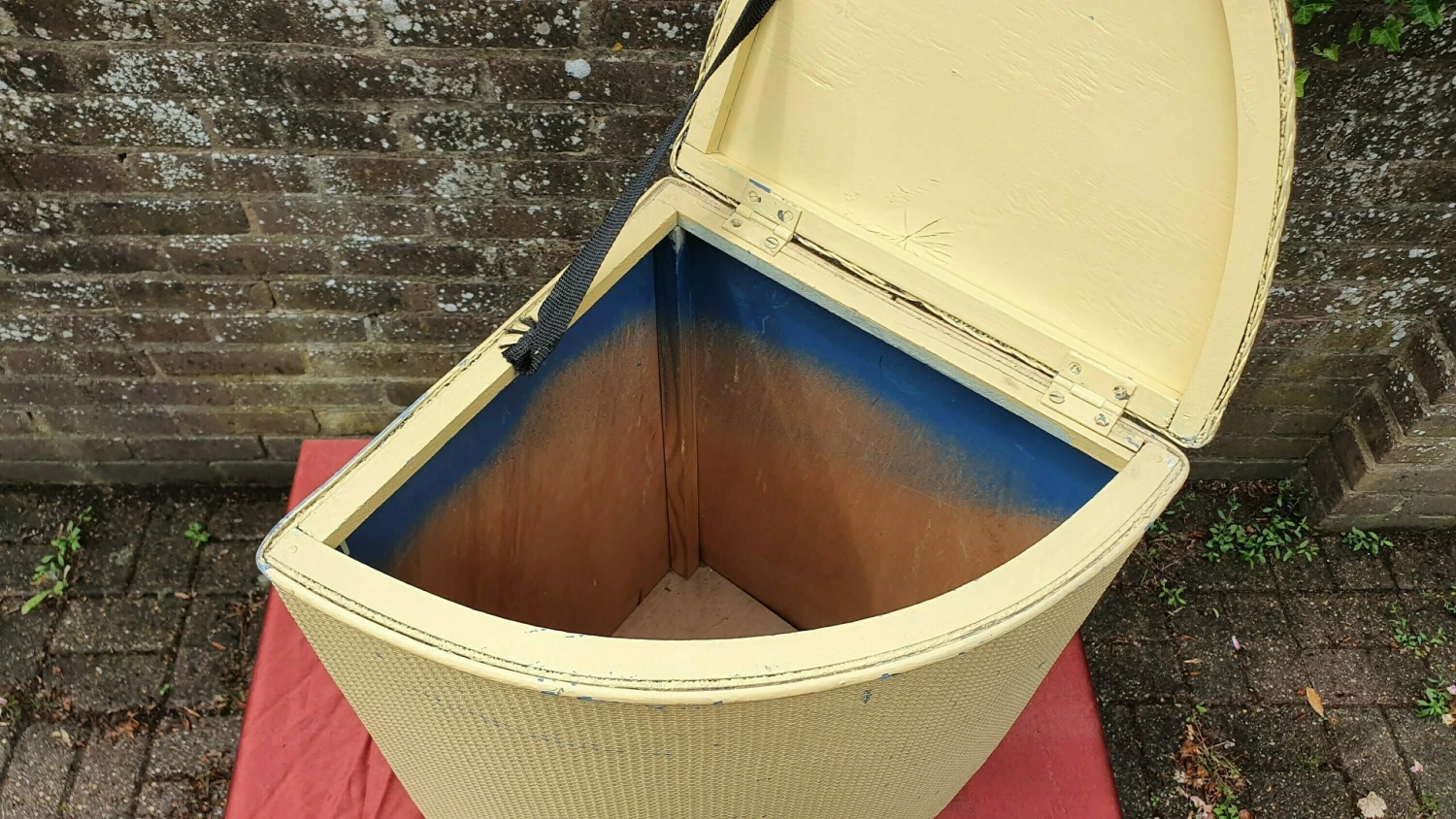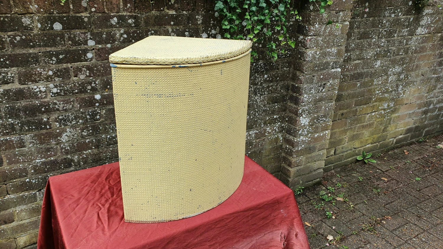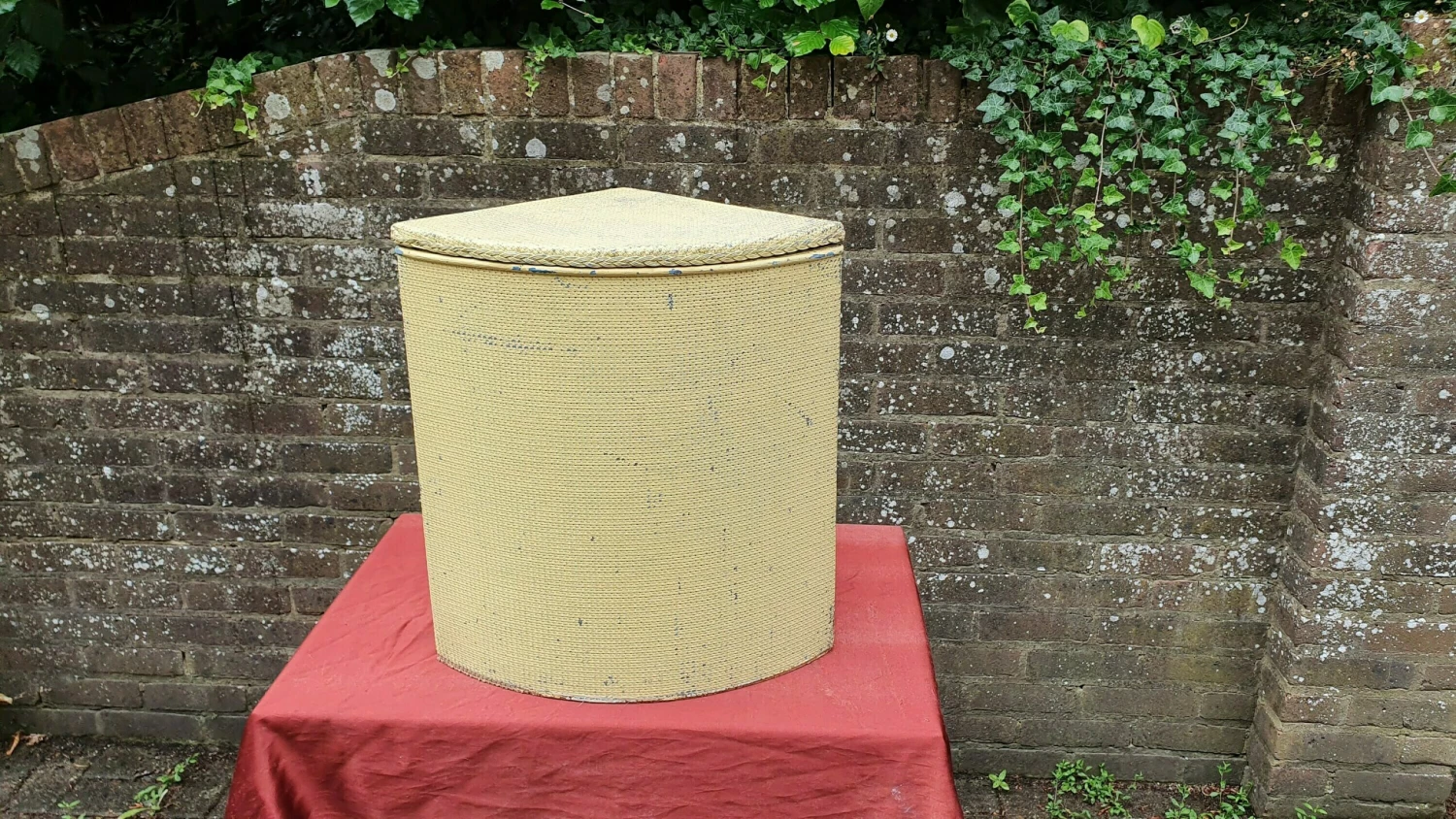 Painted Lloyd Loom Style Yellow Painted Corner Linen Basket.
