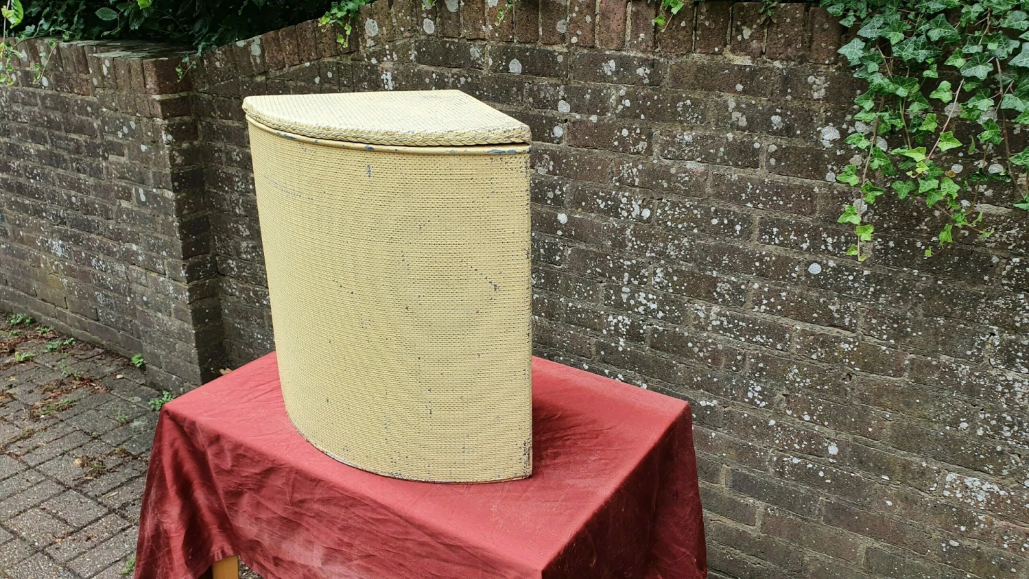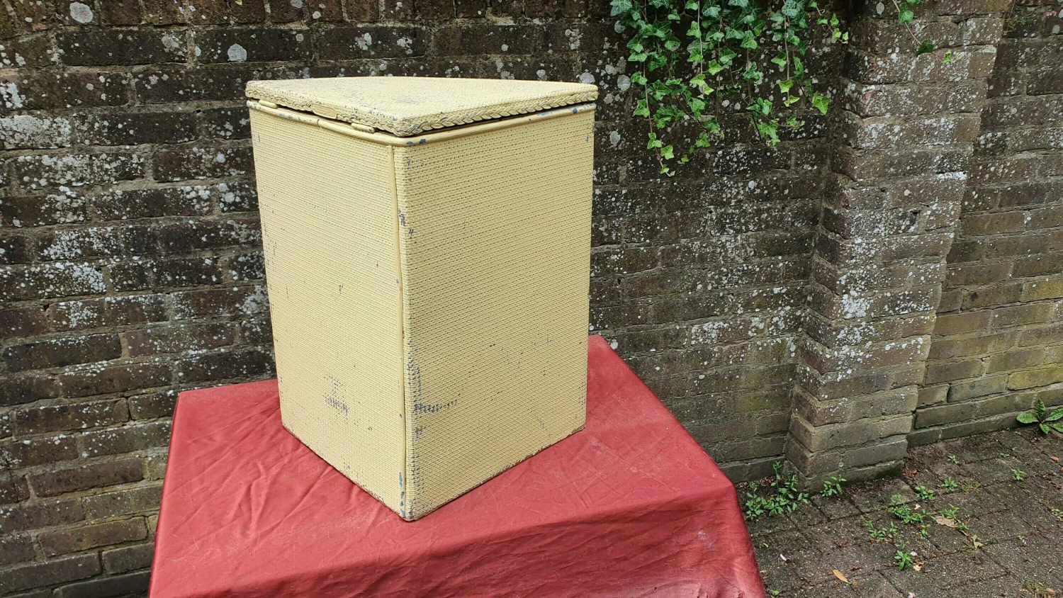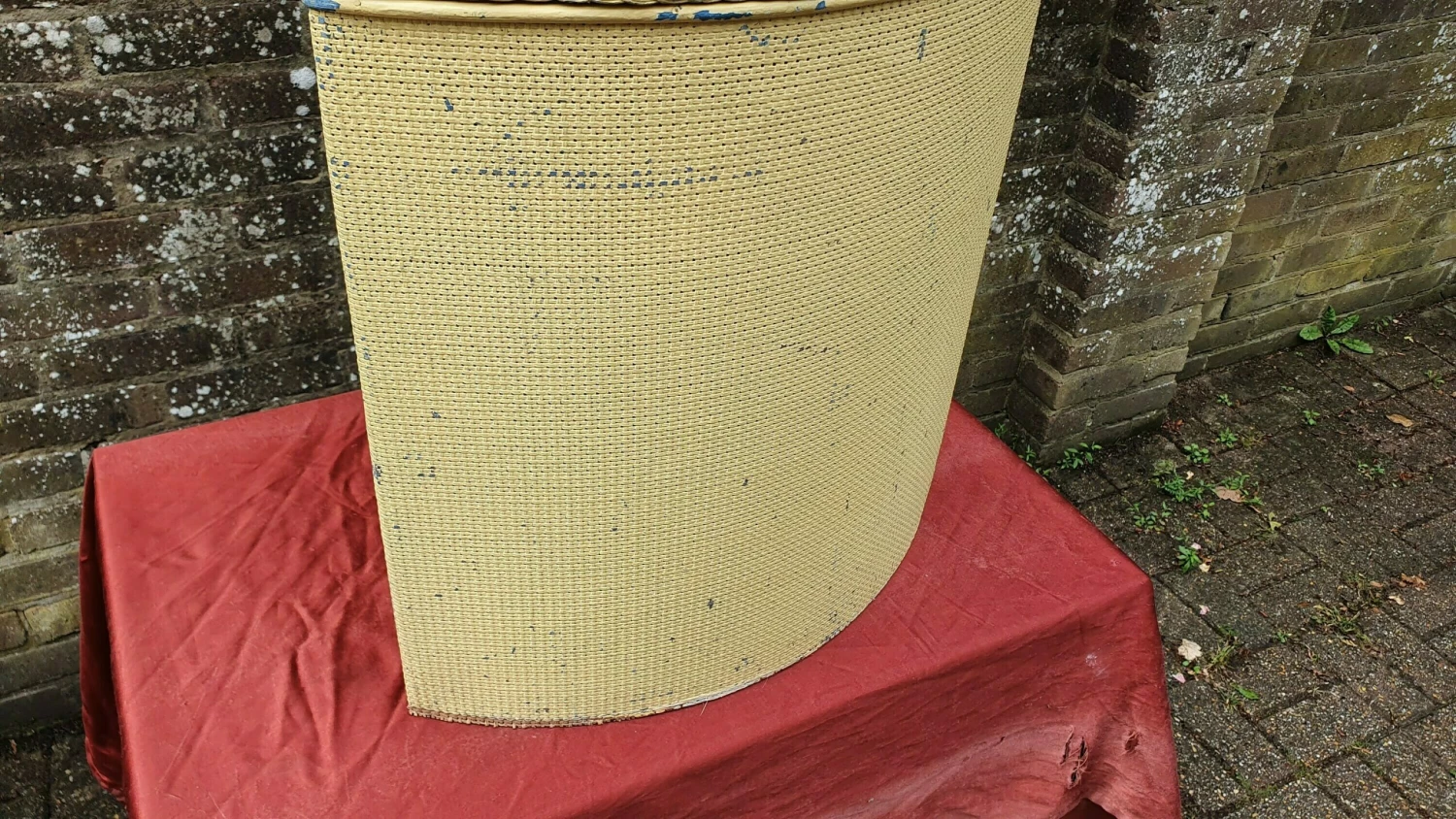 Painted Lloyd Loom Style Yellow Painted Corner Linen Basket.