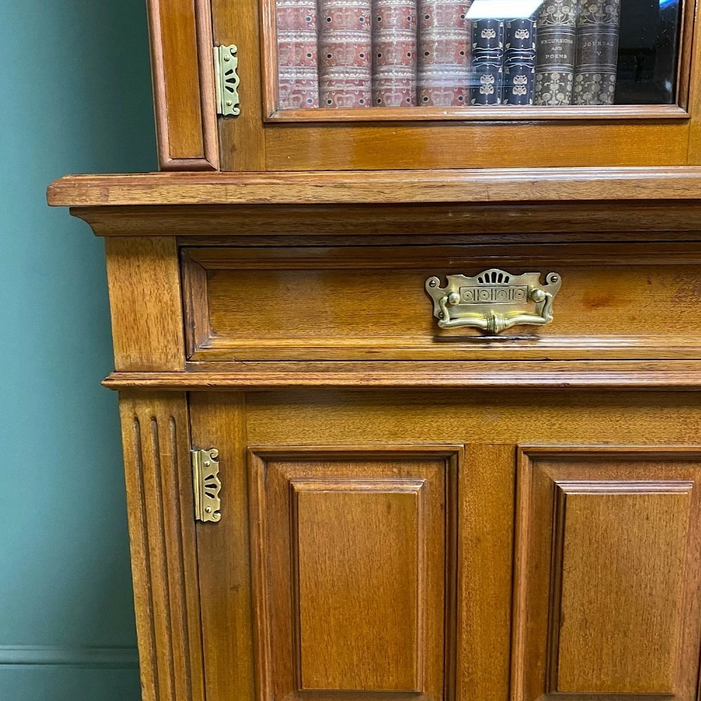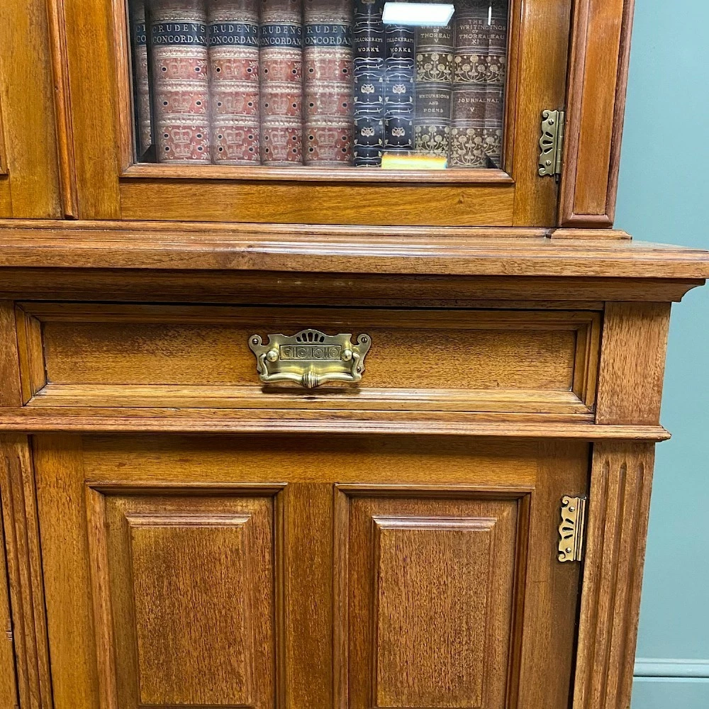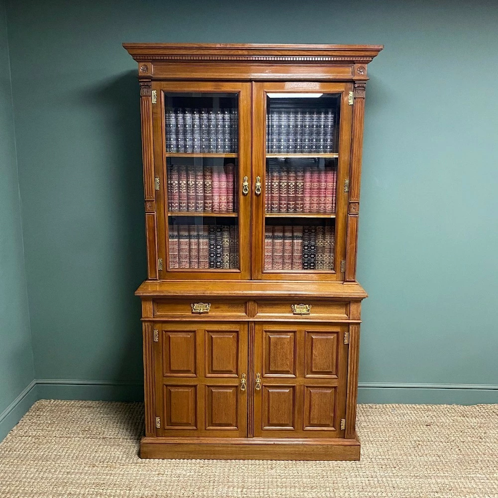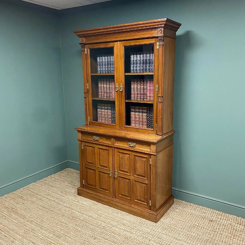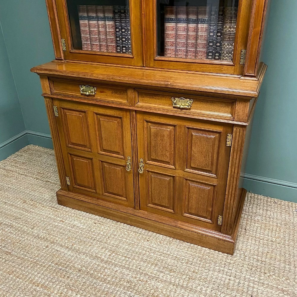 Quality Victorian Walnut Antique Glazed Bookcase on Cupboard