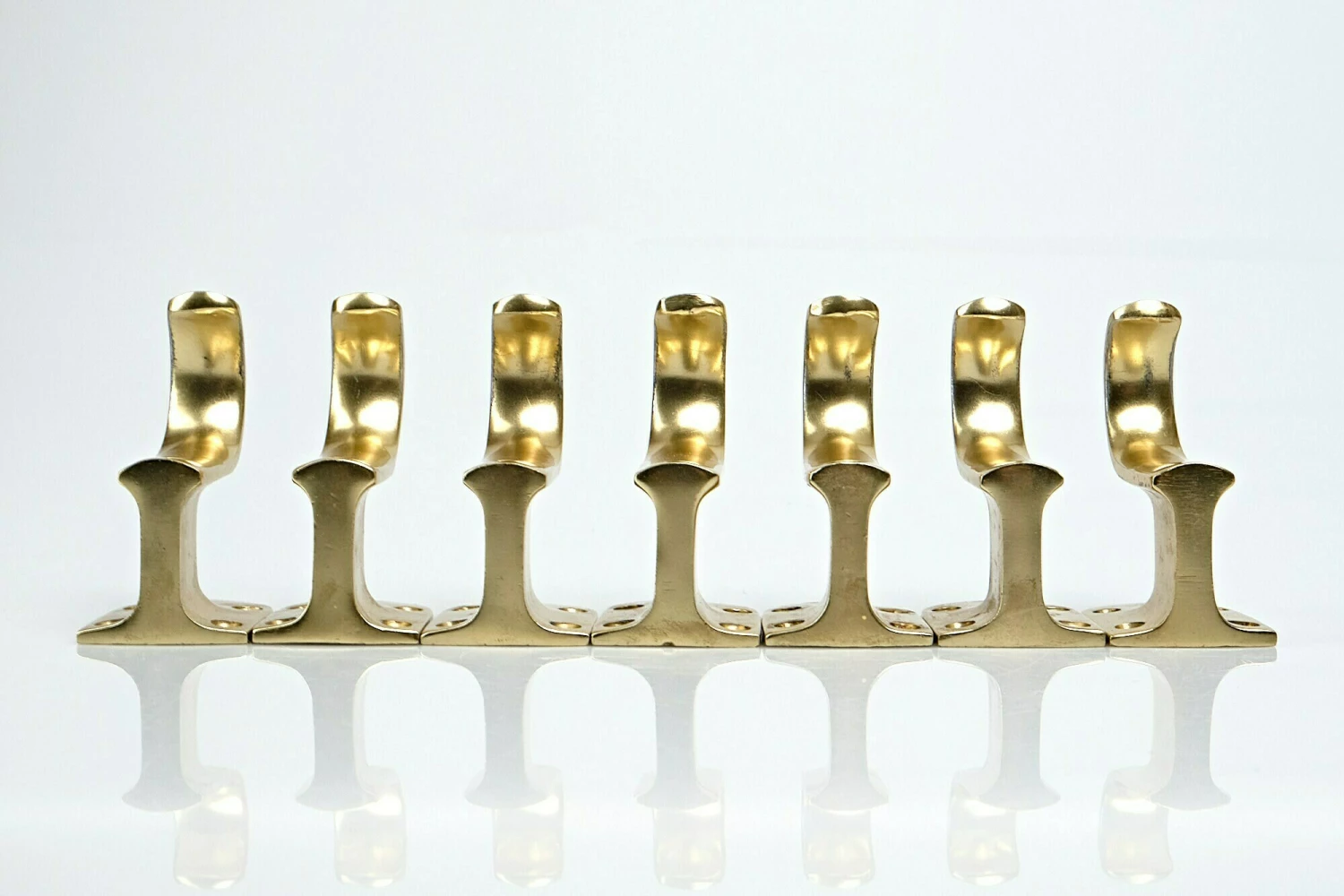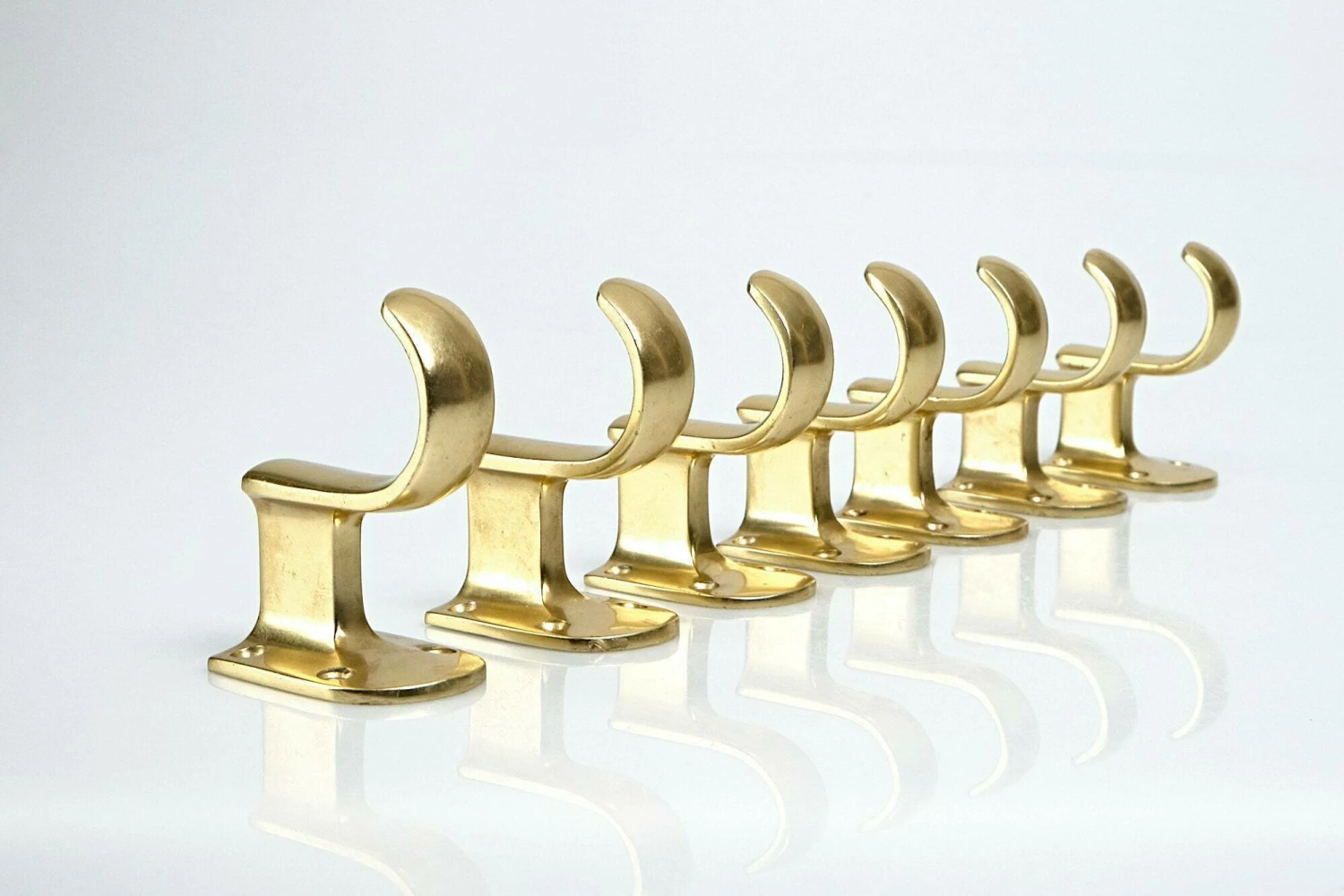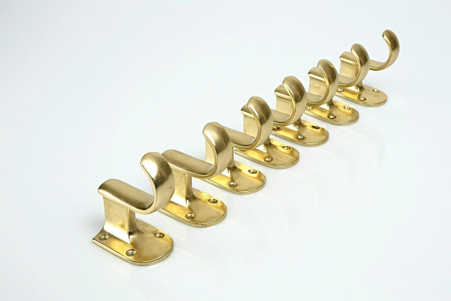 Seven coat hooks made of brass. Used, 1950s.