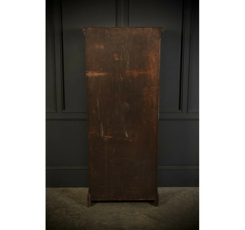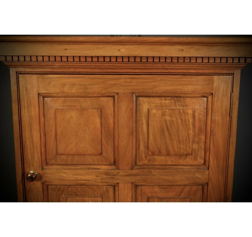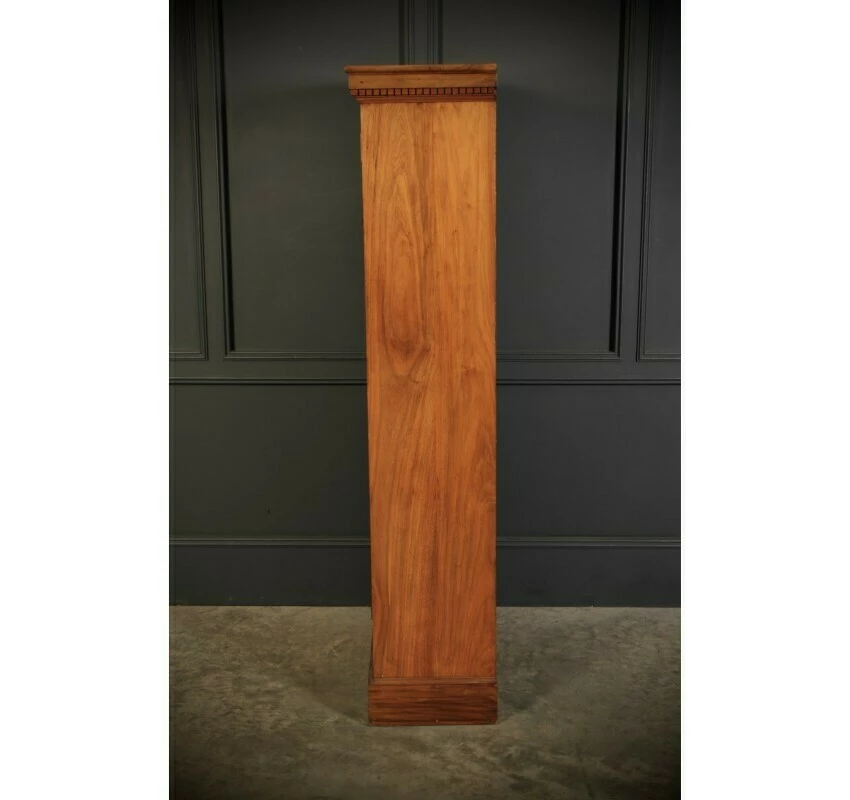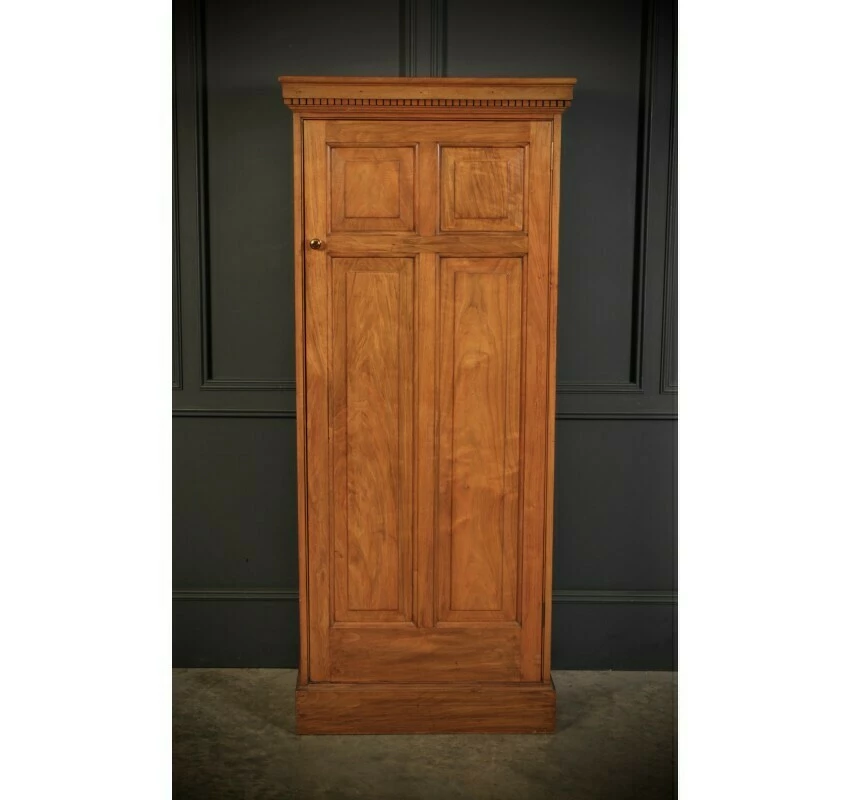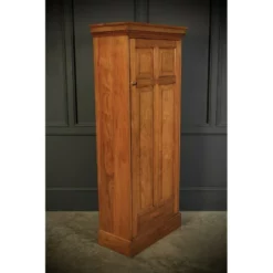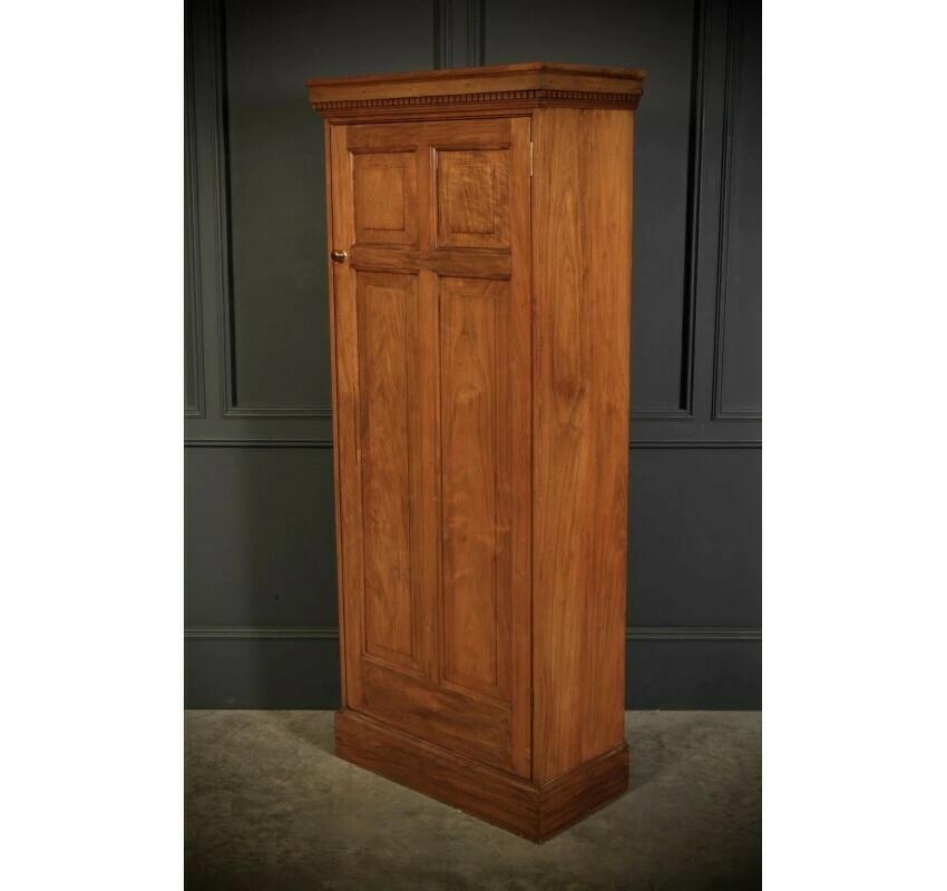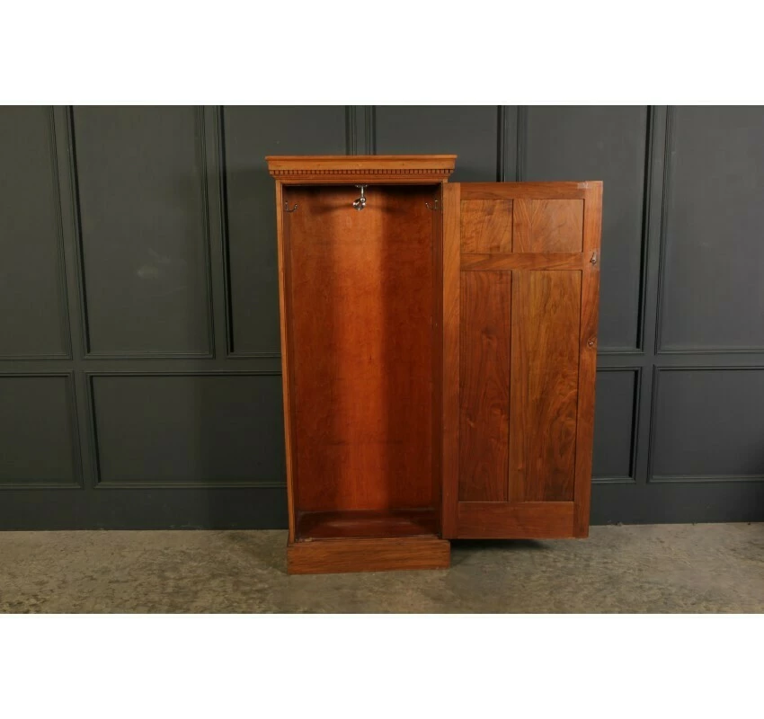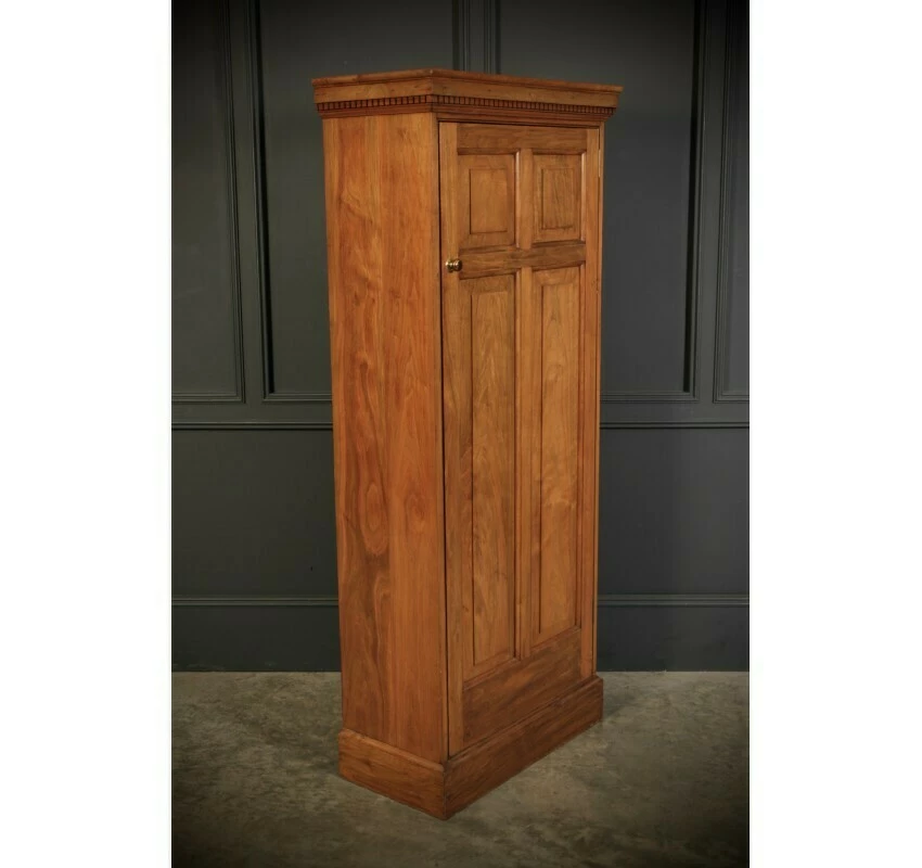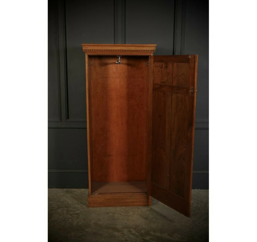 A solid walnut hall wardrobe/cupboard of slim proportions.