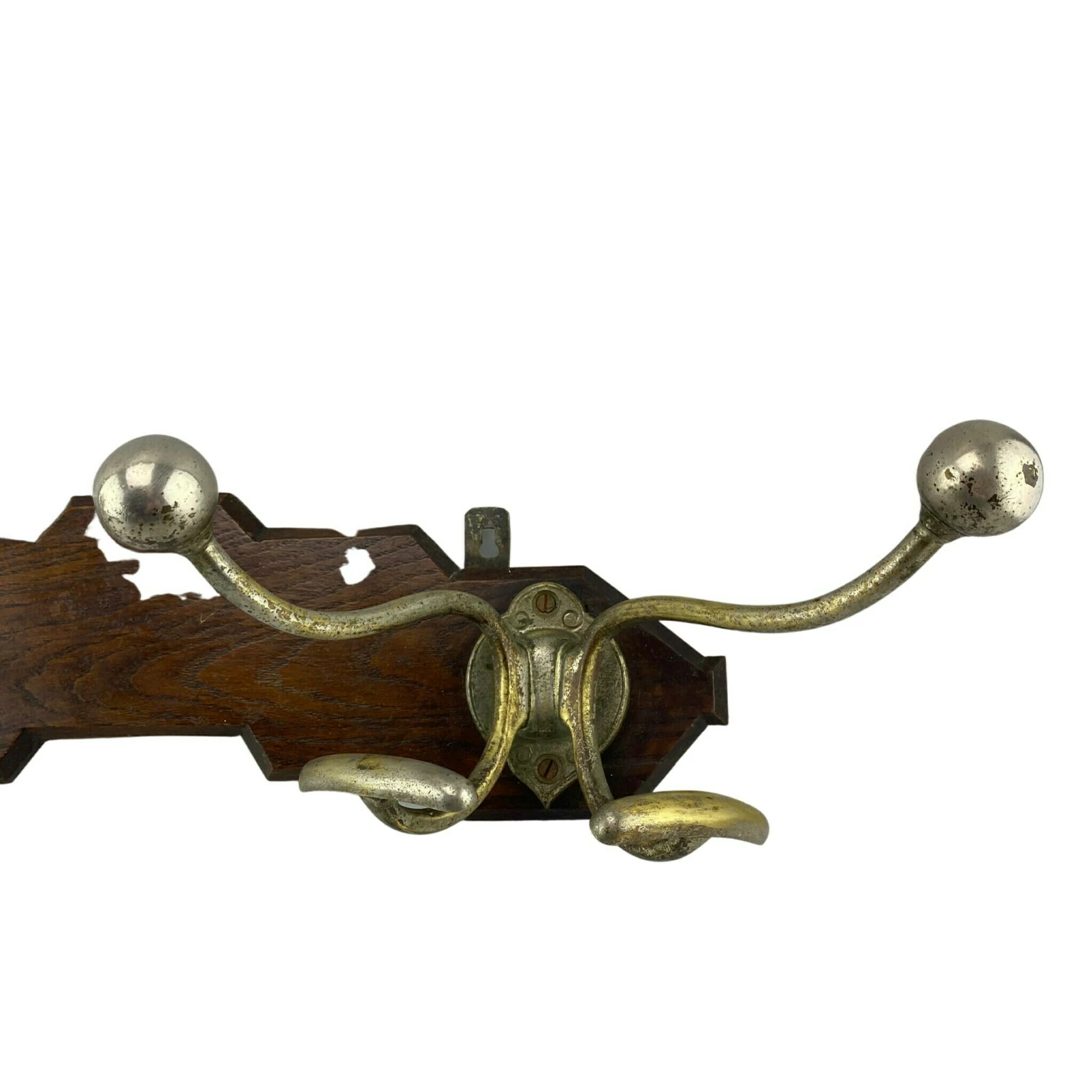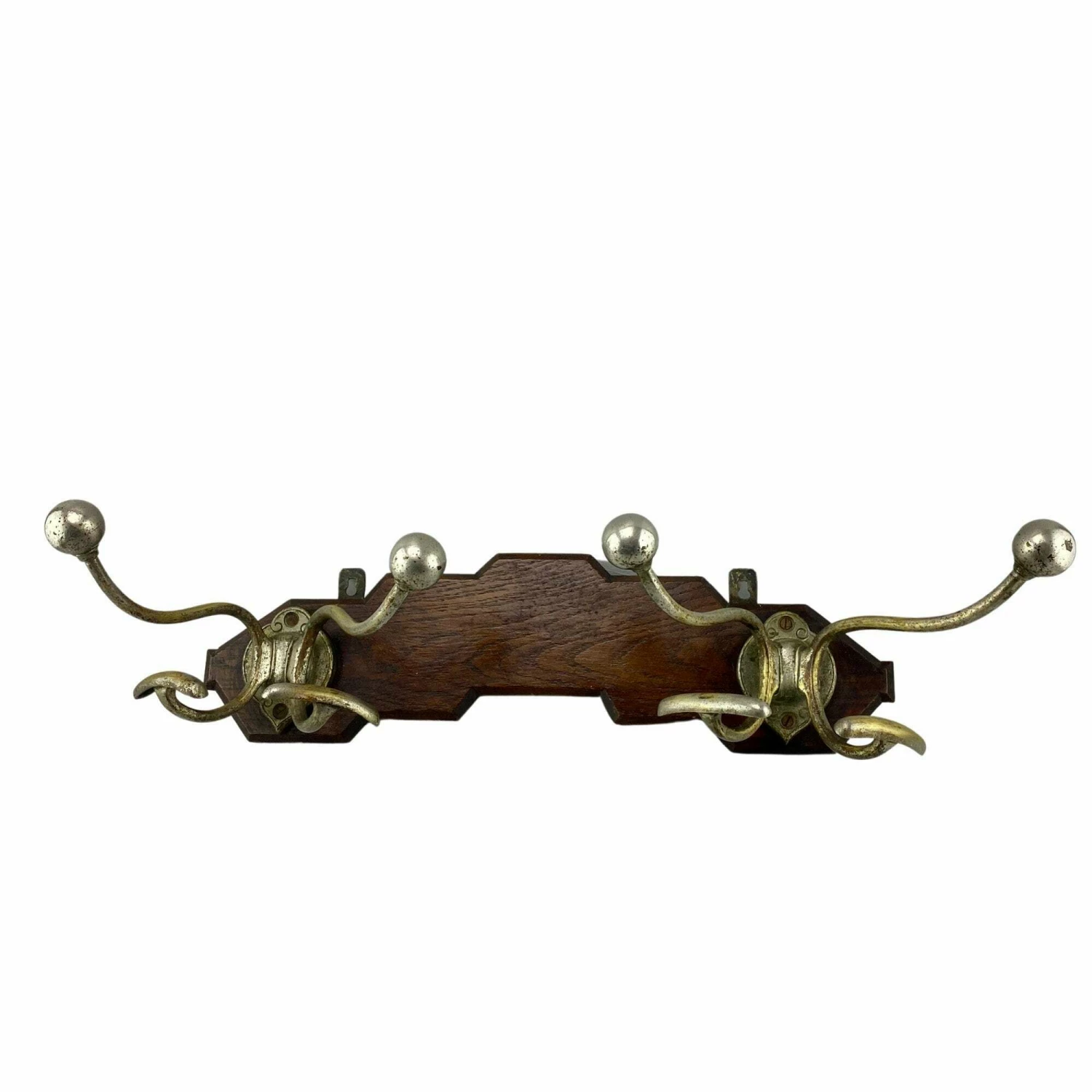 Victorian Double Double Coat and Hat Hooks on their Original Oak Board with 2 fixing bracket fixtures.
