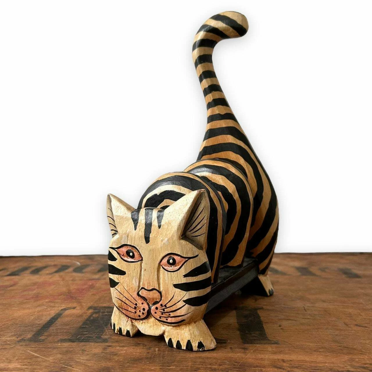 This vintage wooden cat letter holder is a charming and practical piece of decor that will add personality and functionality to any home or office. Made in the 1980s, this letter holder features a playful cat design that is sure to delight cat lovers of all ages.