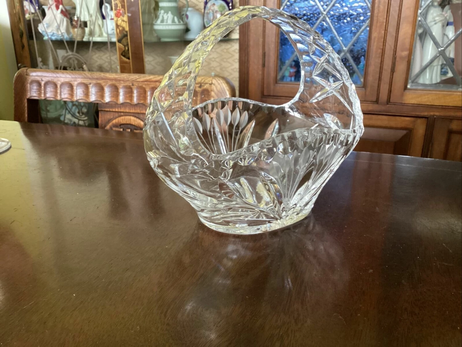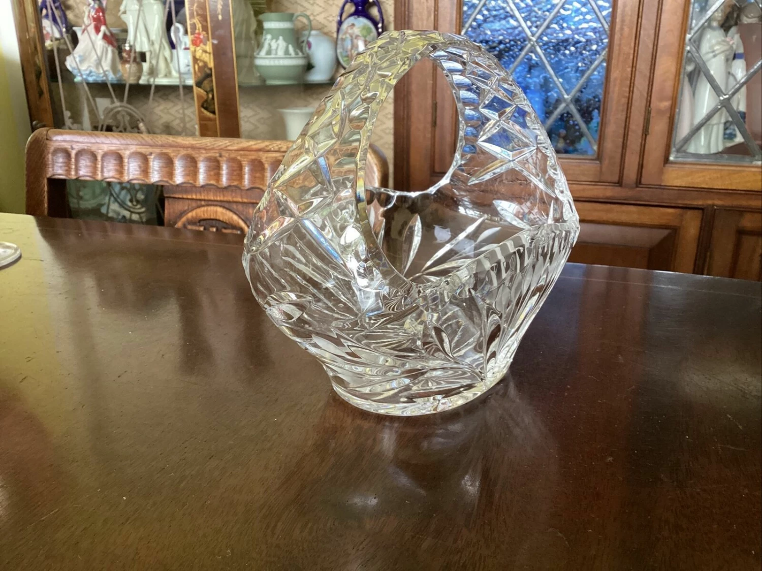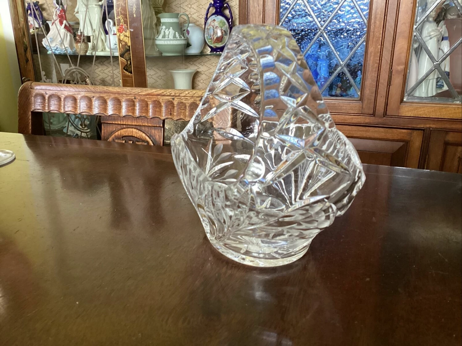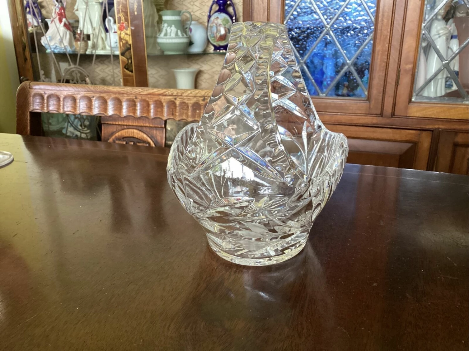 beautiful Edinburgh? crystal cut glass posy basket. has small chip to inside edge of rim.