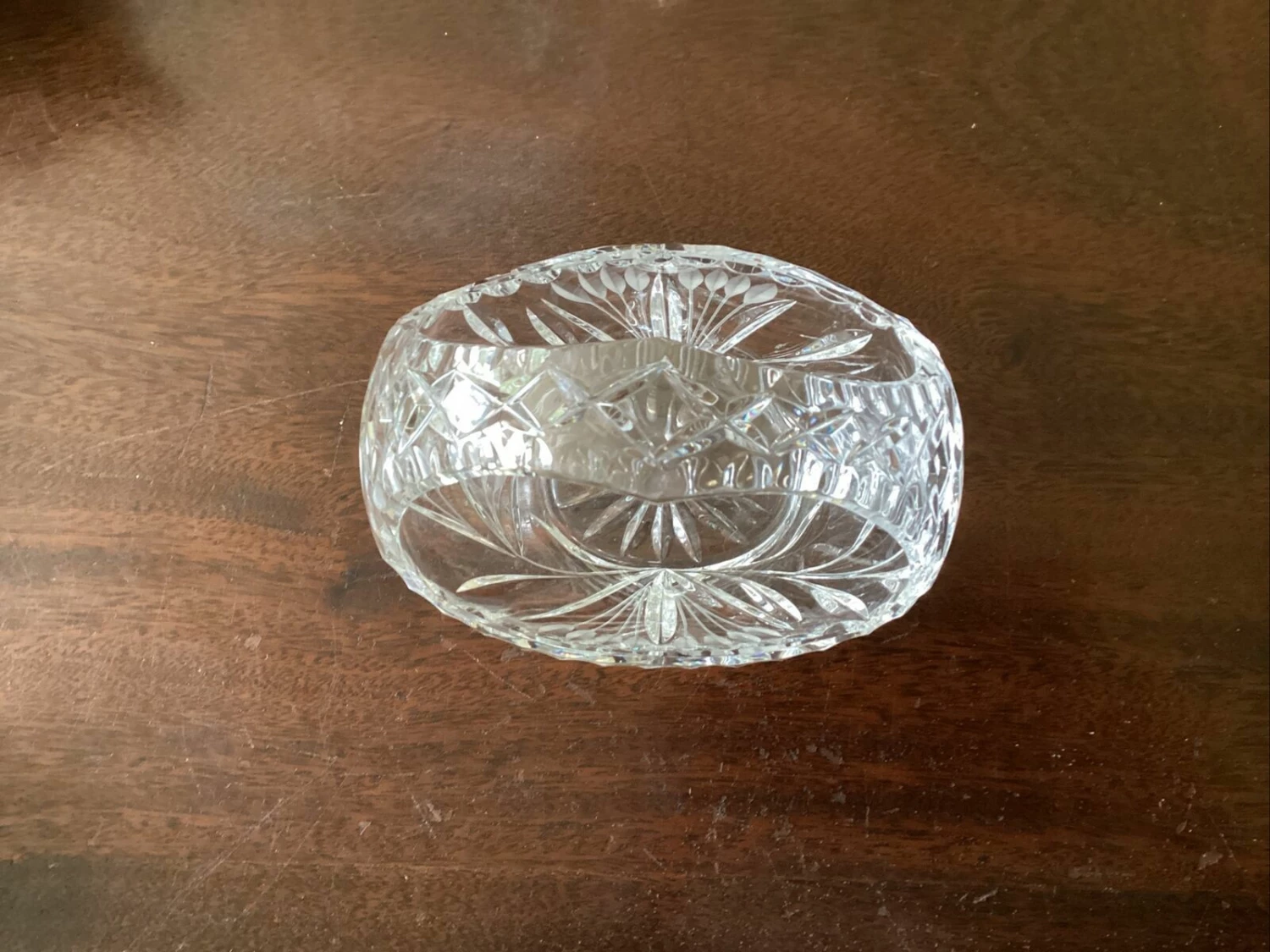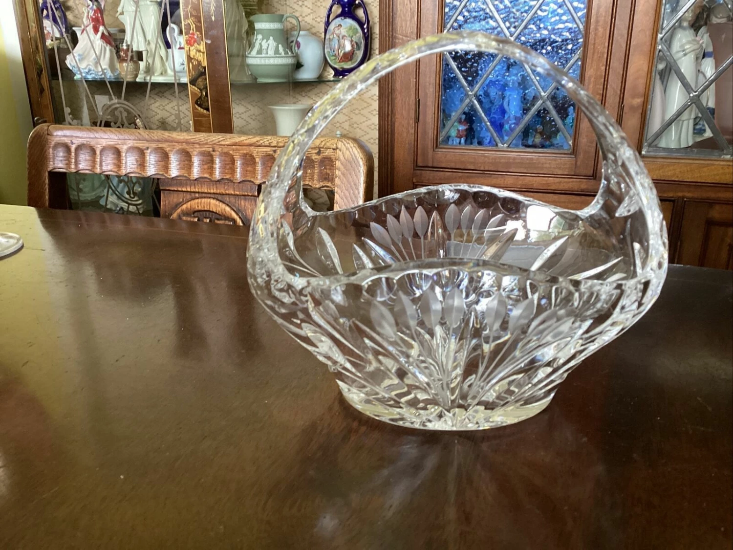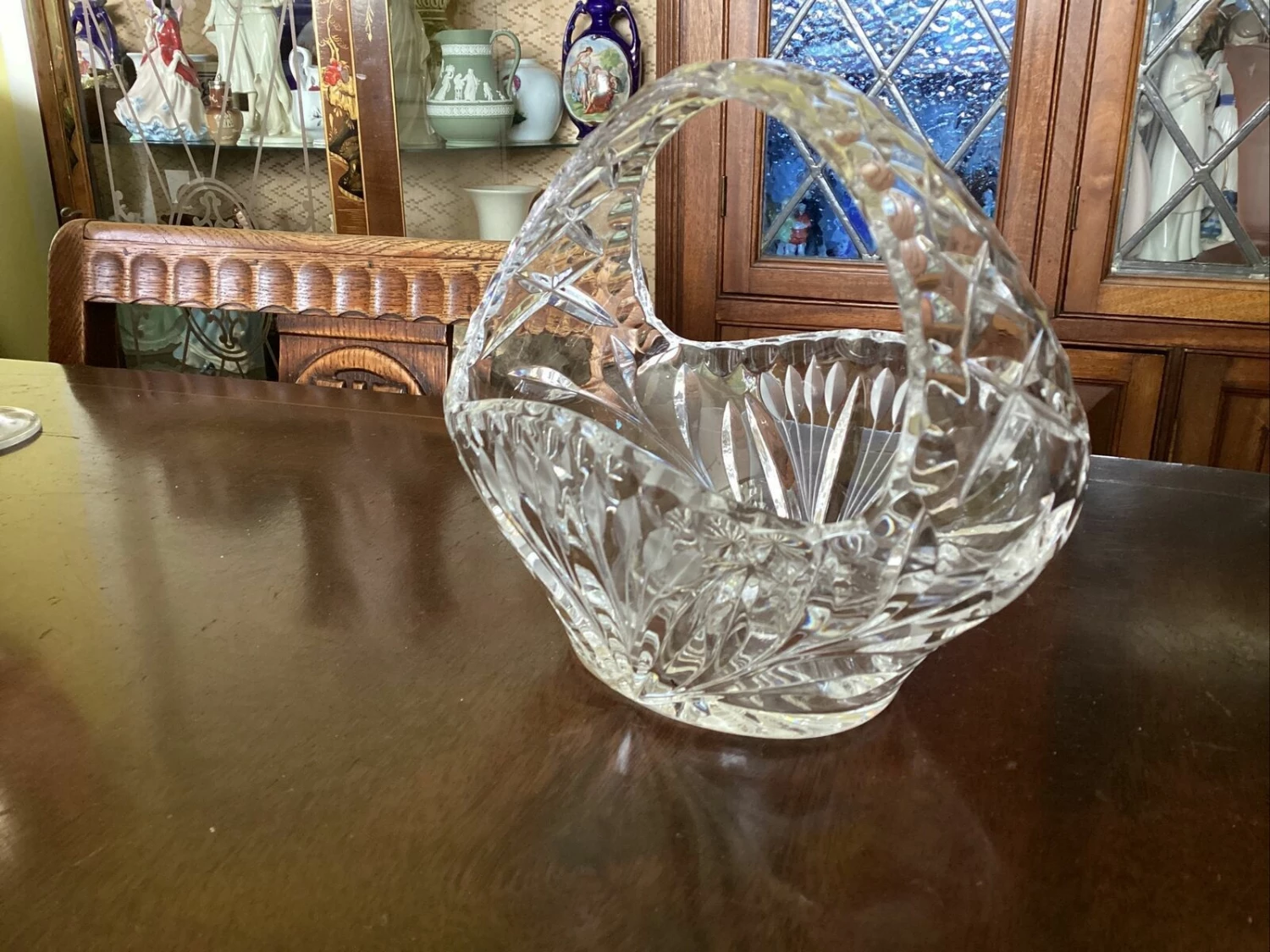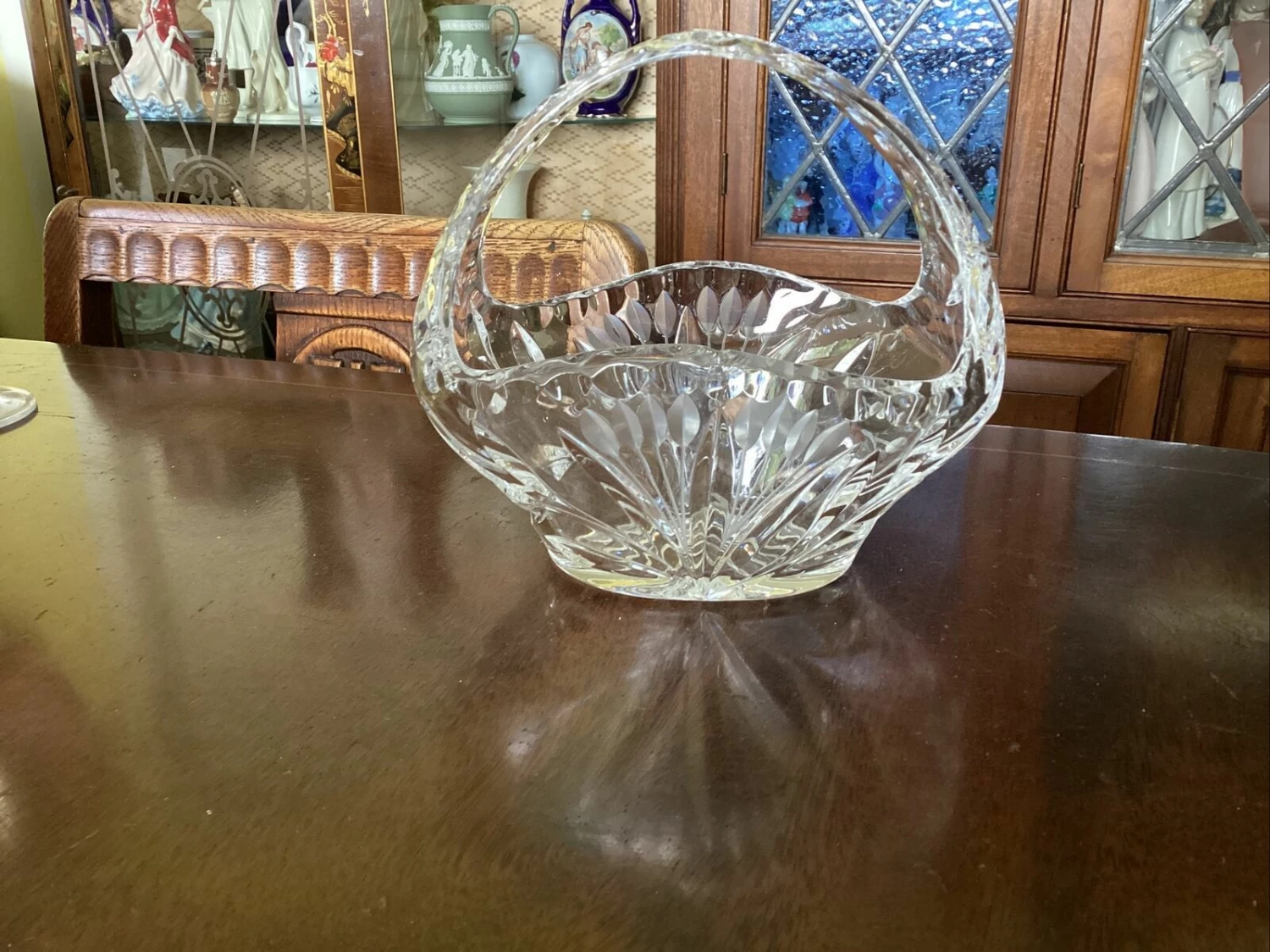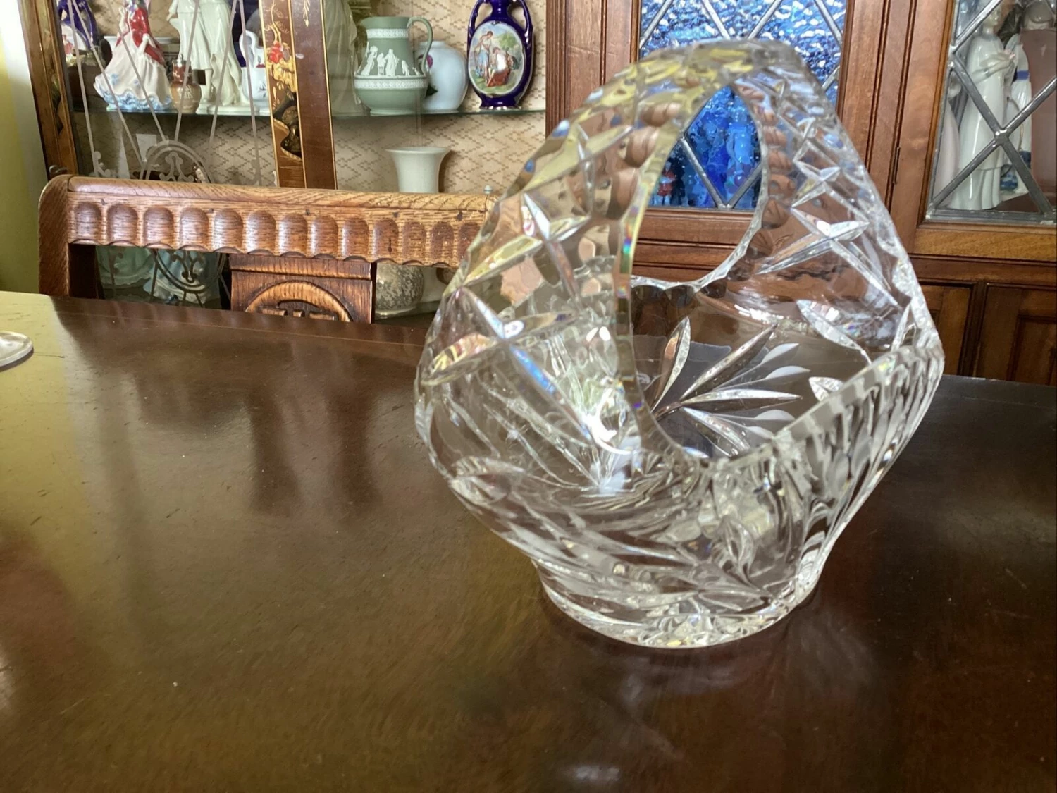 beautiful Edinburgh? crystal cut glass posy basket. has small chip to inside edge of rim.