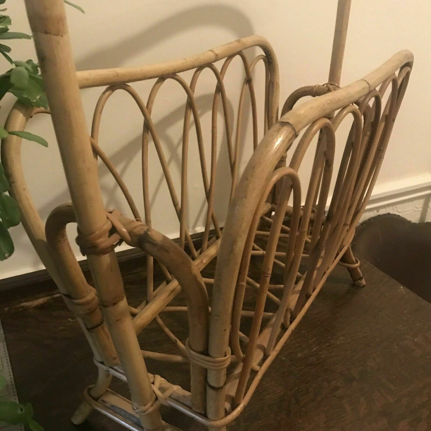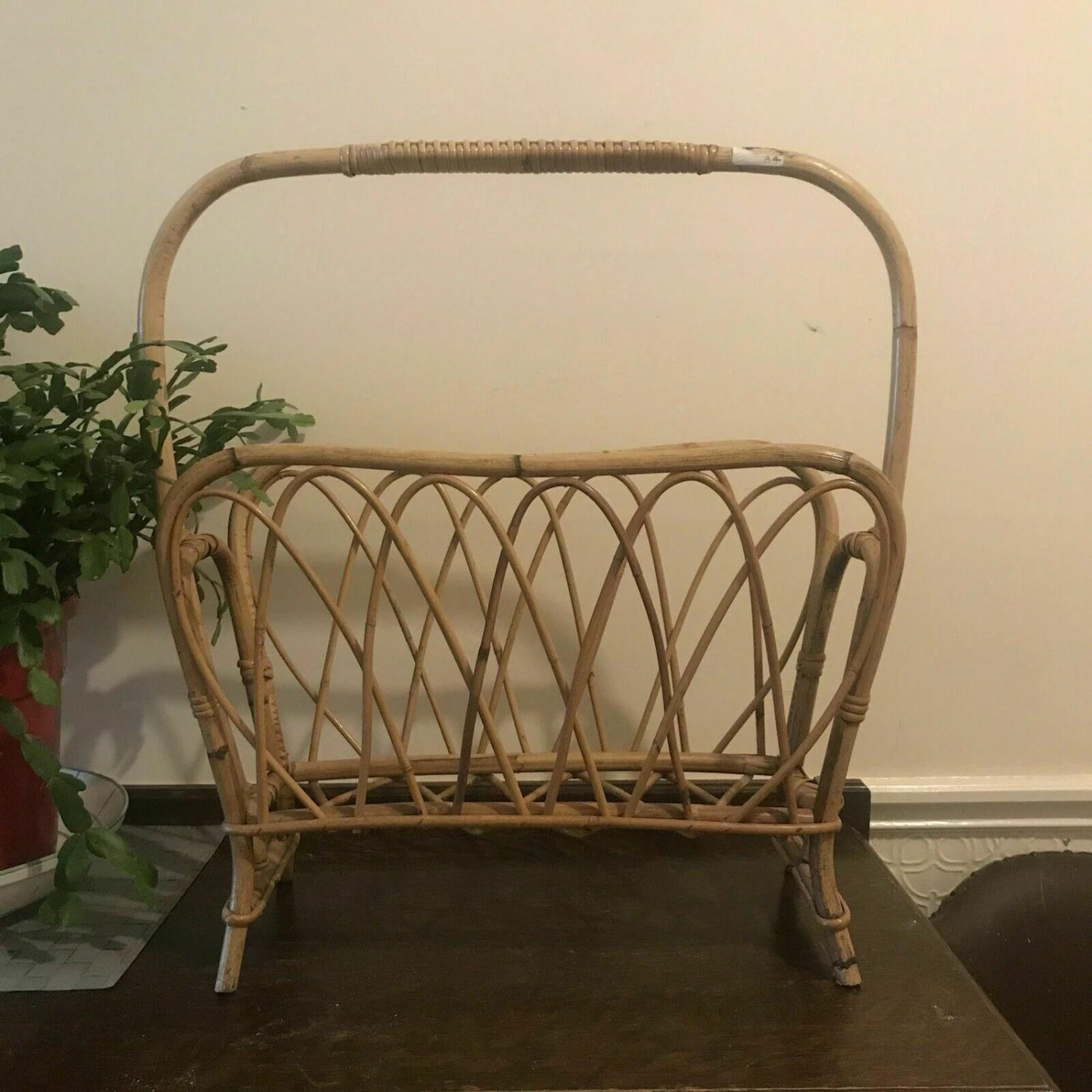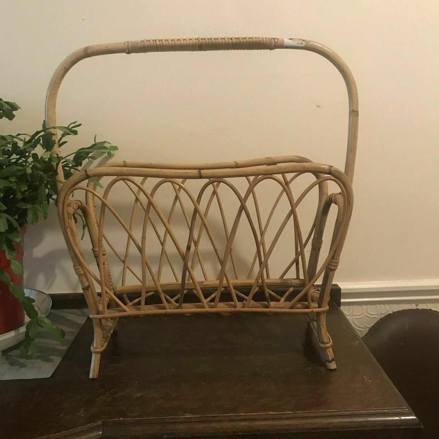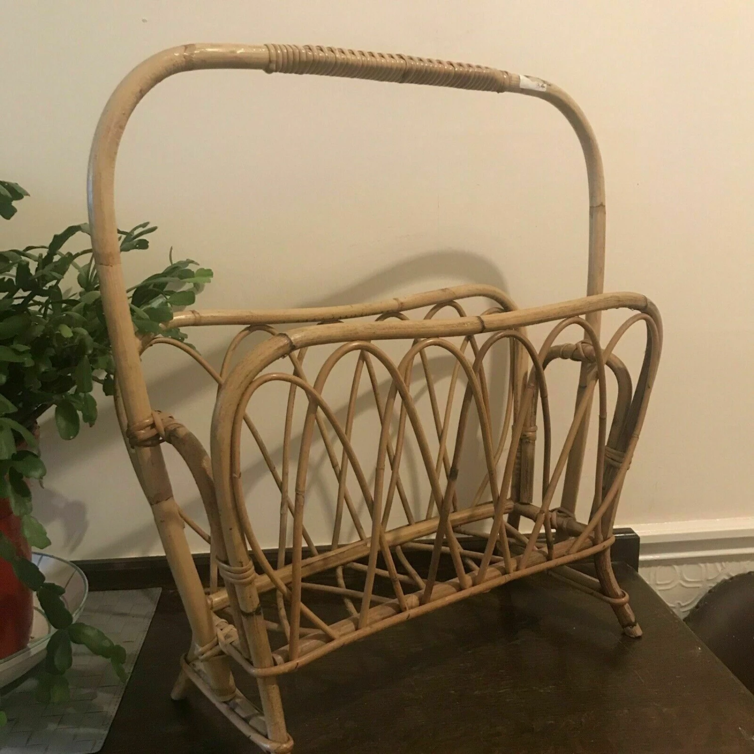 Mid Century Mahogany With Inlay Veneer Magazine & Newspaper Holder / Rack Storage Handmade