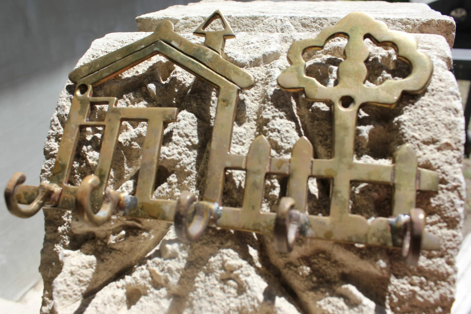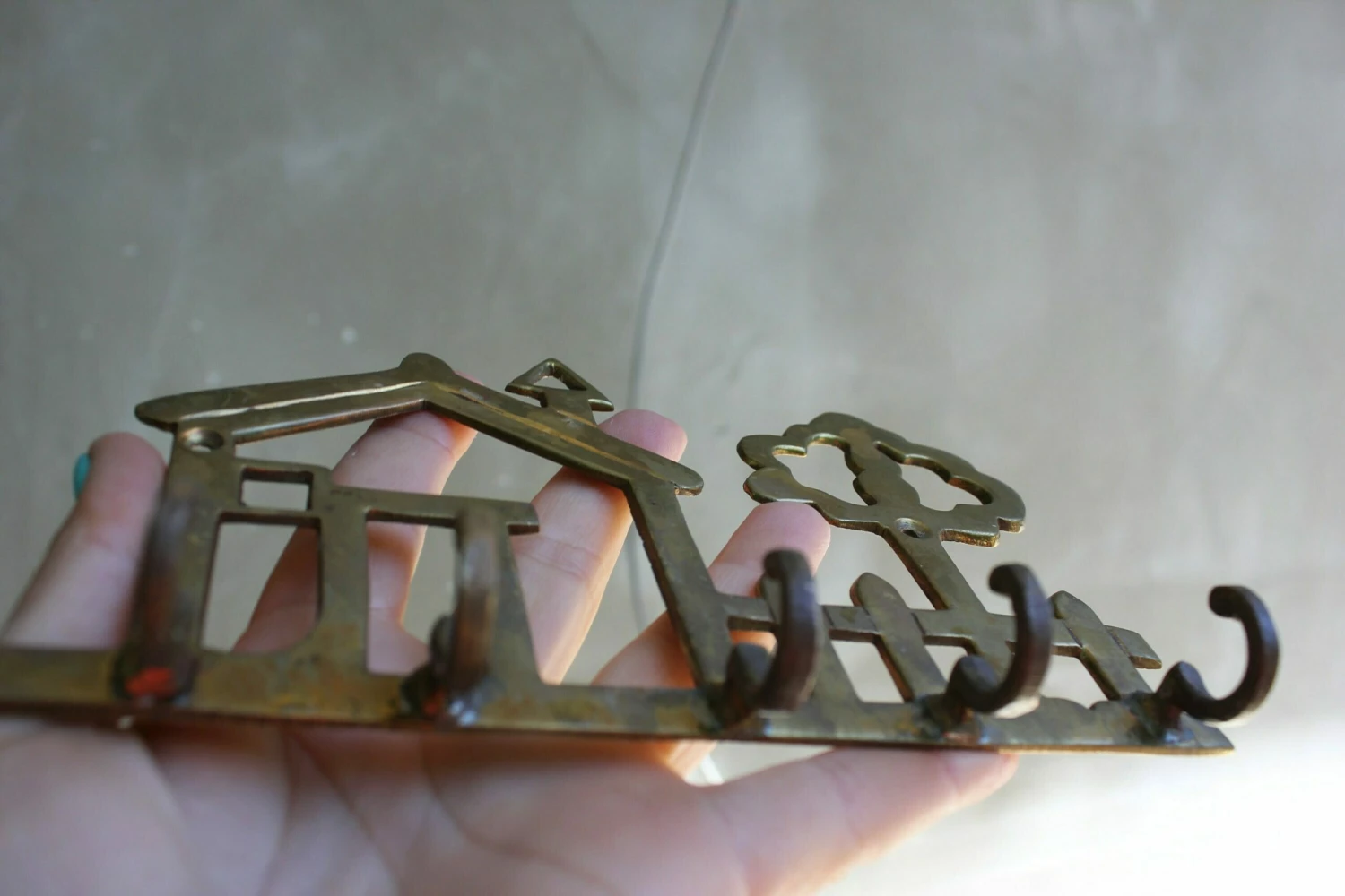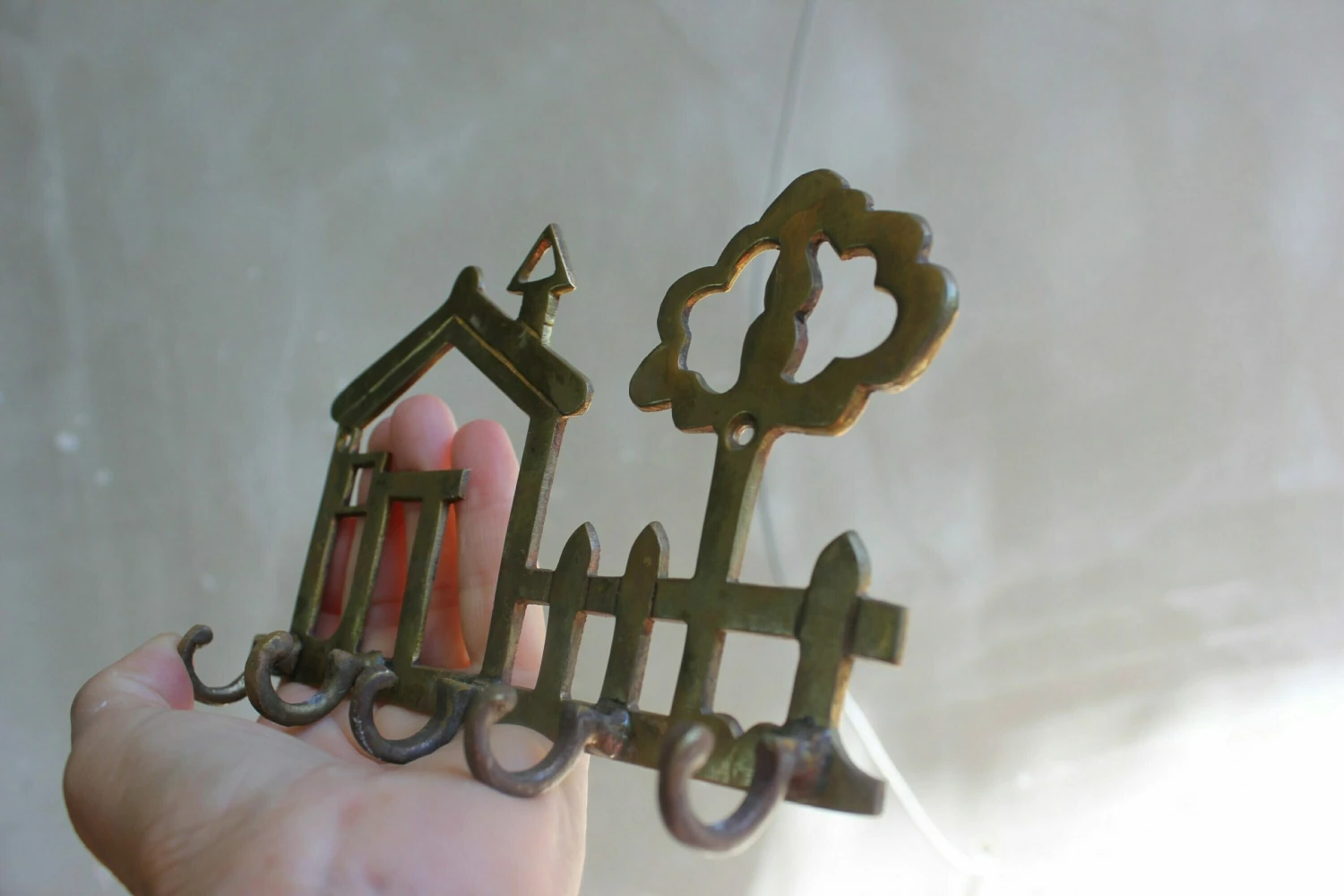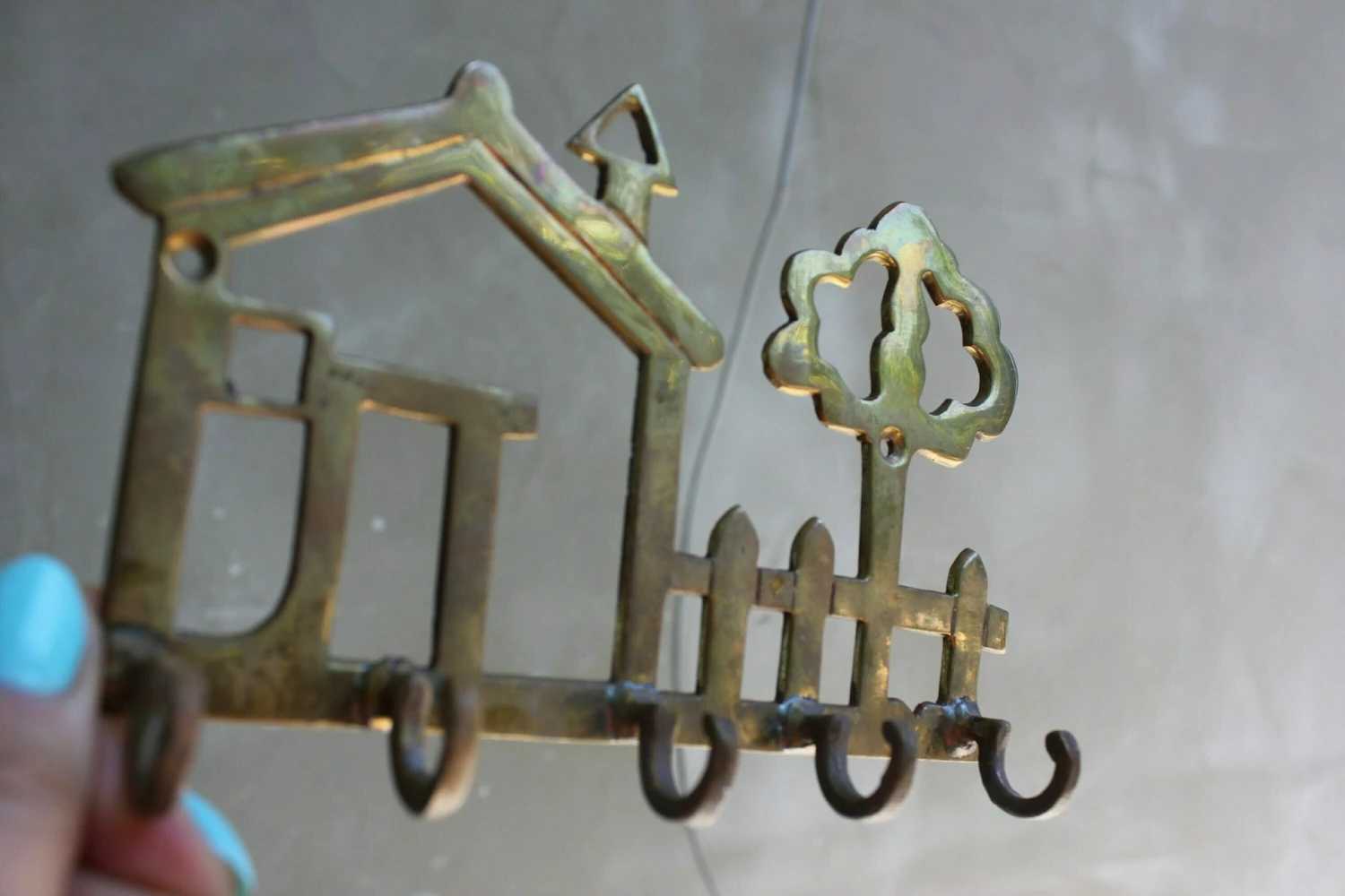 Vintage Brass Key hanger Entryway wall hanger House and Tree jewelry hanger