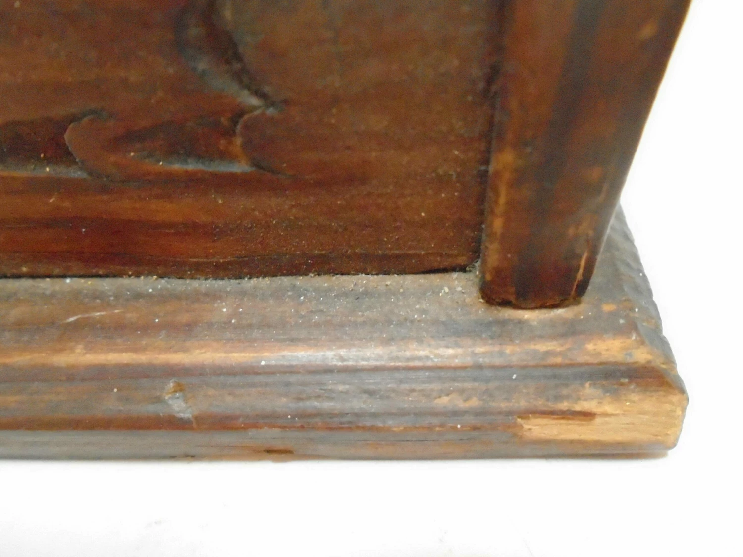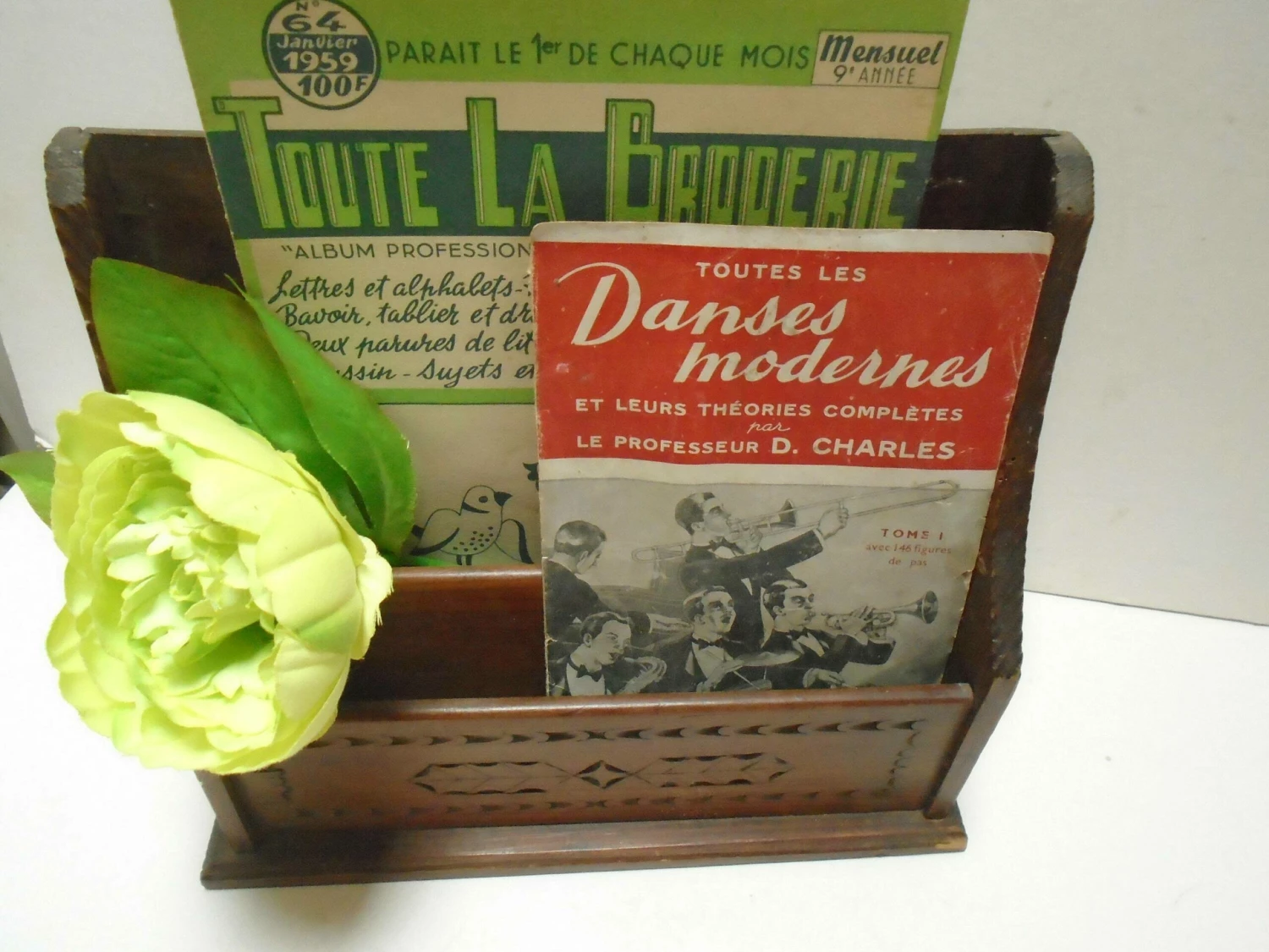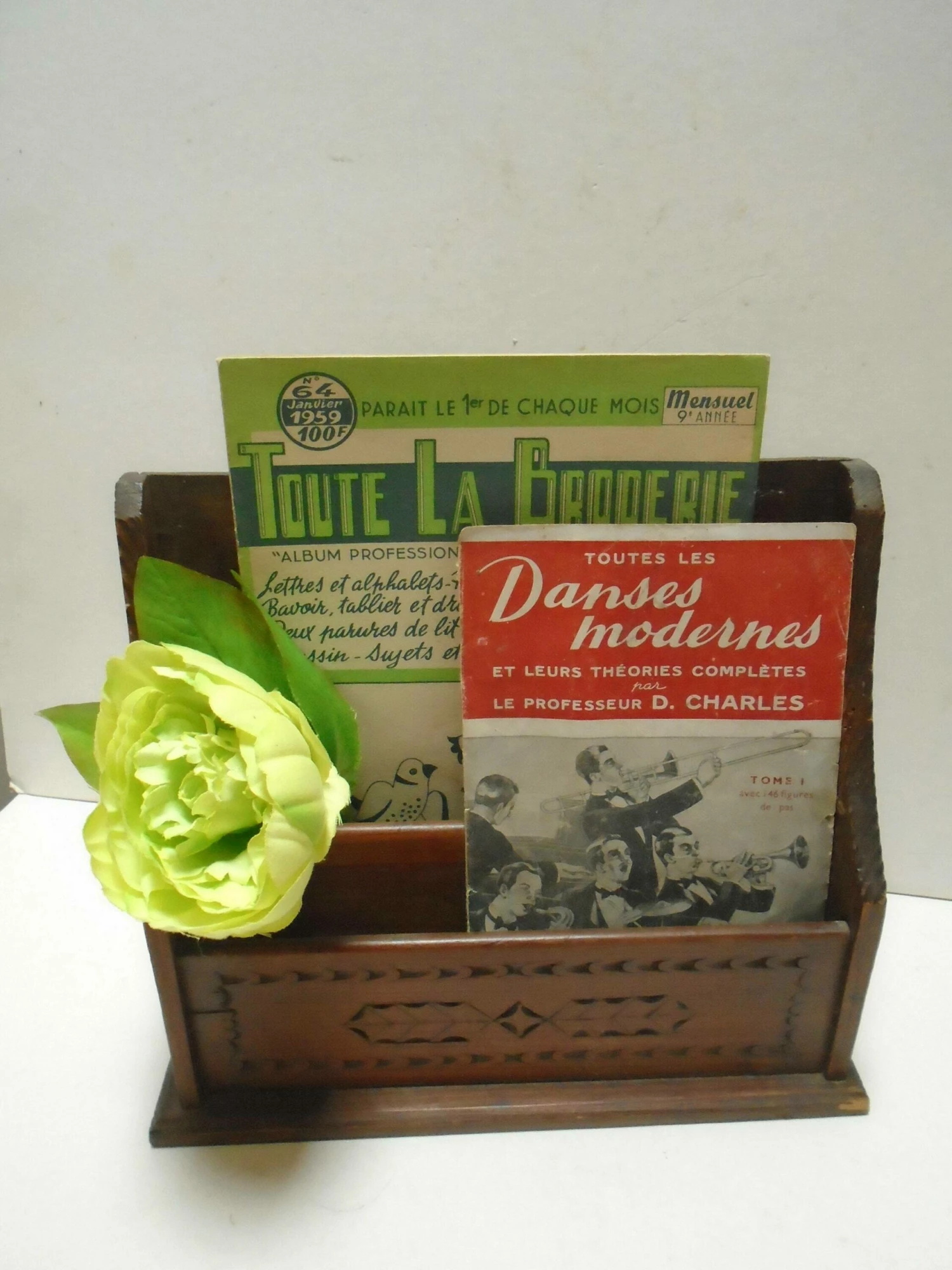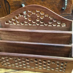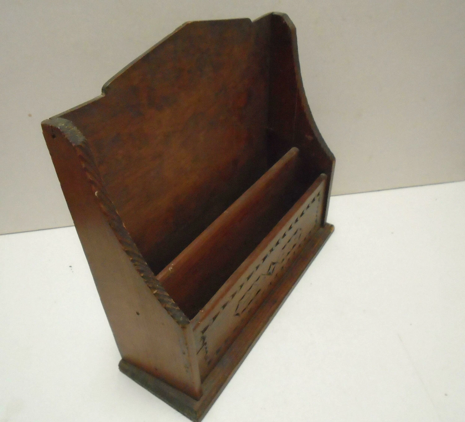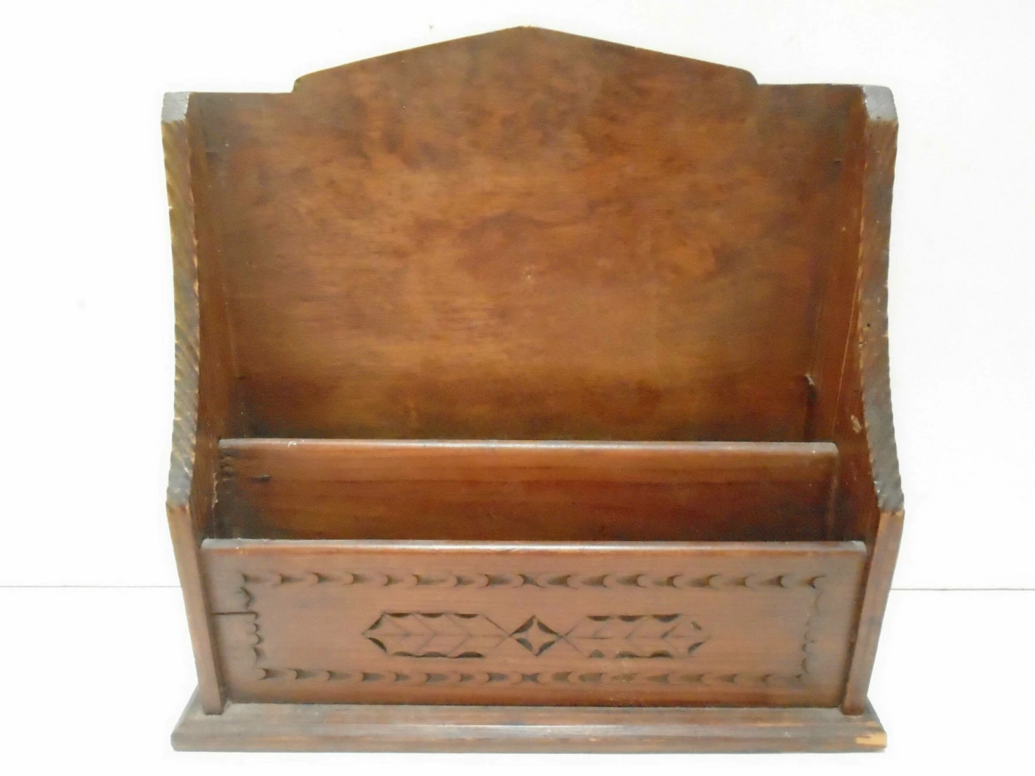 A vintage French letter holder / mini rack / post or recipe holder. Very rustically made so perfect for the farmhouse or country kitchen. Store your favorite recipes here! Lovely hand-carved item from Brittany, Northern France. Good solid piece. Some old in active woodworm holes noted. A lovely solidly handmade and rustic piece of French office or kitchenware would look great alongside other rustic wooden items. Could be painted to match your home decor.