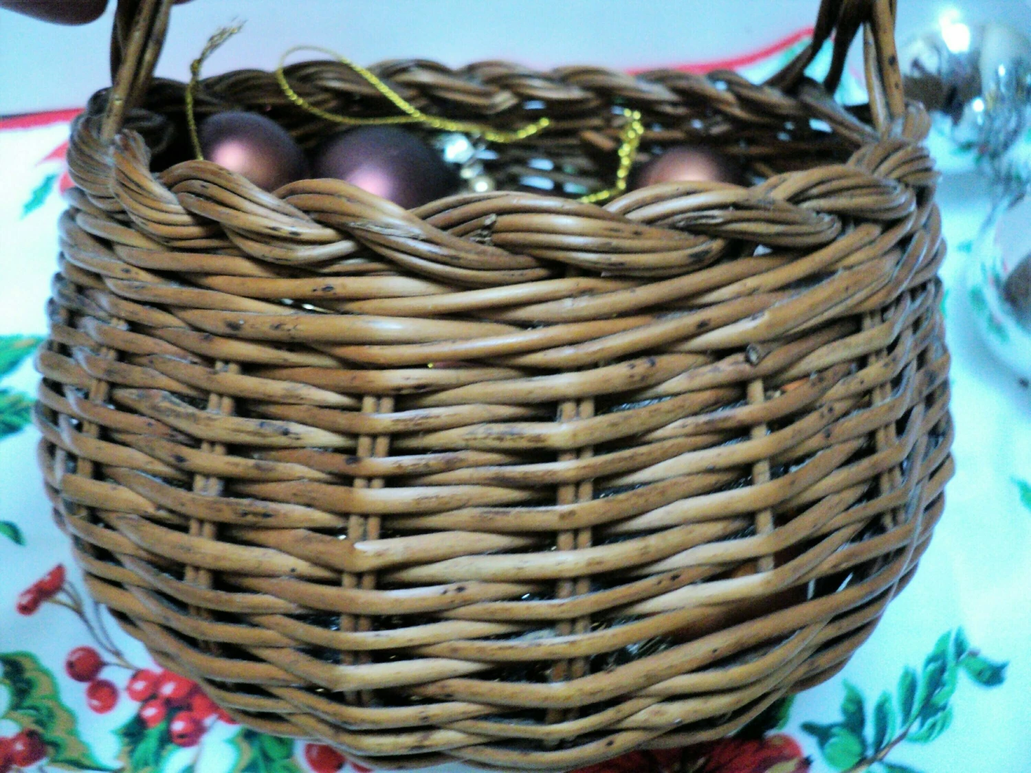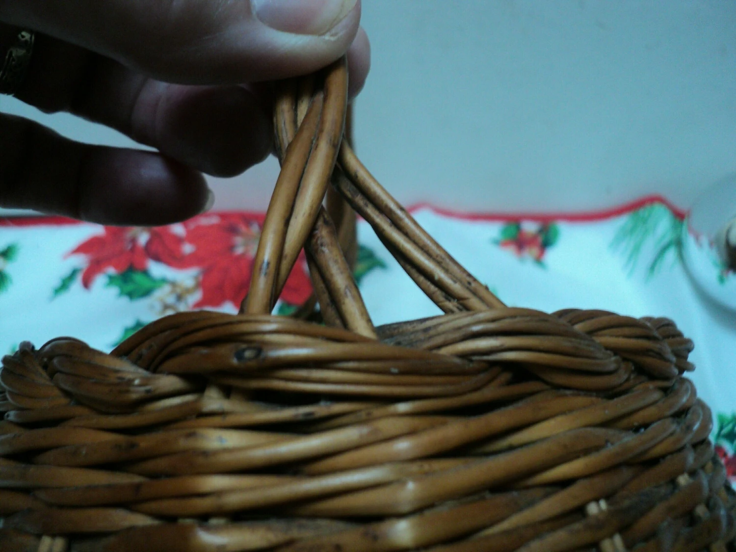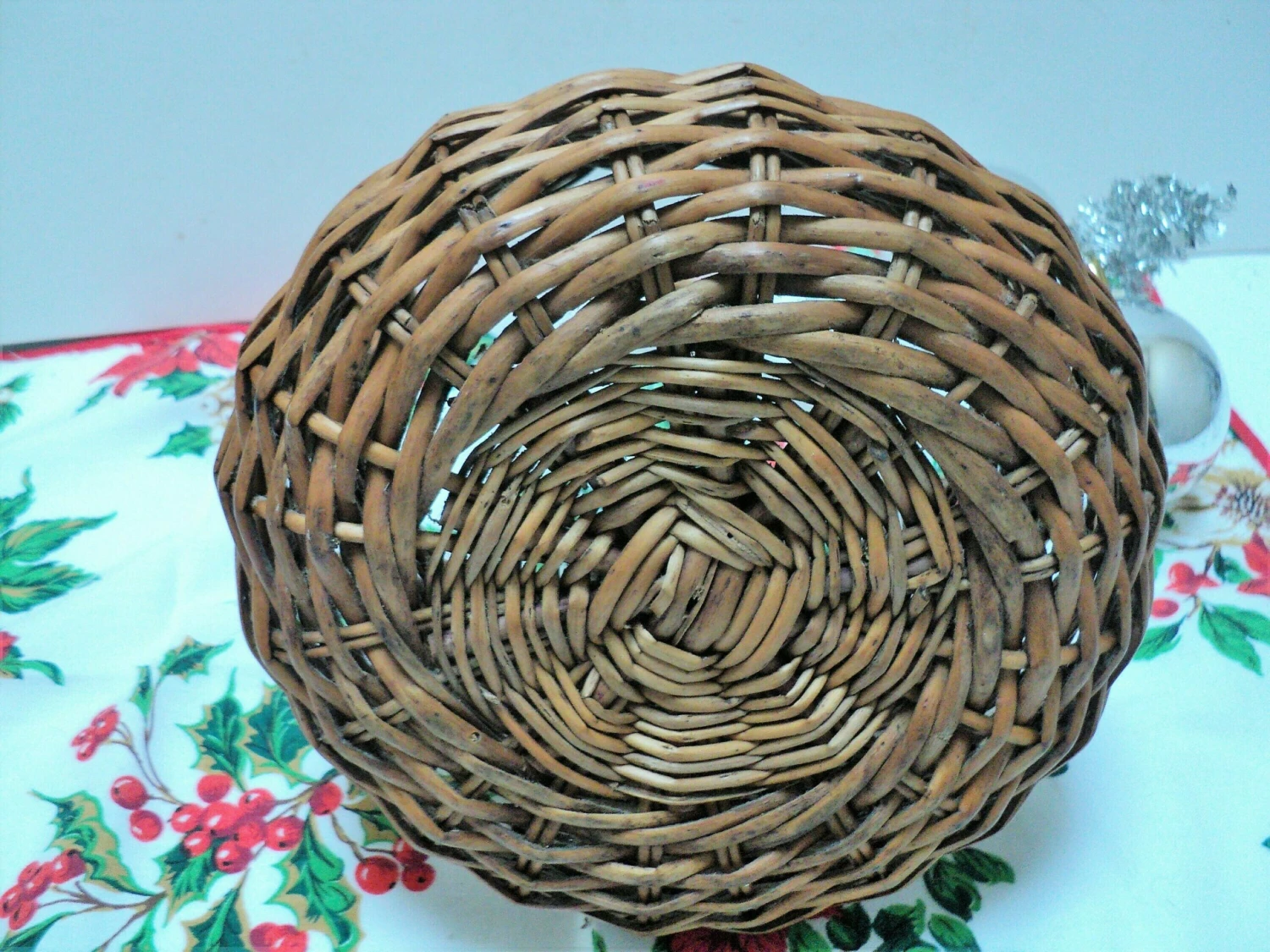 Lovely vintage condition. A small piece of downward and horizontal wicker missing but this does not affect the integrity of the basket.