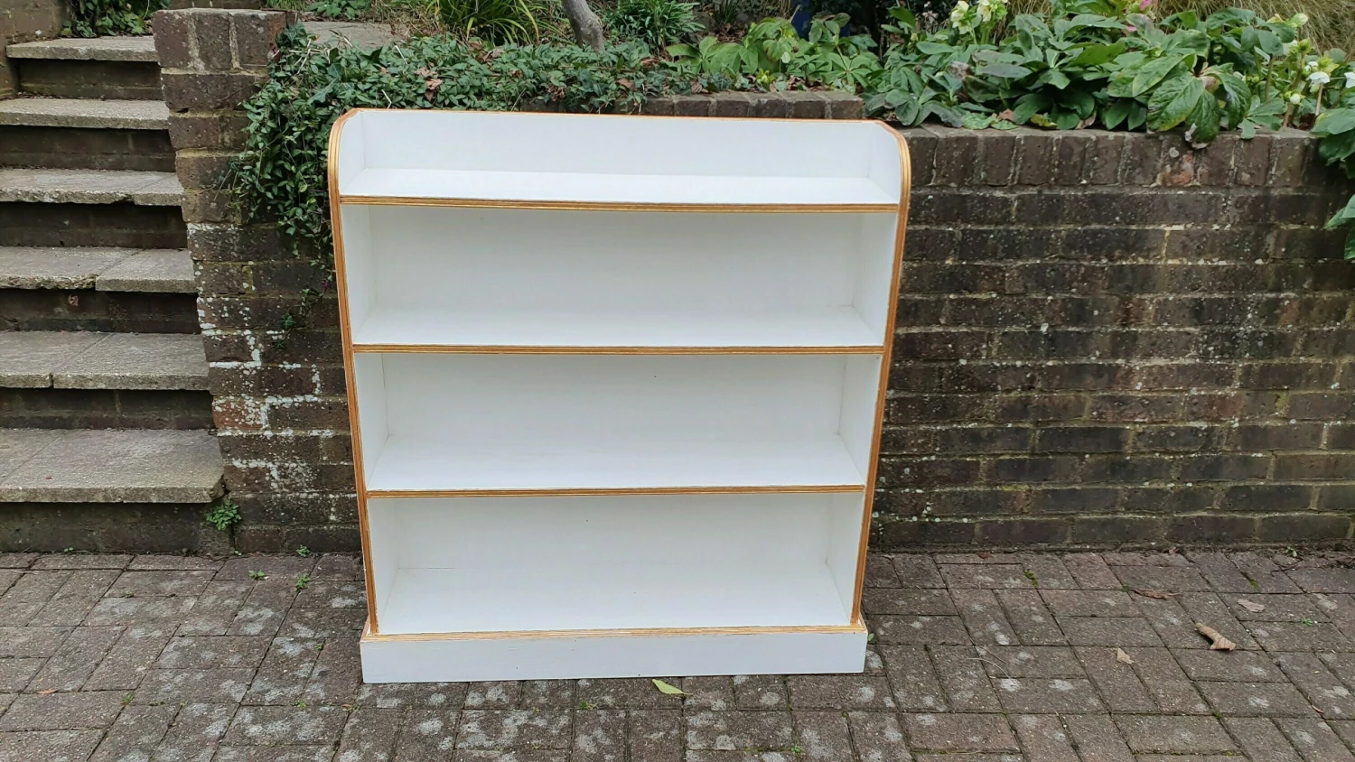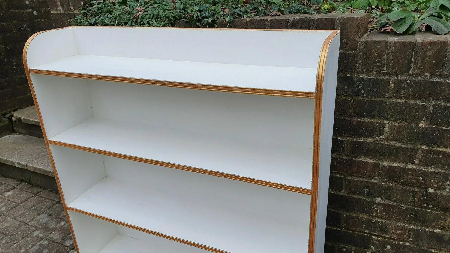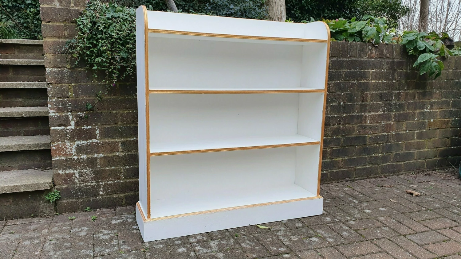 Vintage Solid Oak Bespoke Painted Bookcase Bookshelves in Farrow and Ball Gold Highlights. Shelves.