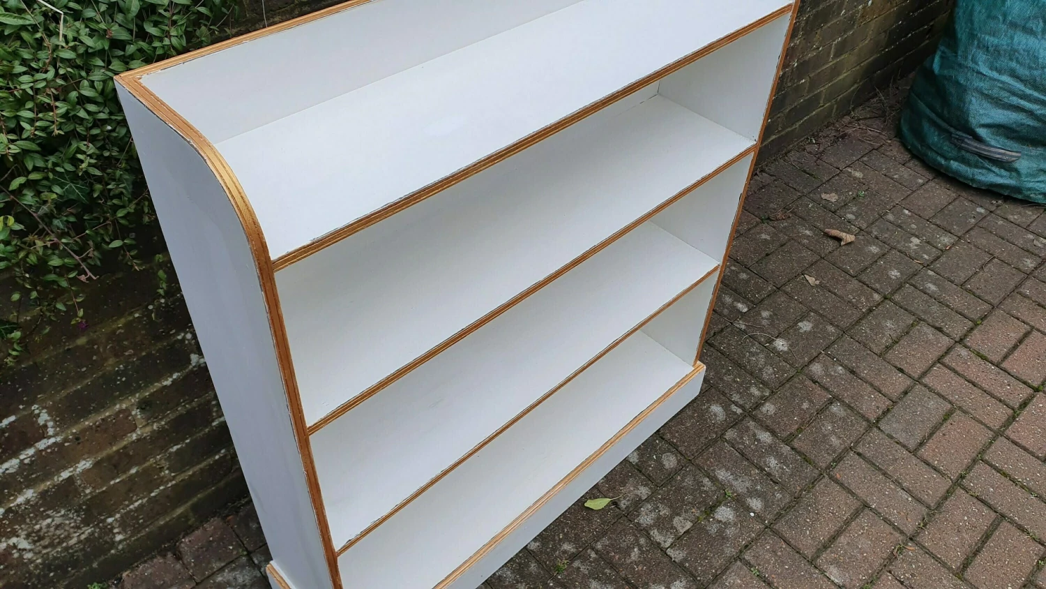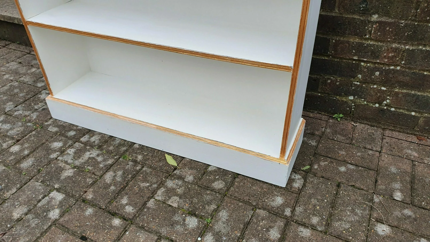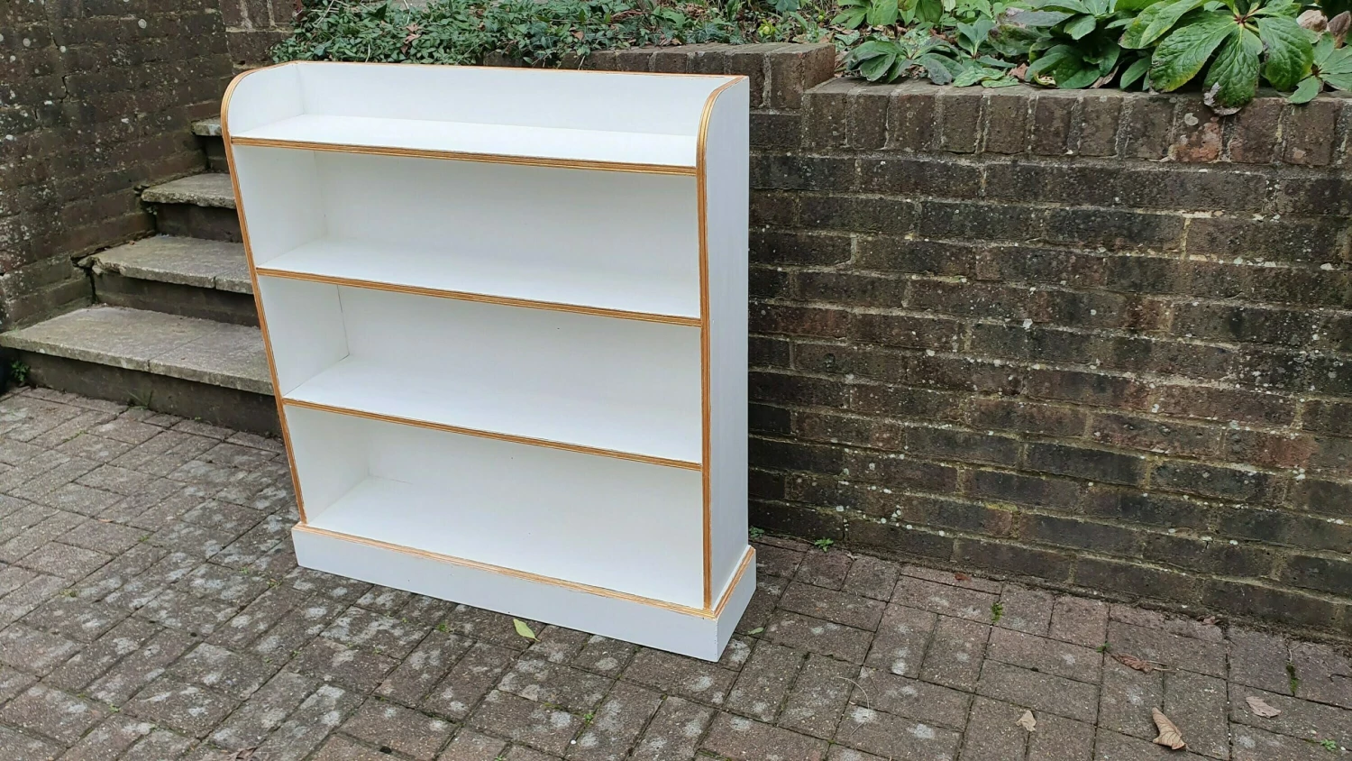Vintage Solid Oak Bespoke Painted Bookcase Bookshelves in Farrow and Ball Gold Highlights. Shelves.