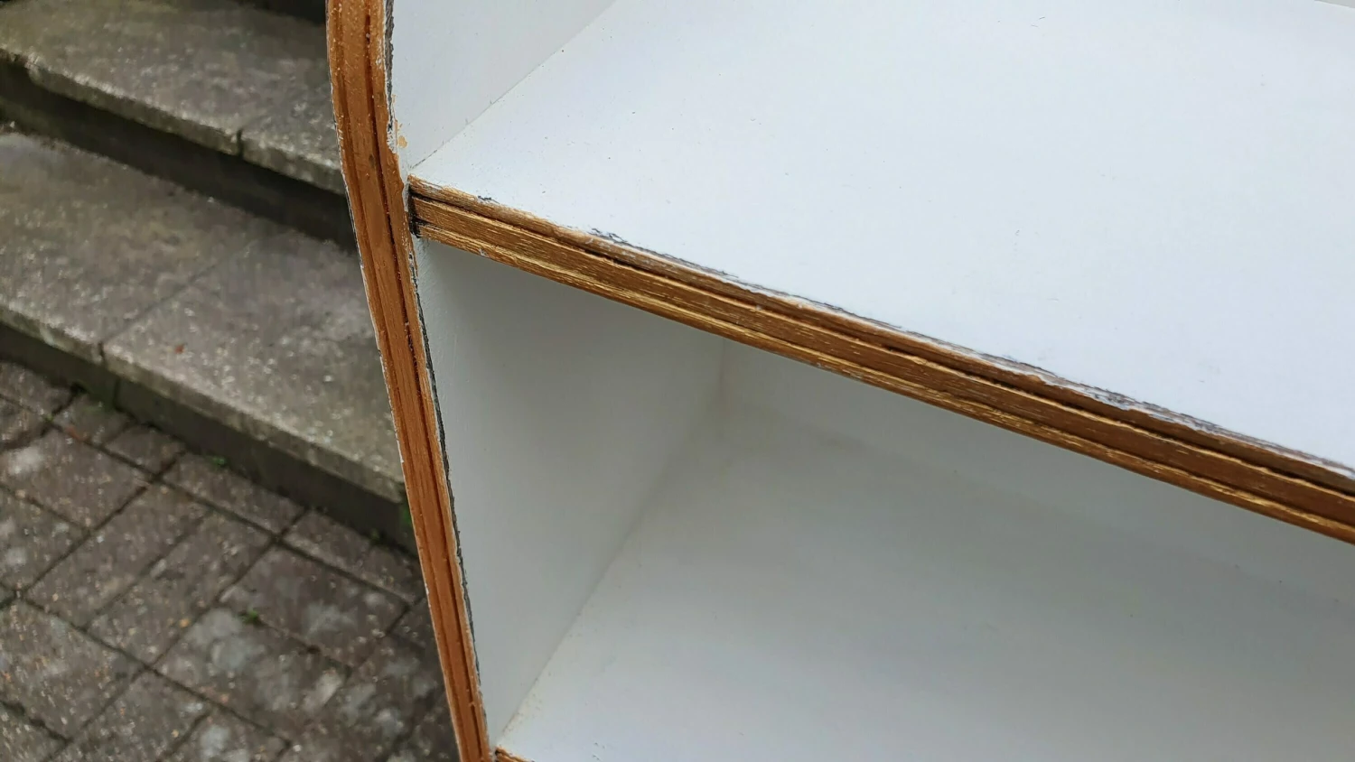The shelves are from the 1920’s. They are made of solid oak apart from the ply thick backing. They are very well made and sturdy.