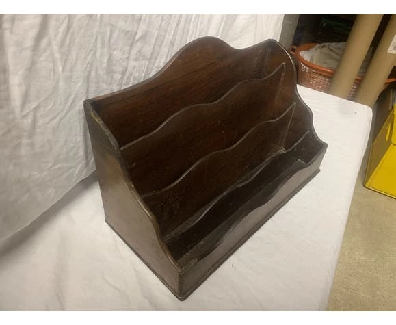Walnut letter holder. 3 compartments. Some imperfections due to time.