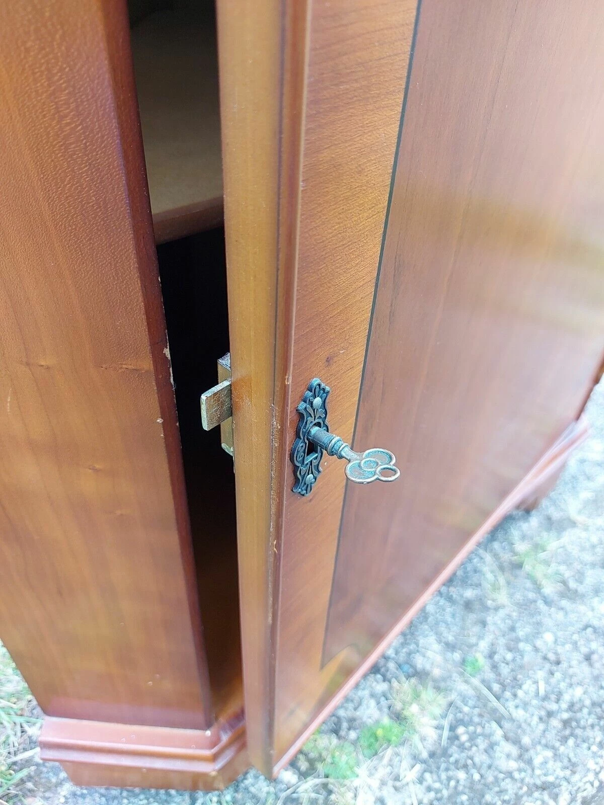 This unit has one key that works for both locks., although where the base lock locks into has been removed as you can see in the pictures, as has the wooden stopper that stops the door going in too far, luckily the door does just sit where it should be anyway, I’m sure you could replace the clasp if so wished so that the bottom door can lock again as the lock does work well on both sections with just one key.