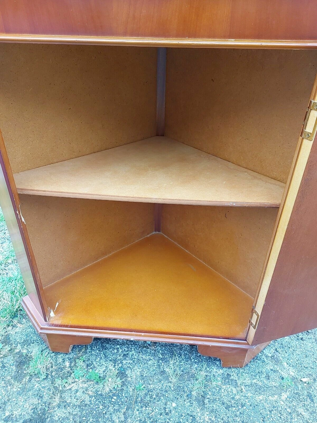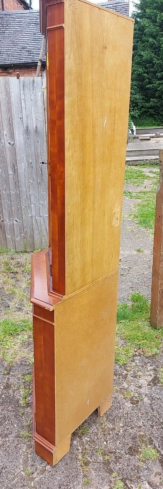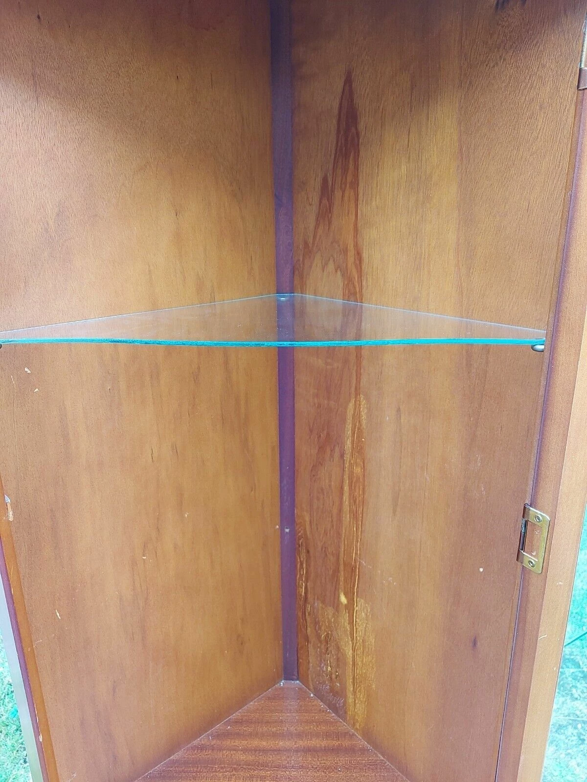 This is a Yew wood veneer Floor Standing Corner Display Cabinet.